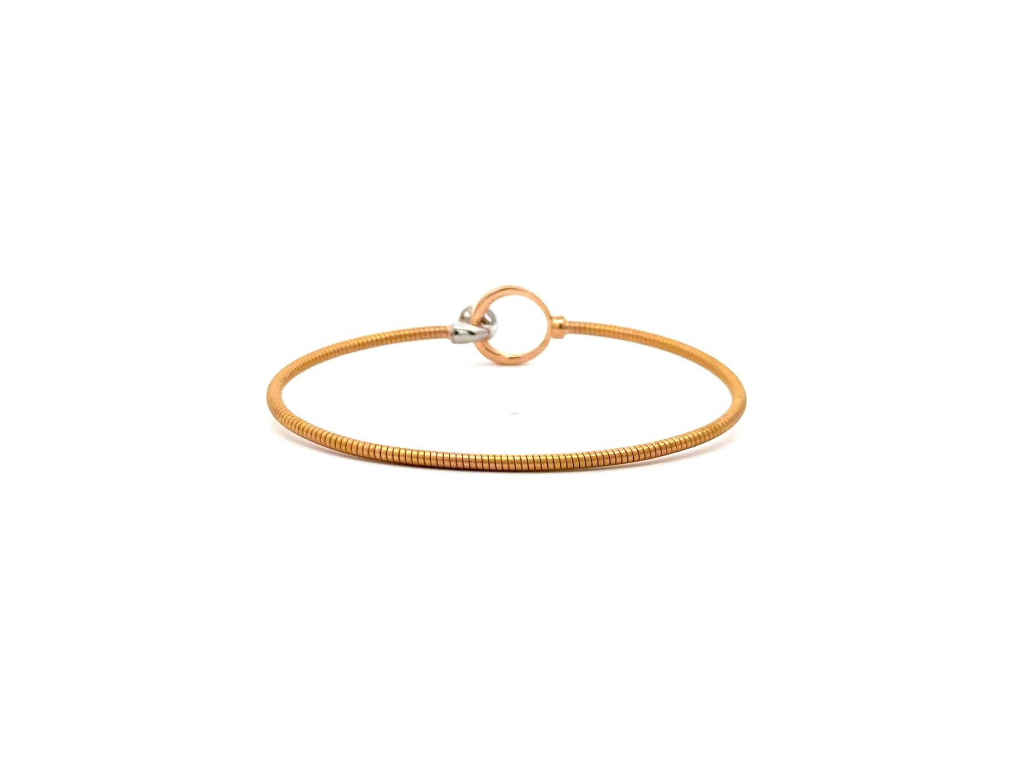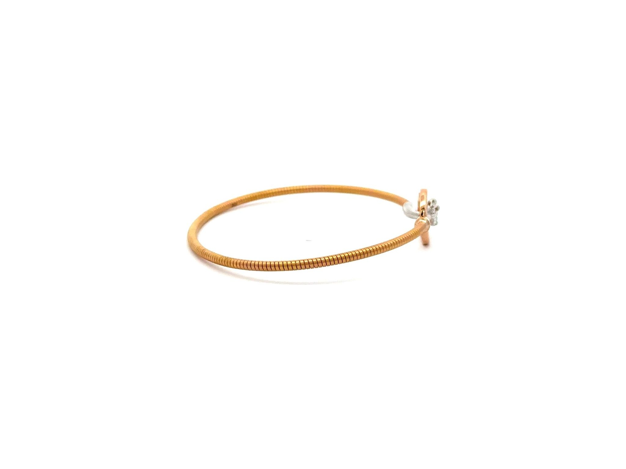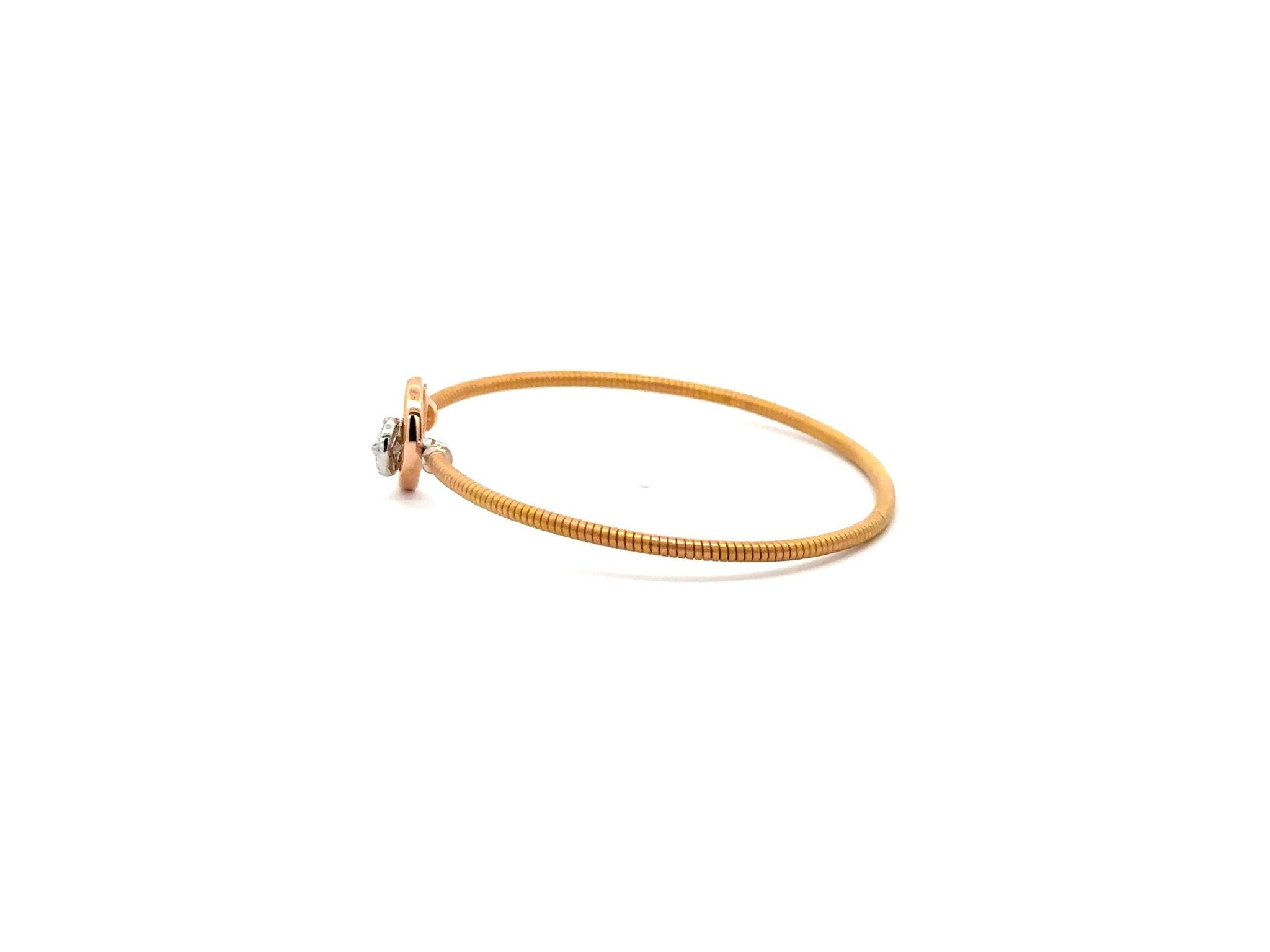 18K Tri-Color Gold Bangle Bracelet with a Central Natural Princess Cut Diamond Surrounded by Marquise Diamonds