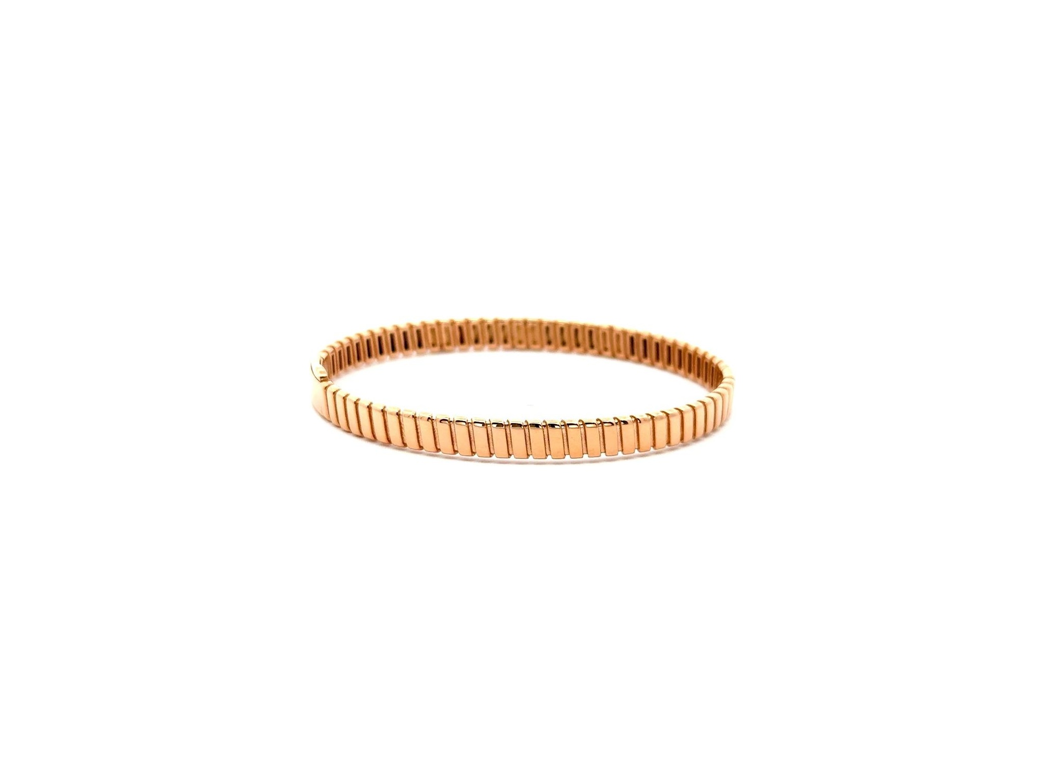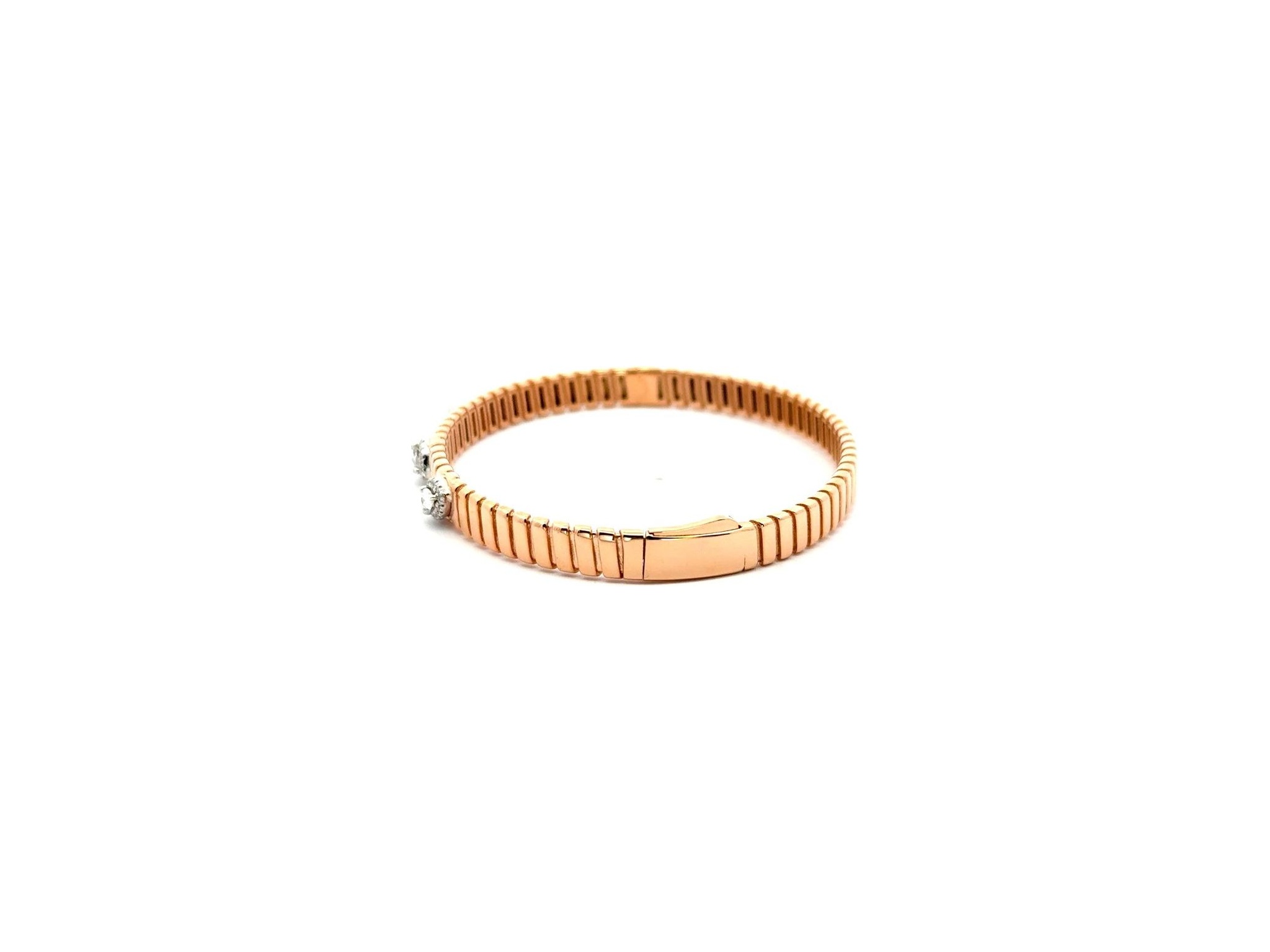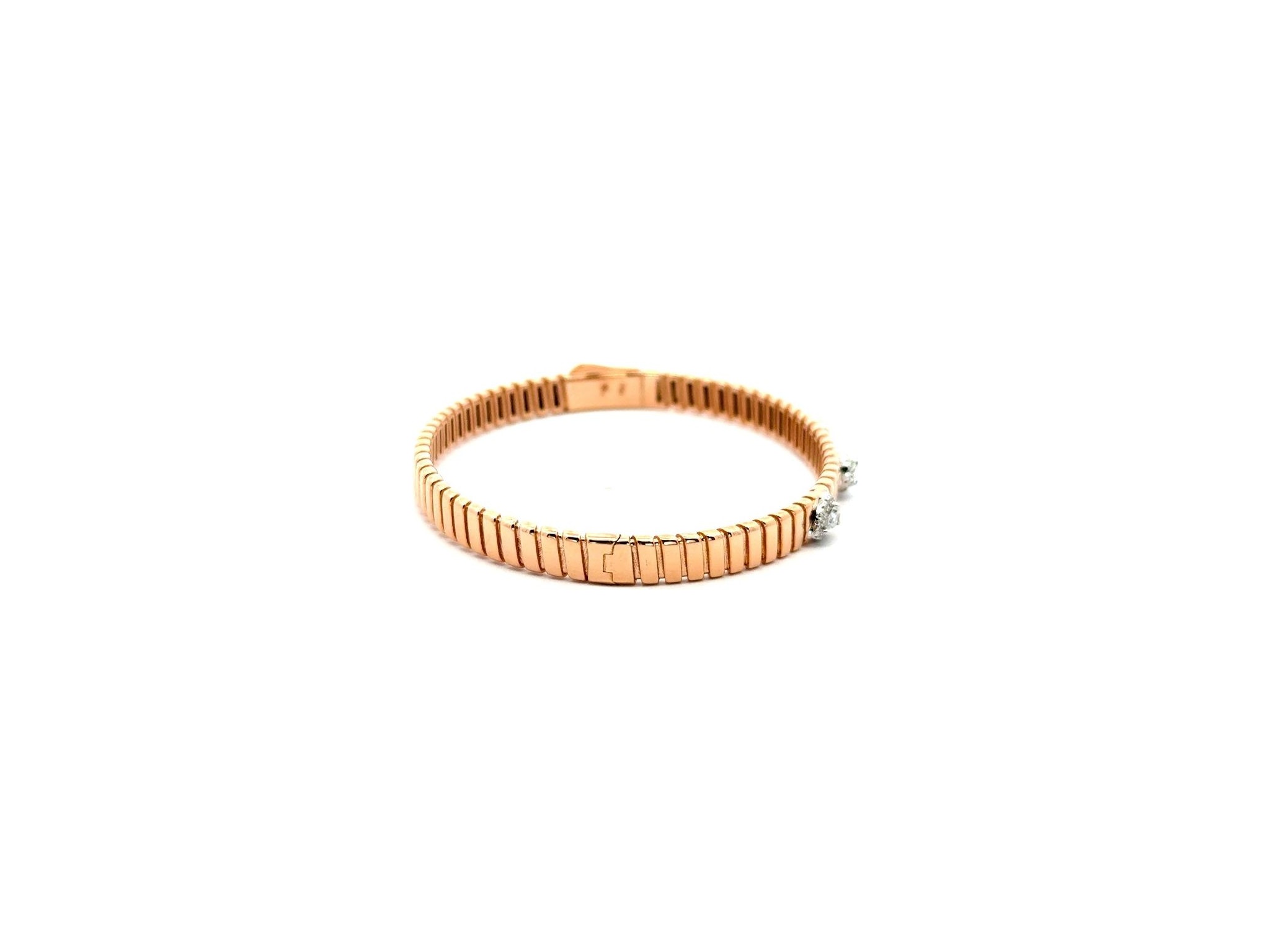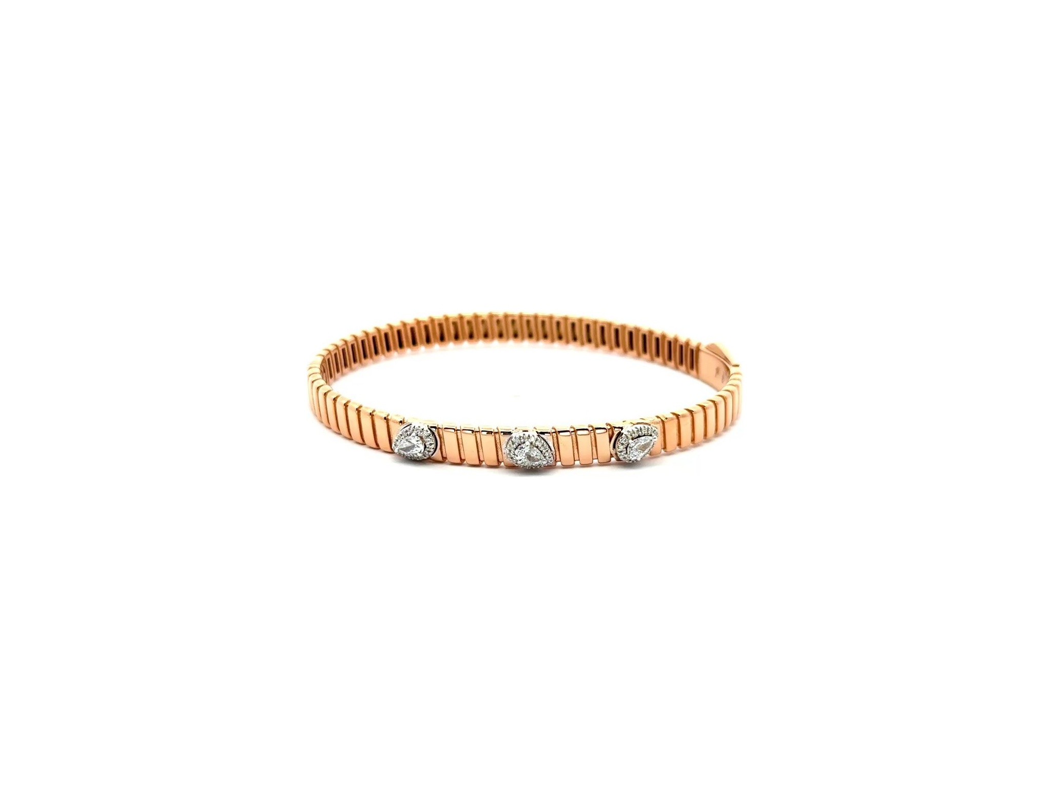 18K Rose Gold Rigid Bangle Bracelet with Three Natural Pear-Shaped Diamonds Surrounded by Round Diamonds
