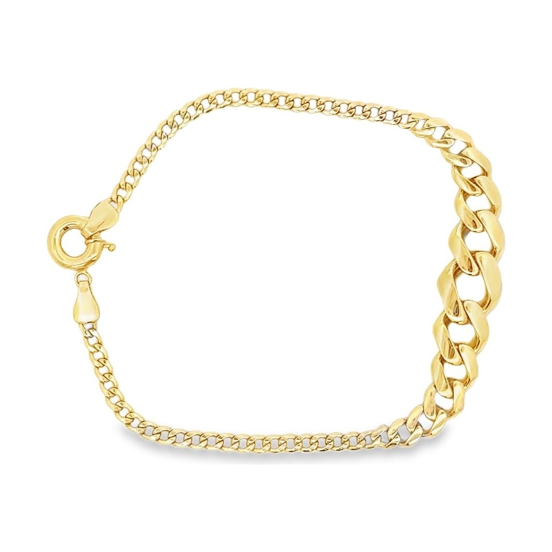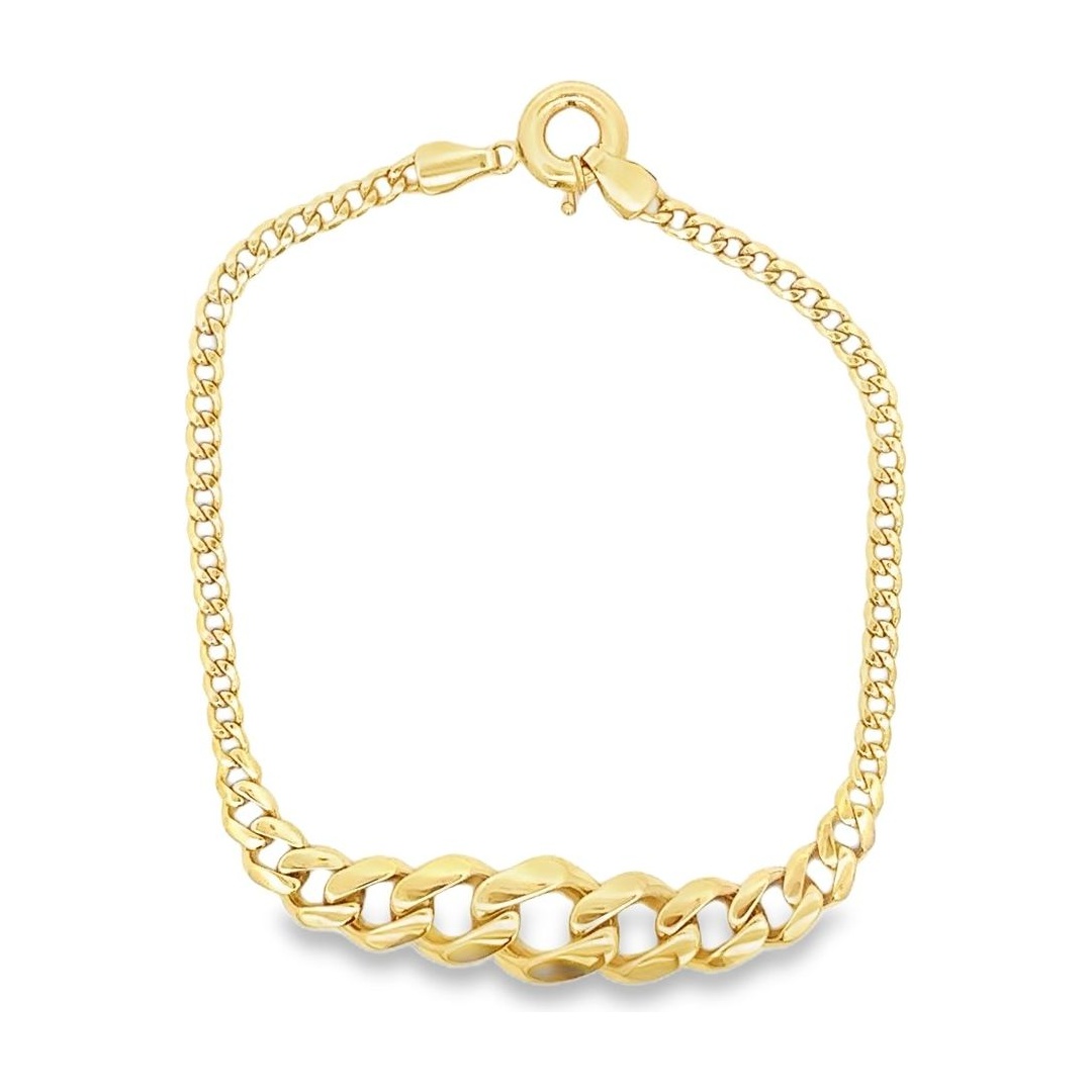 Crafted in 18K yellow gold, this bracelet showcases a sleek row of polished curb links, designed for both strength and sophistication. Its minimalist yet bold design pairs perfectly with the matching chain necklace, making it an ideal choice for those who appreciate refined style with a modern edge.