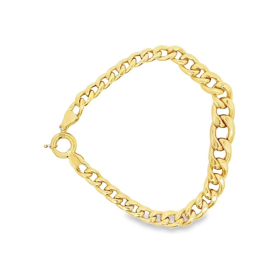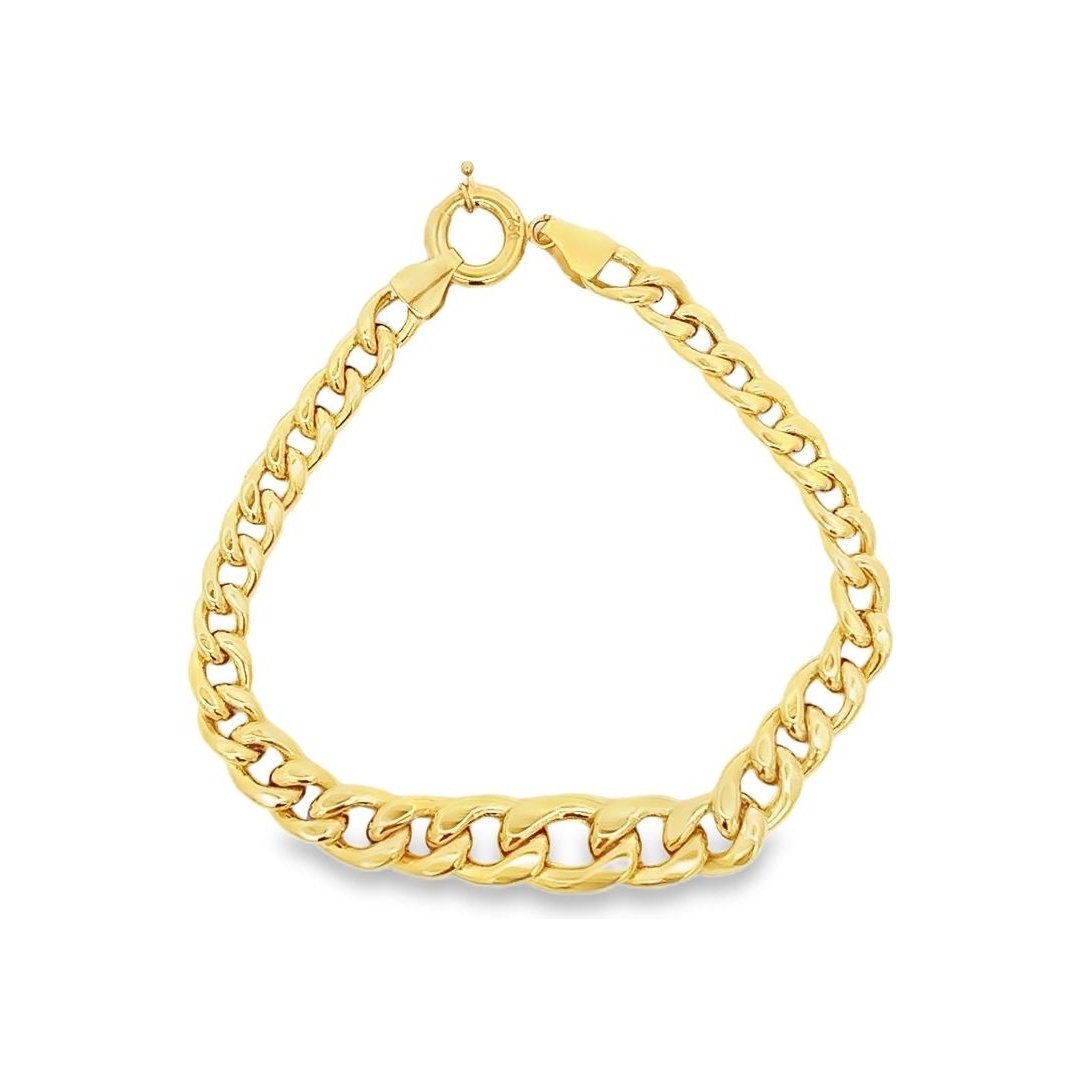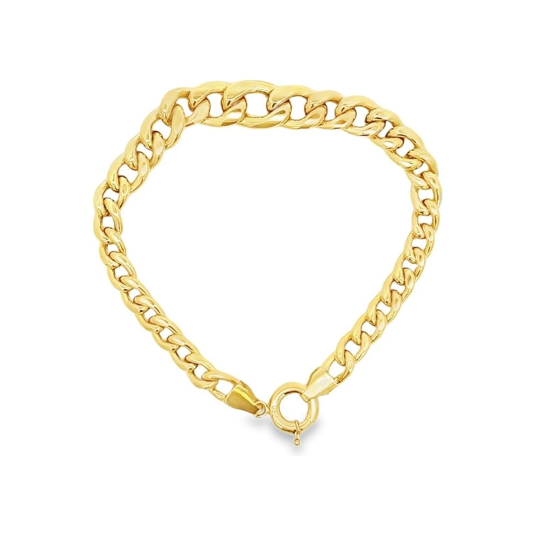 This timeless bracelet features bold, interlocking curb links crafted entirely in 18K yellow gold. Each link is meticulously polished to achieve a smooth, mirror-like finish, giving the piece a rich, luxurious glow. Designed for both sophistication and durability, it offers a confident, refined look that complements any style—from everyday wear to formal occasions.