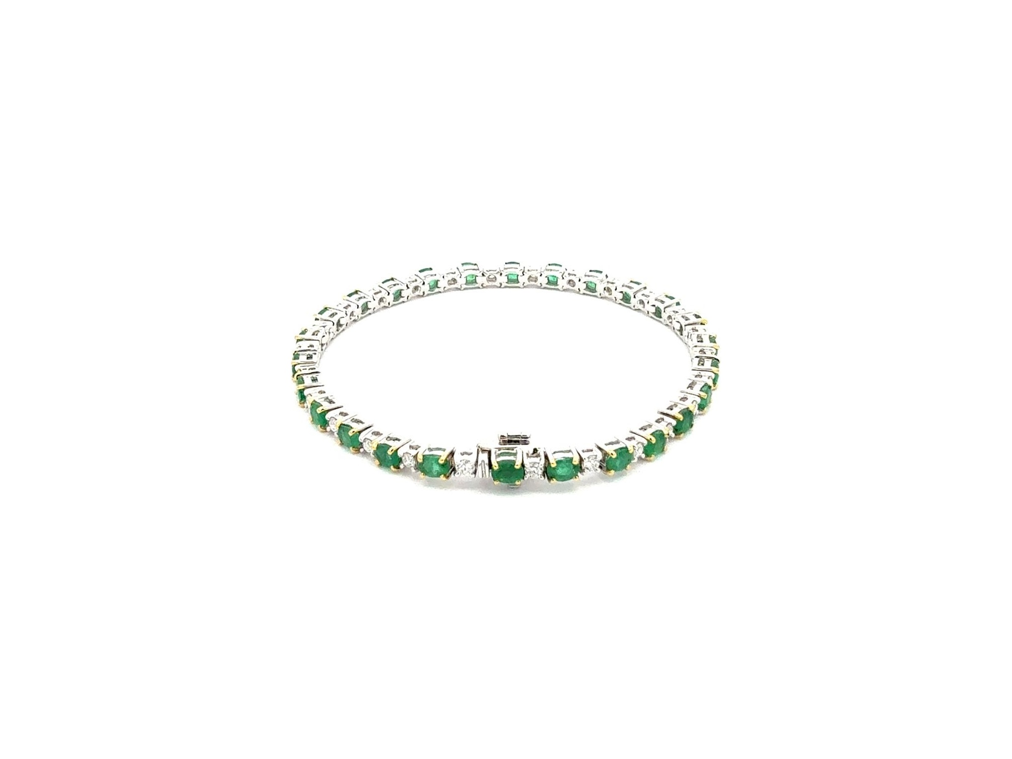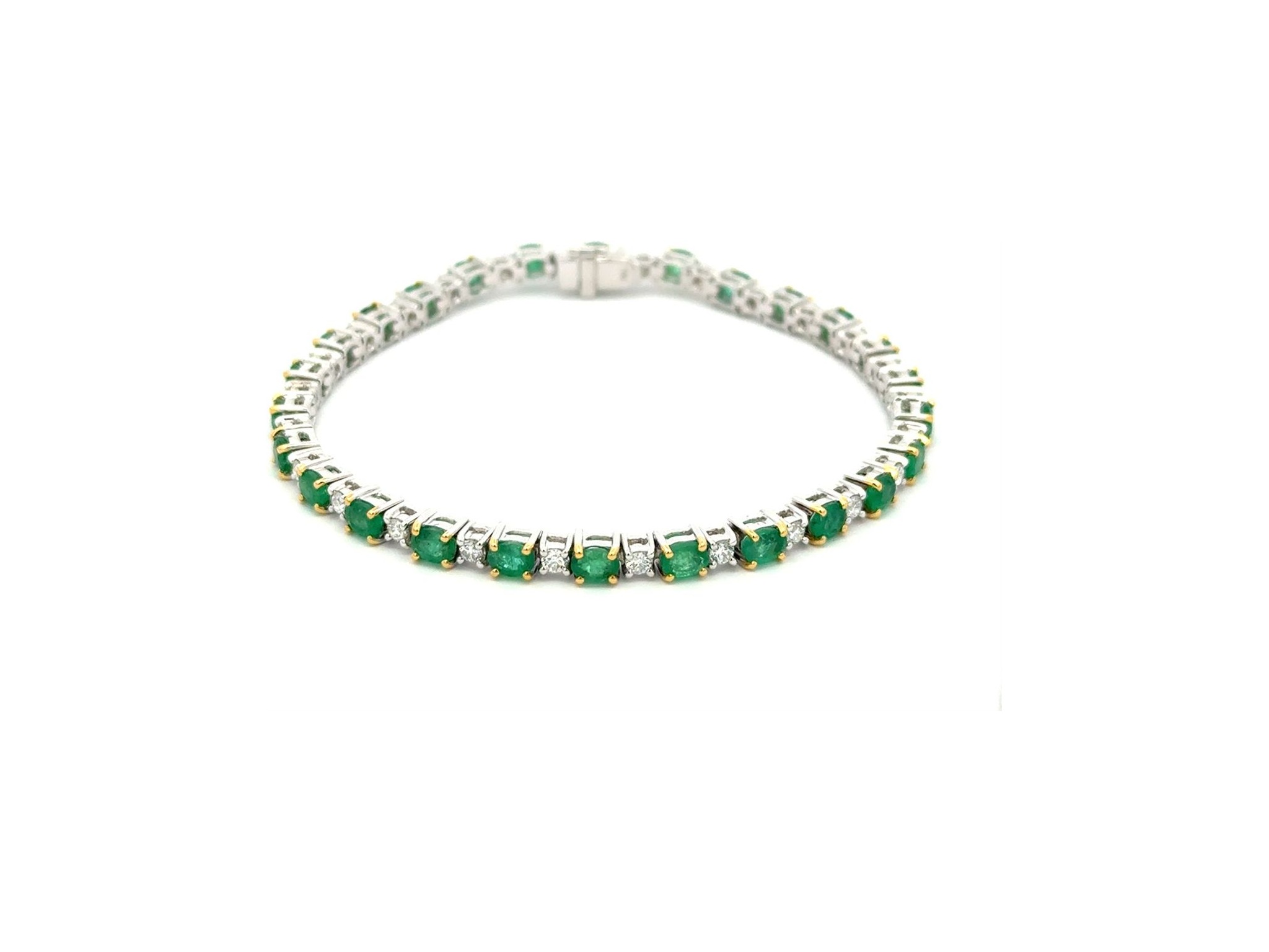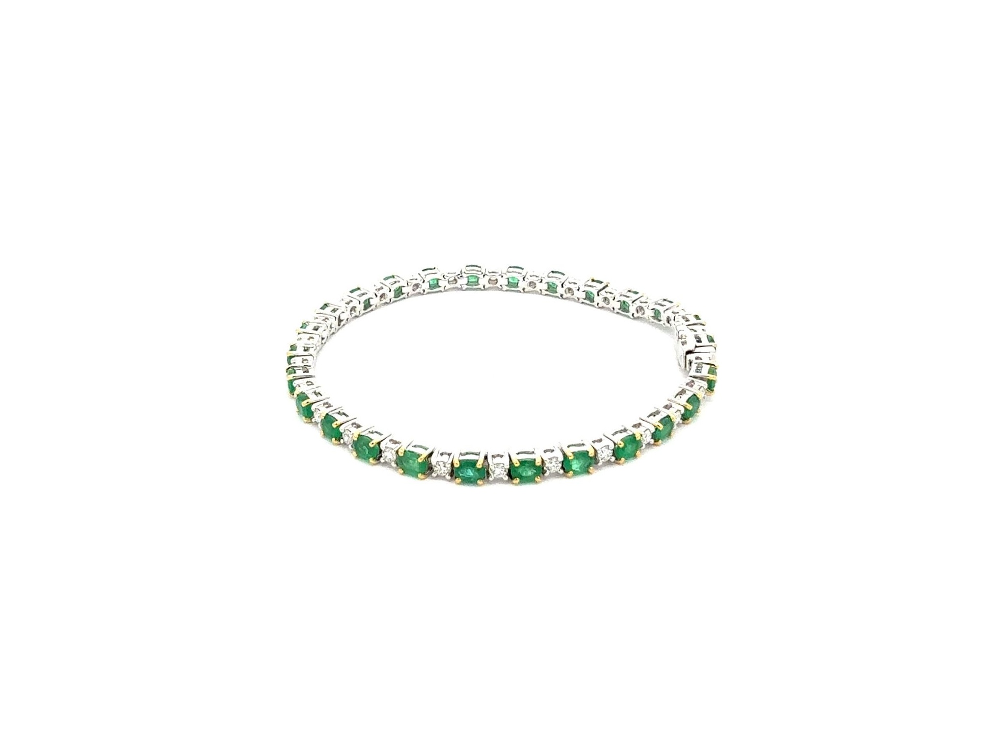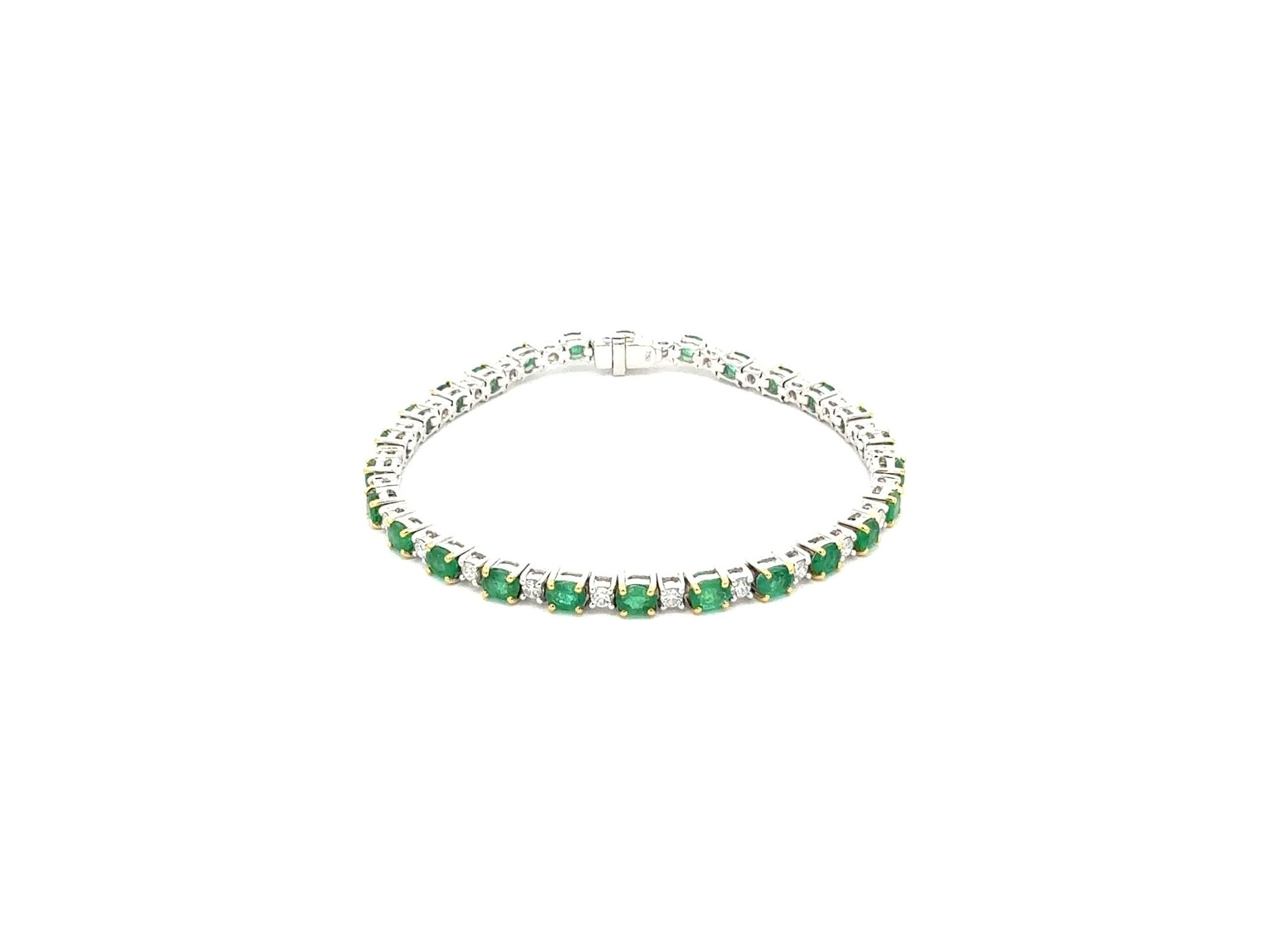 18K White Gold Tennis Bracelet with Natural Oval Emeralds and Diamonds