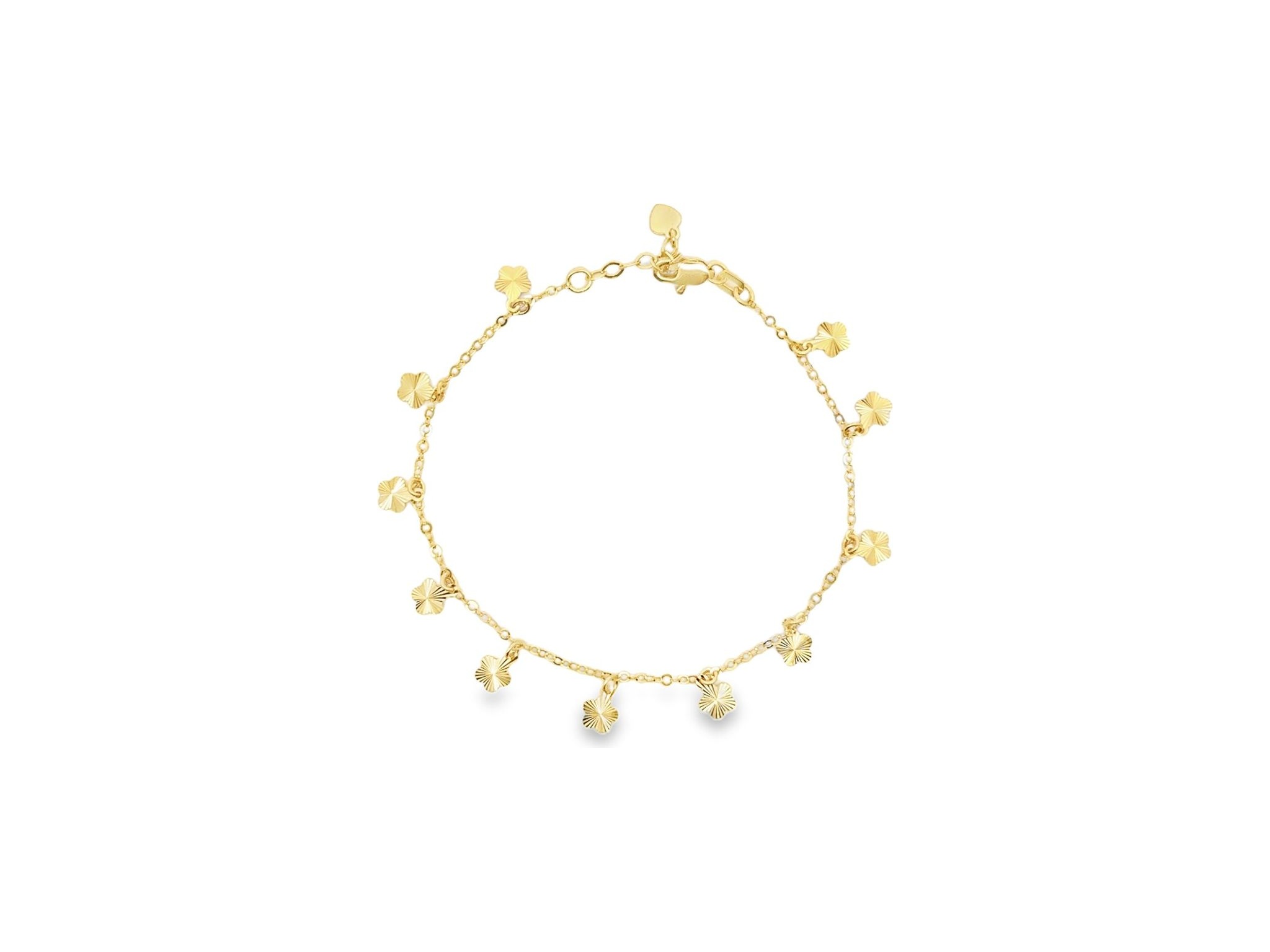 18K Yellow Gold Floral Charm Bracelet – 7.7 Inch