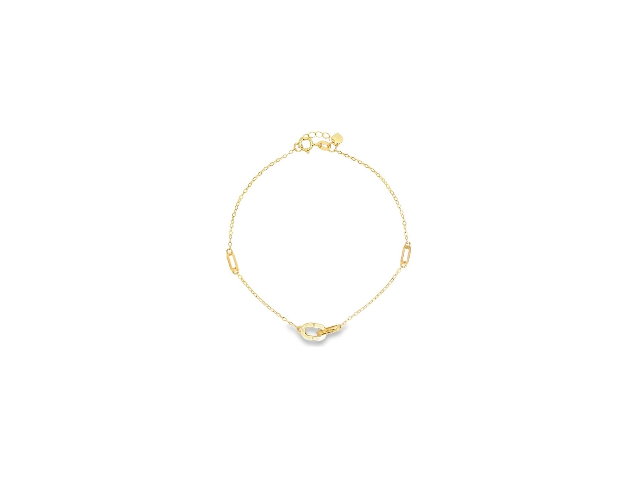 18K Yellow Gold Bracelet with Interlocked Oval Links and Bar Accents