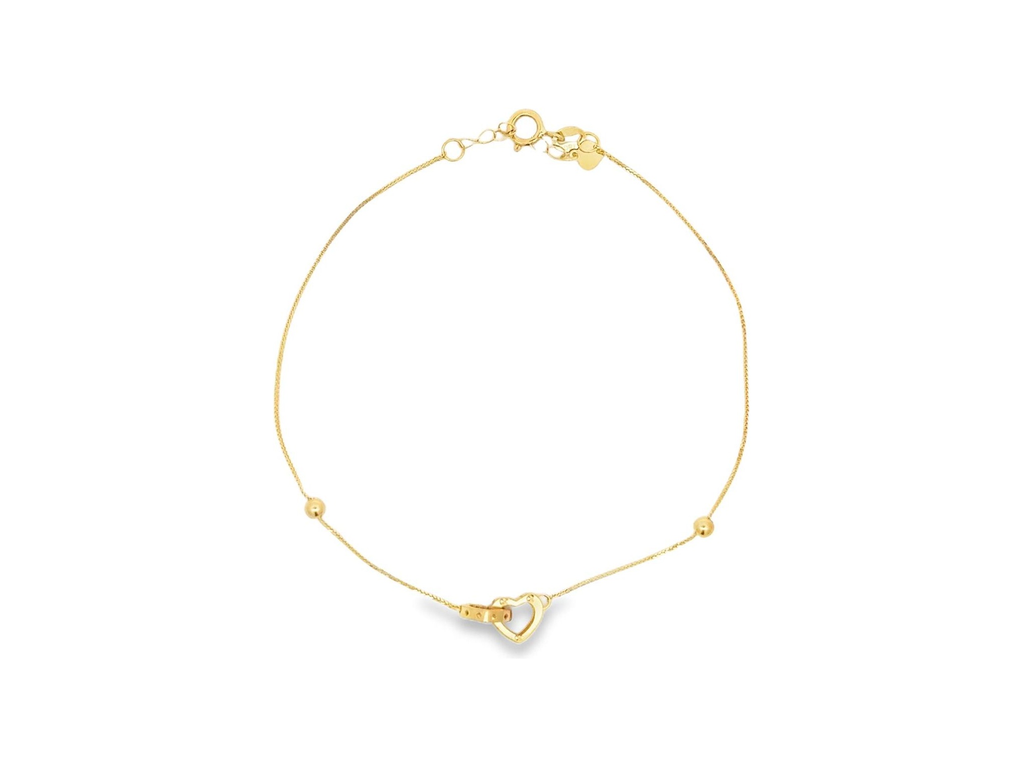 18K Yellow Gold Bracelet with Interlocked Heart and Ring Charm