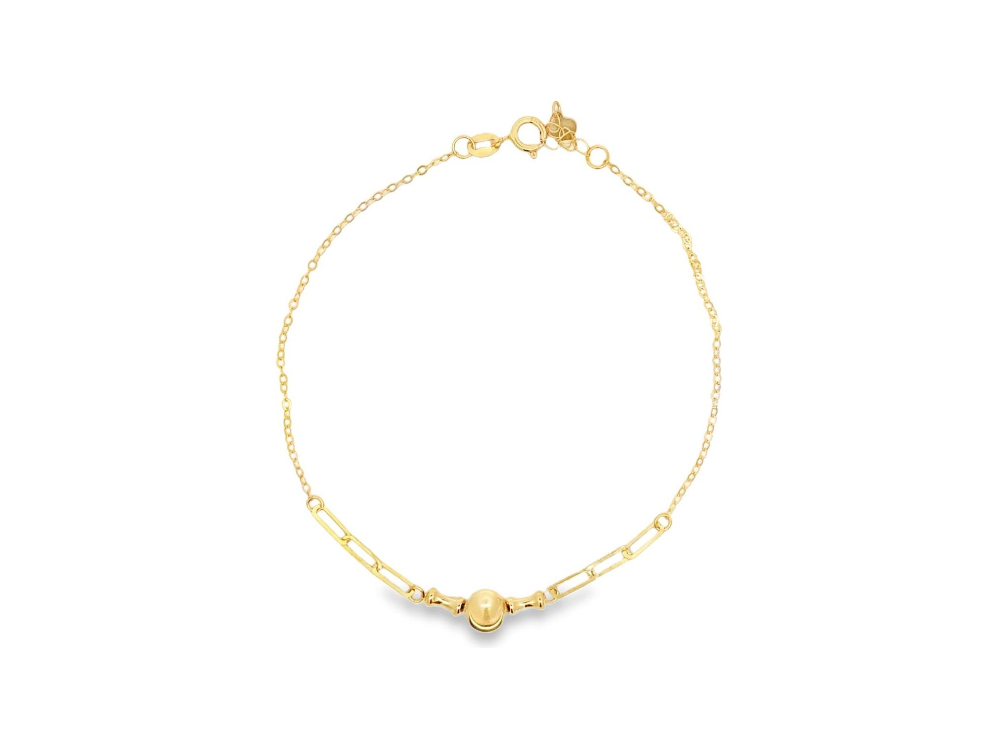 18K Yellow Gold Bracelet with Textured Bead Center and Bar Link Accents