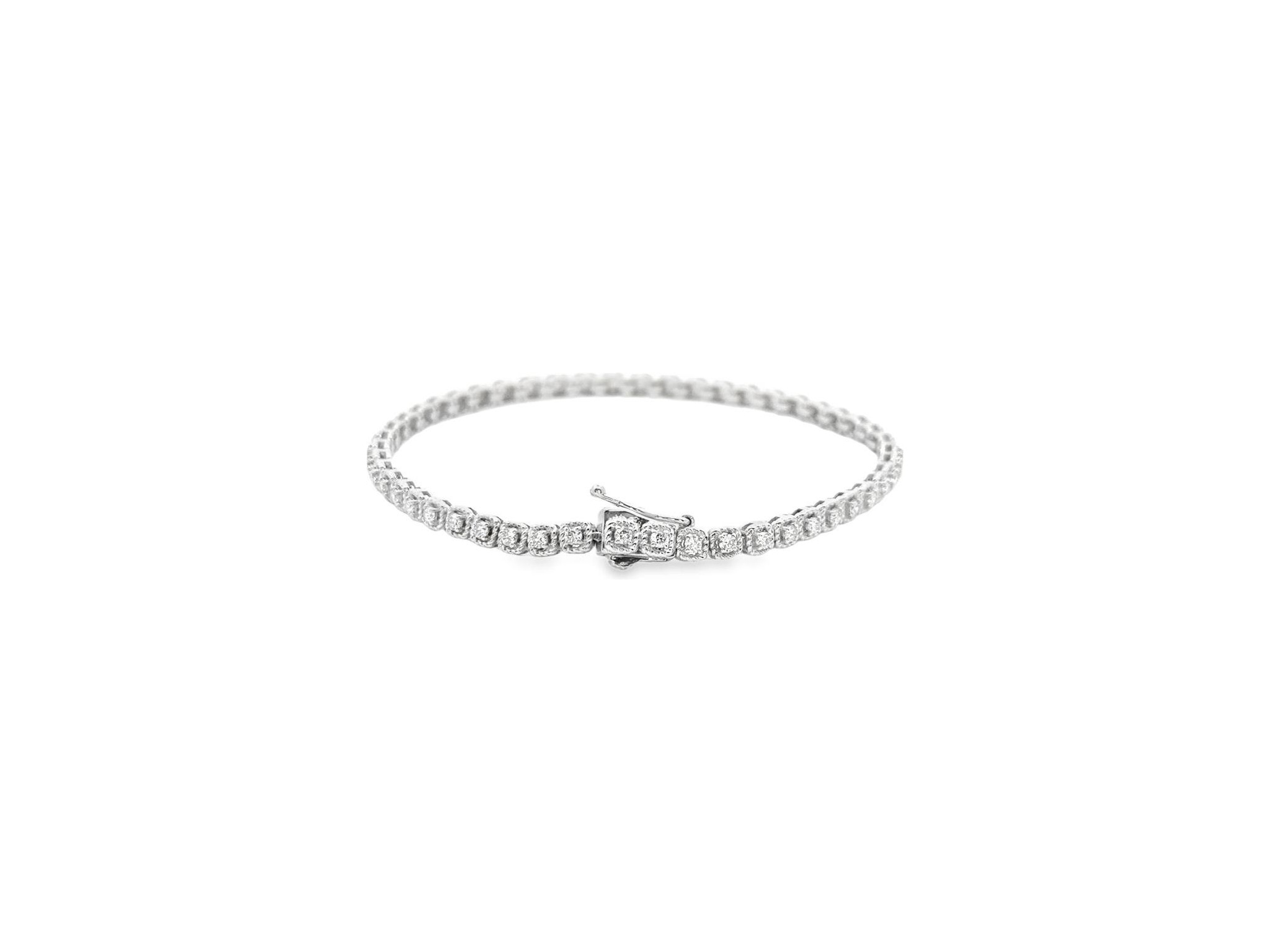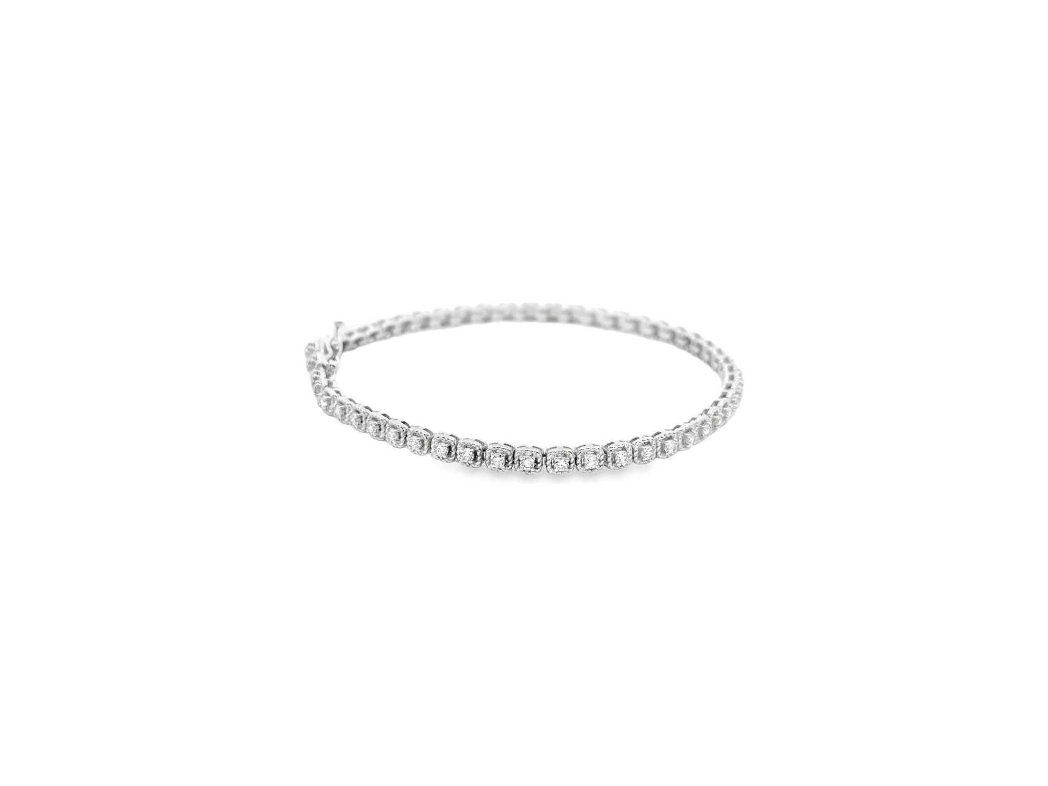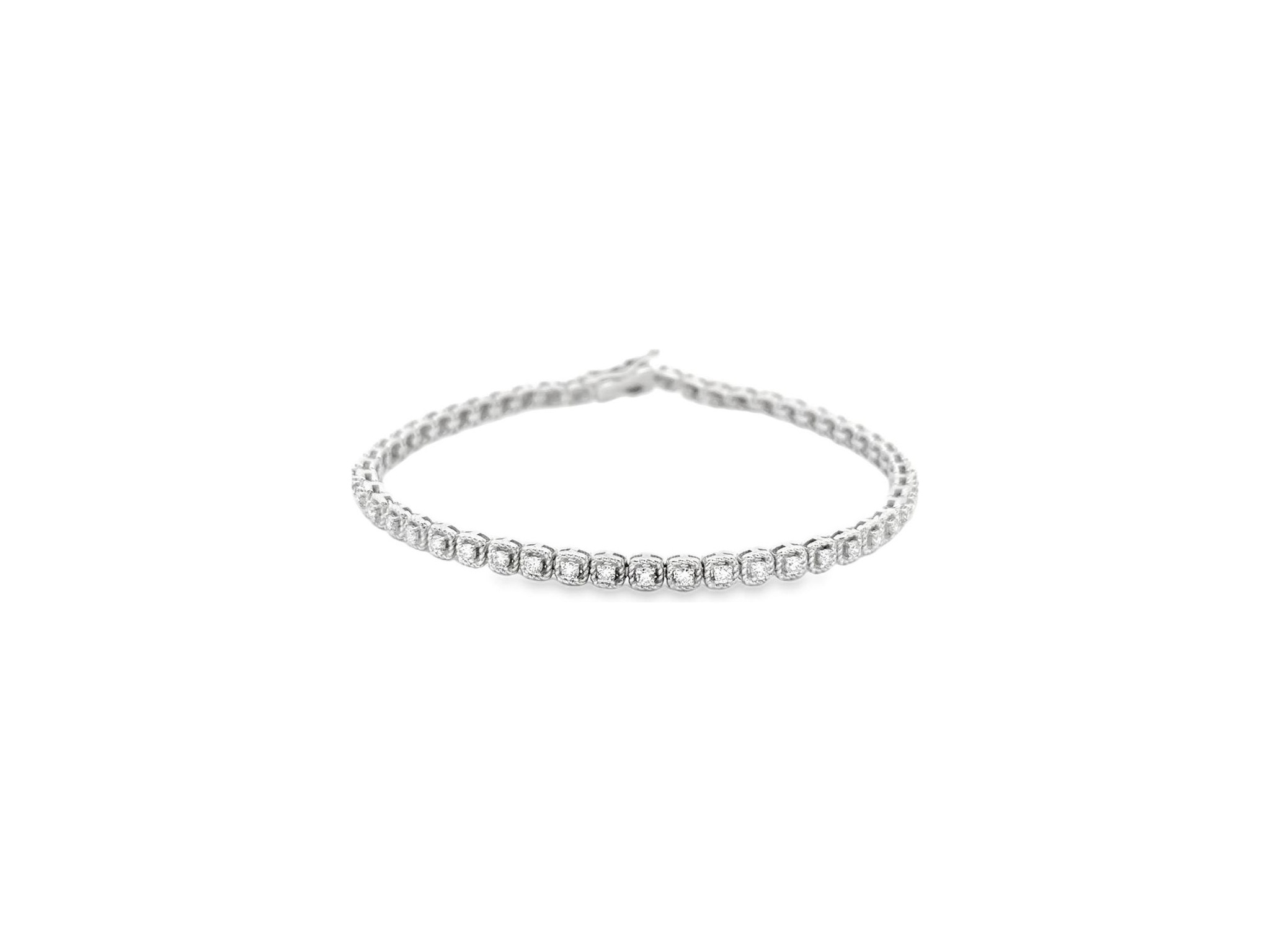 18K White Gold Bracelet with Natural Round Diamonds and Engraved Gold Accents