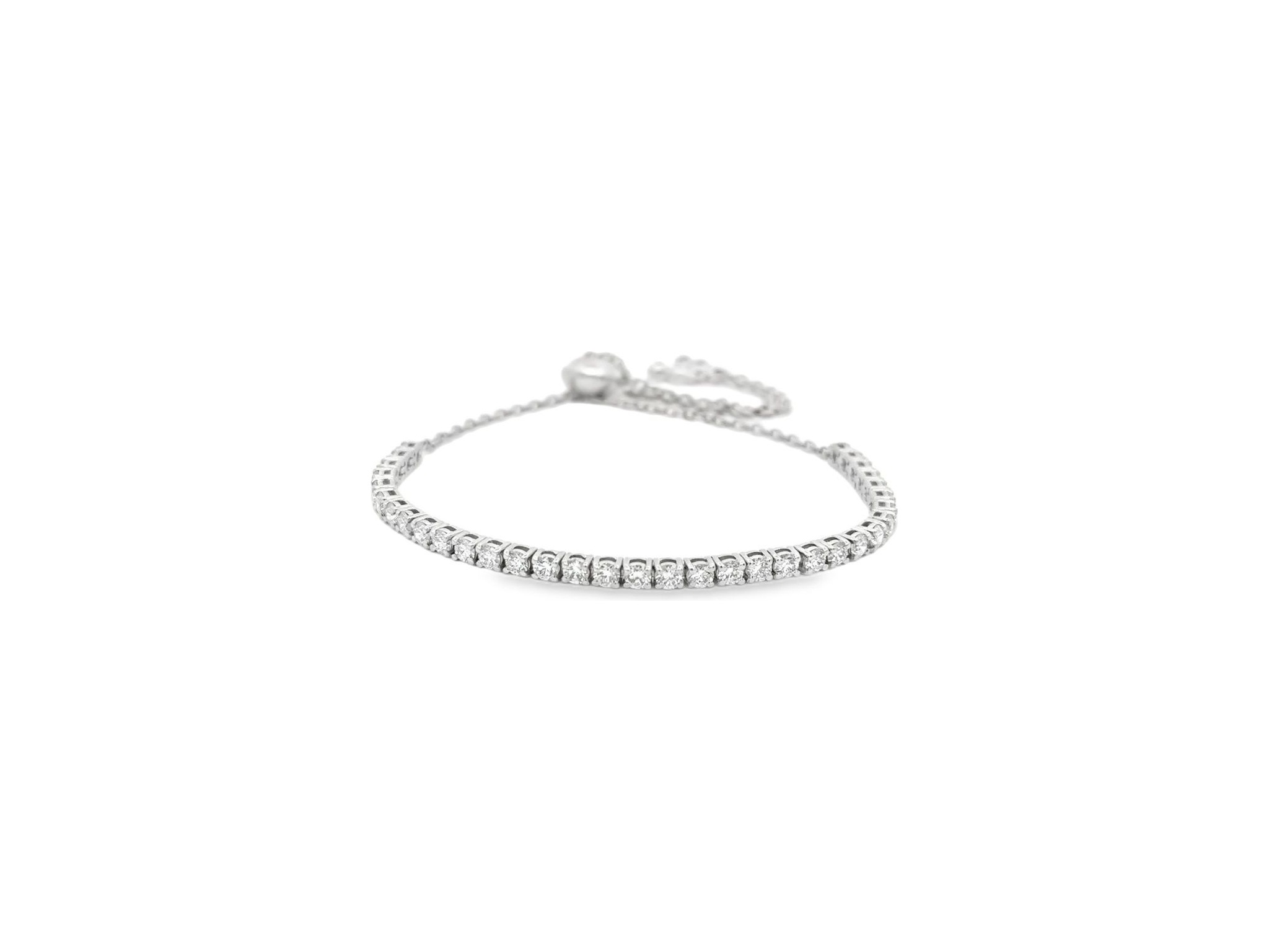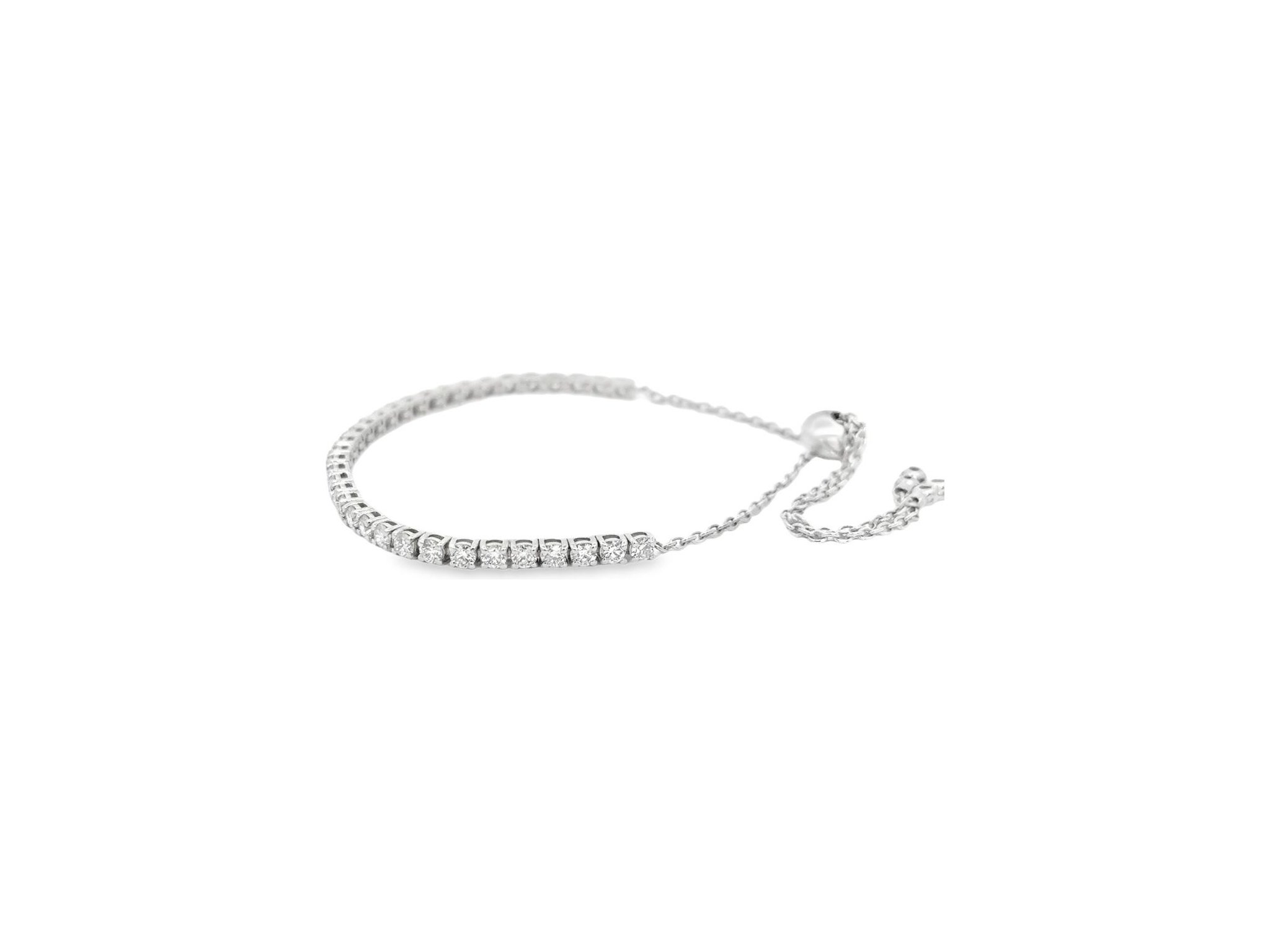 18K White Gold Adjustable Tennis Bracelet with Natural Round Diamonds