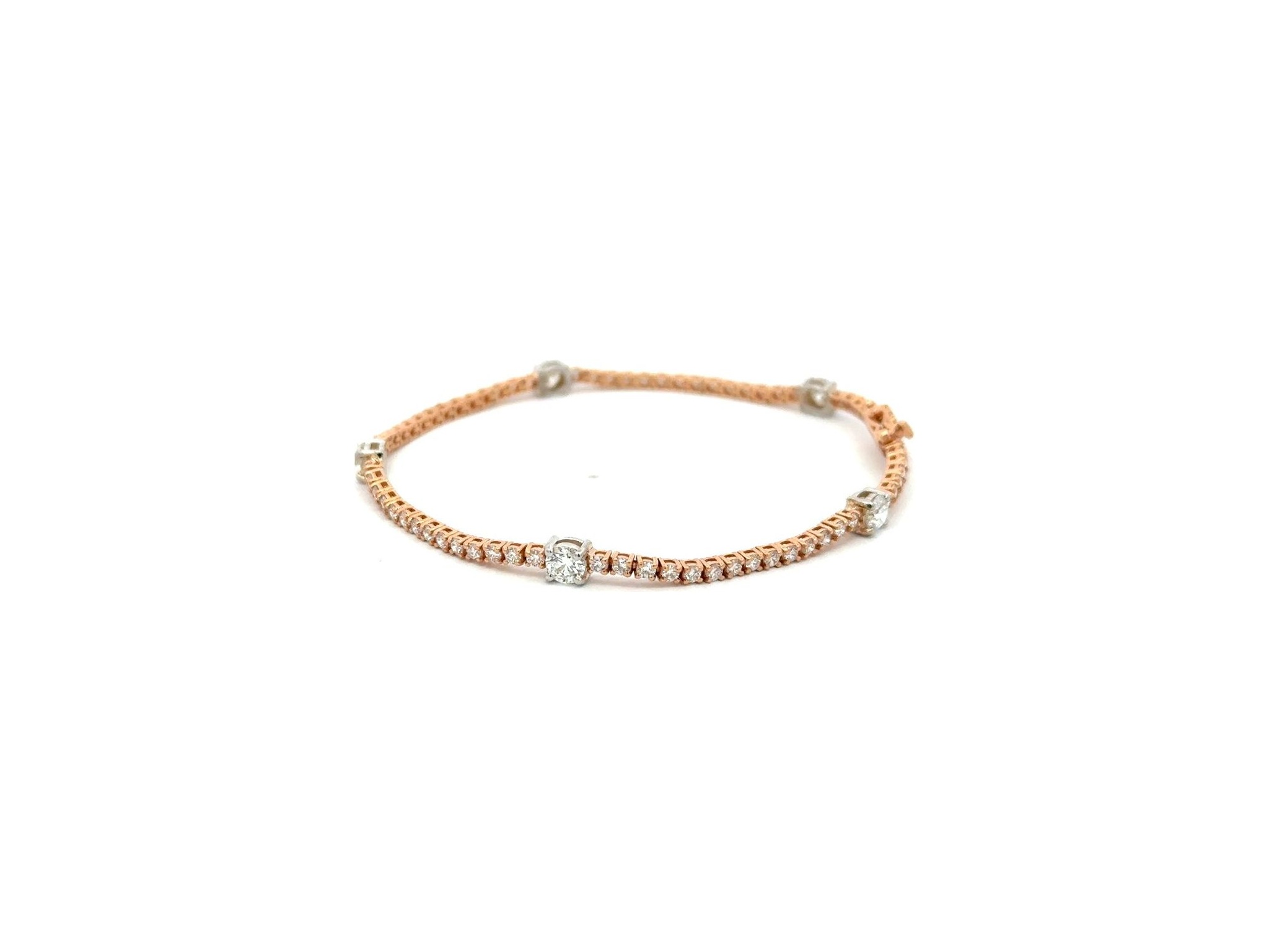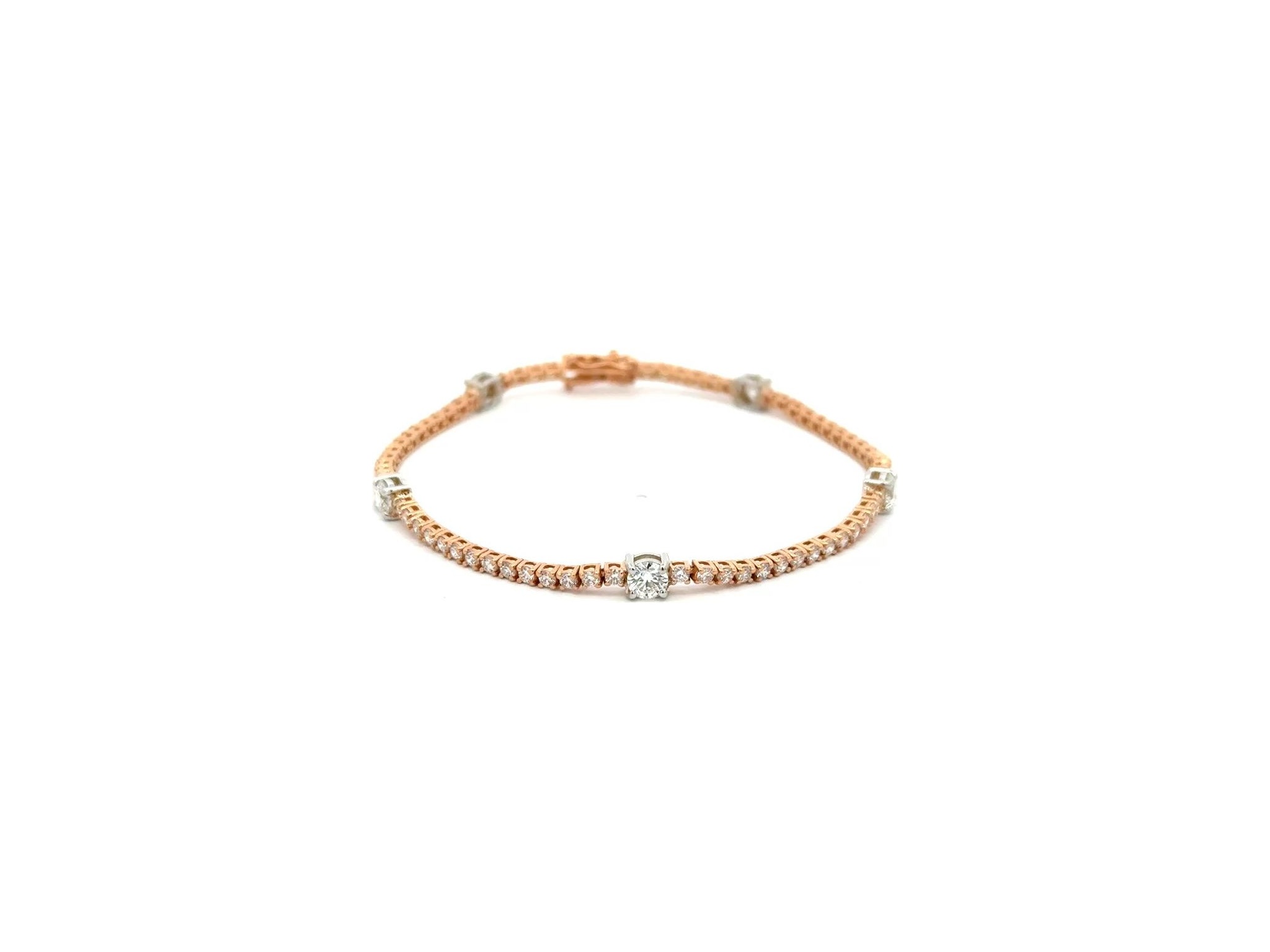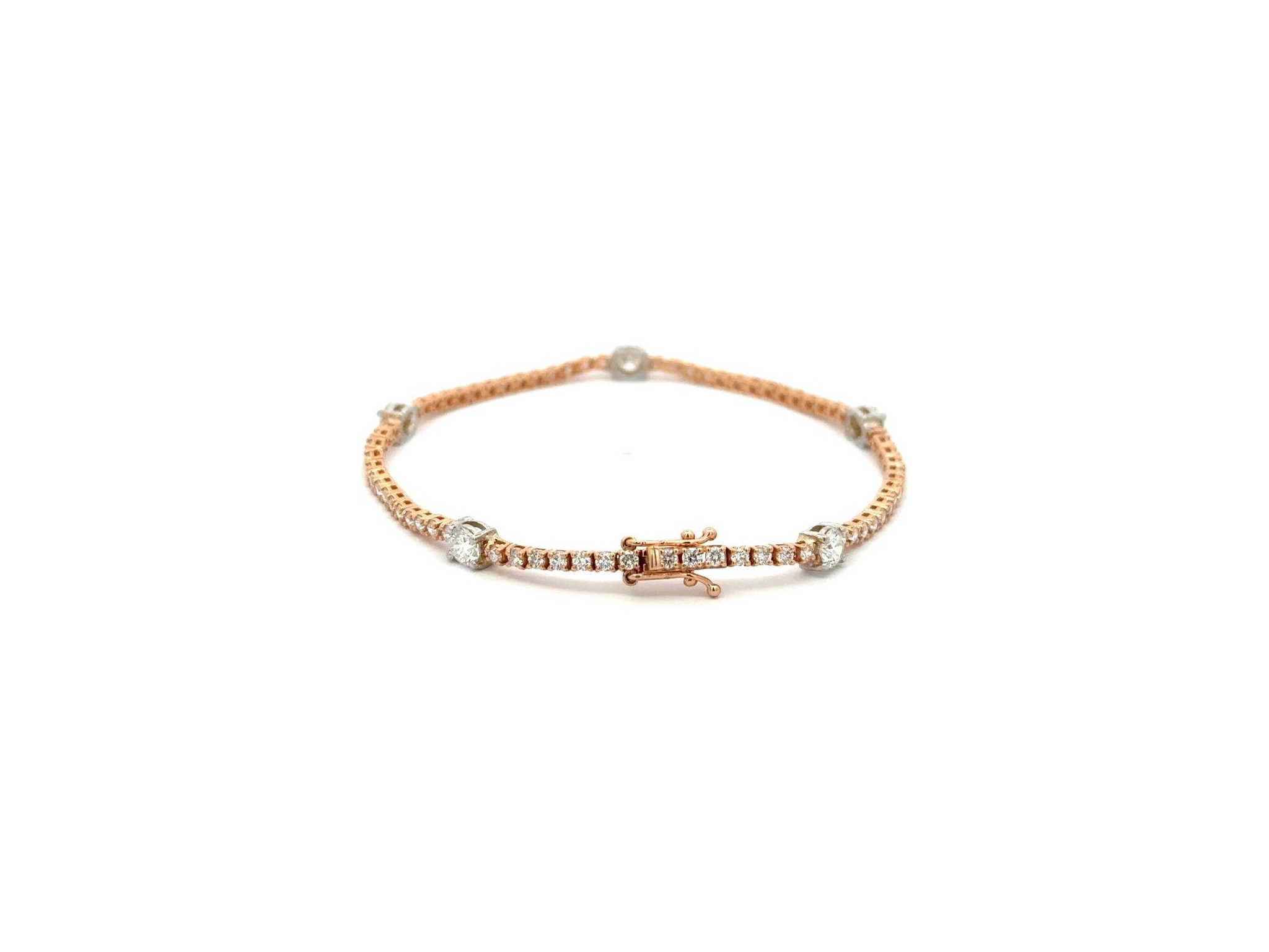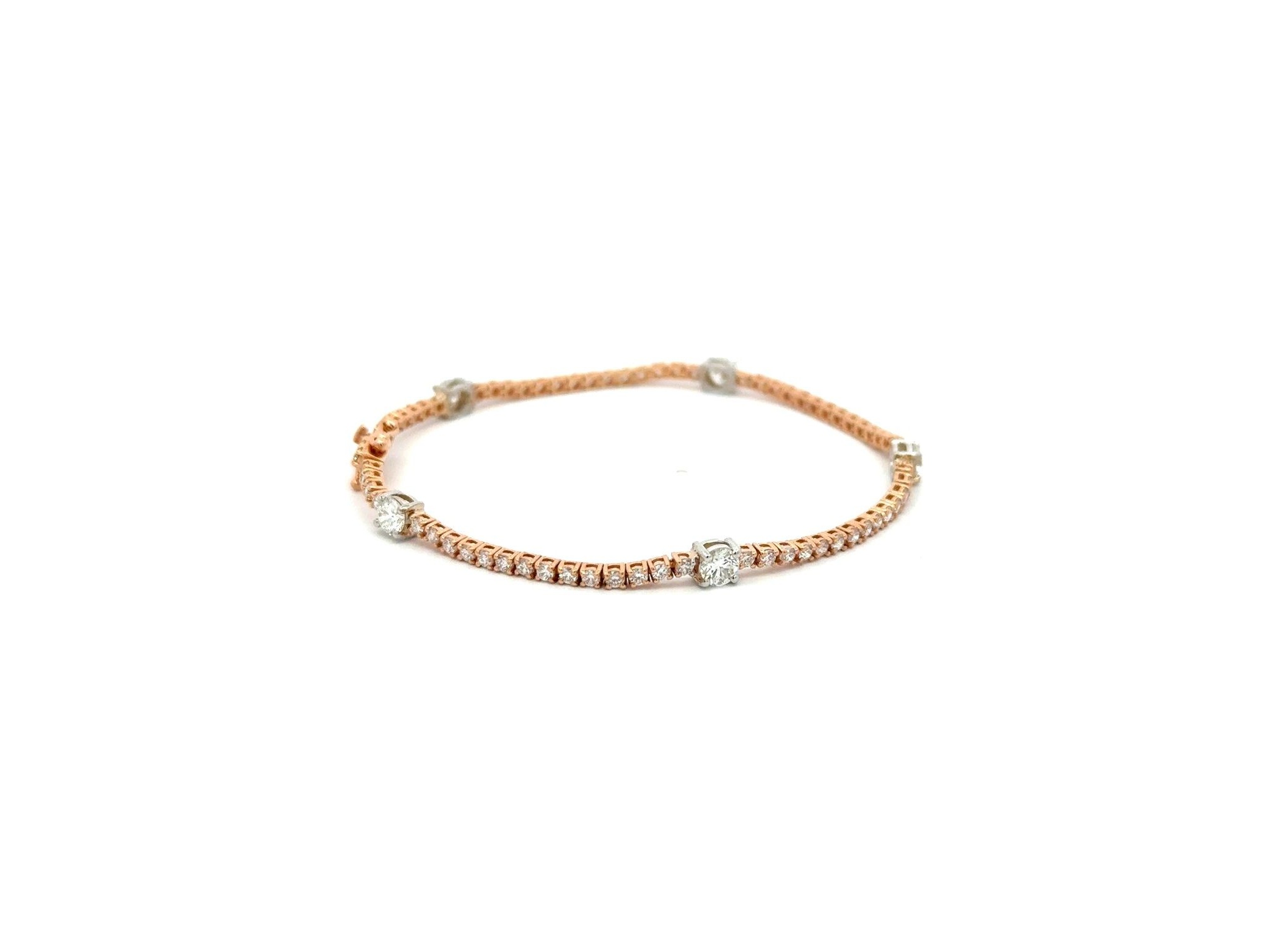 18K Rose and White Gold Diamond Bracelet with Natural Round Diamonds