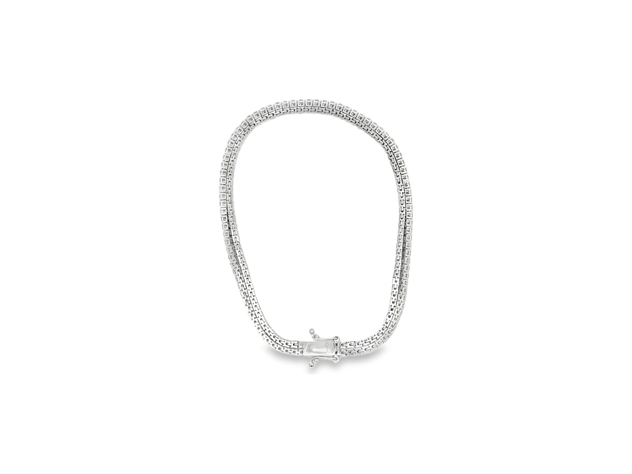 8K White Gold Double Row Tennis Bracelet with Natural Round Diamonds