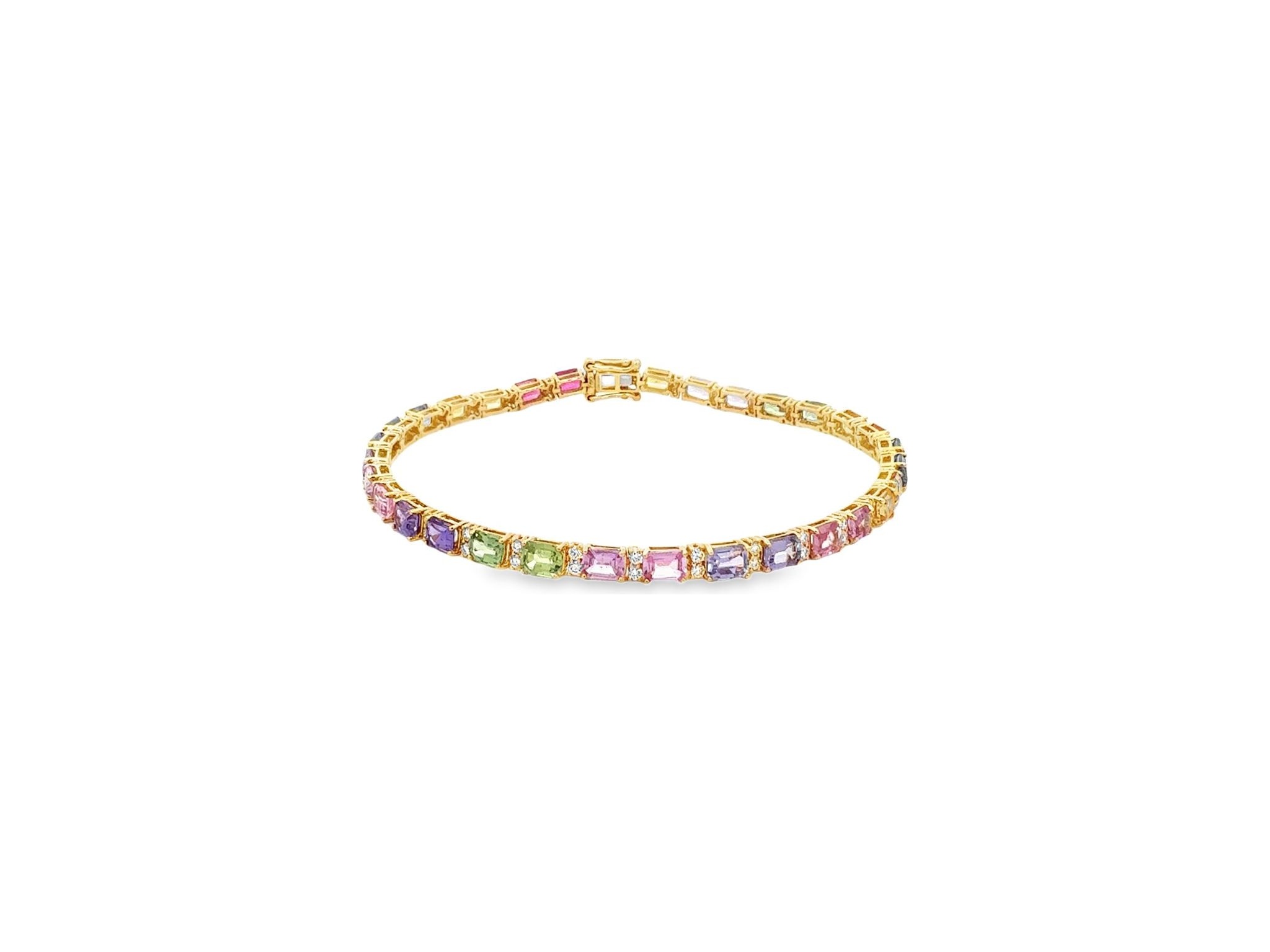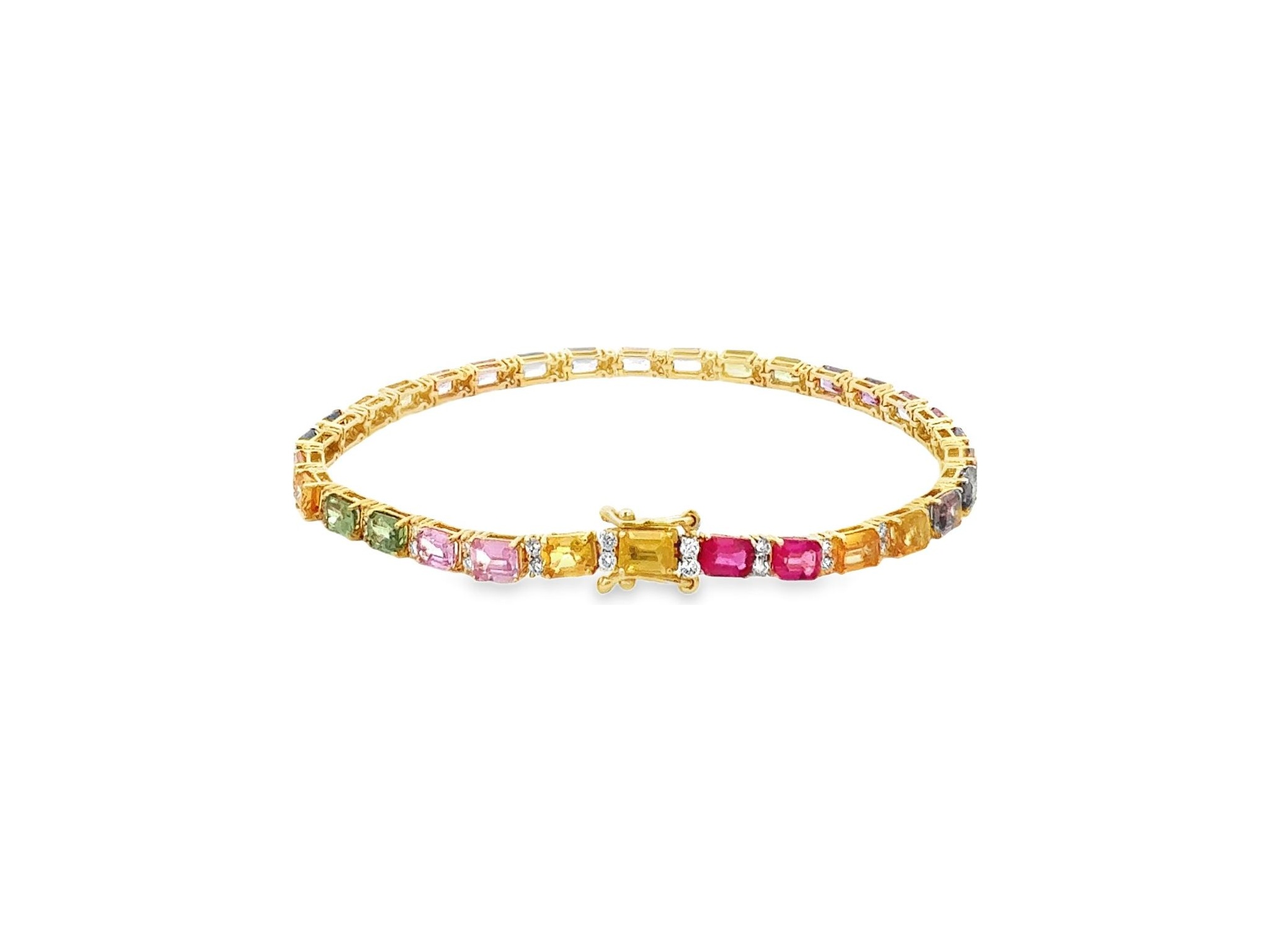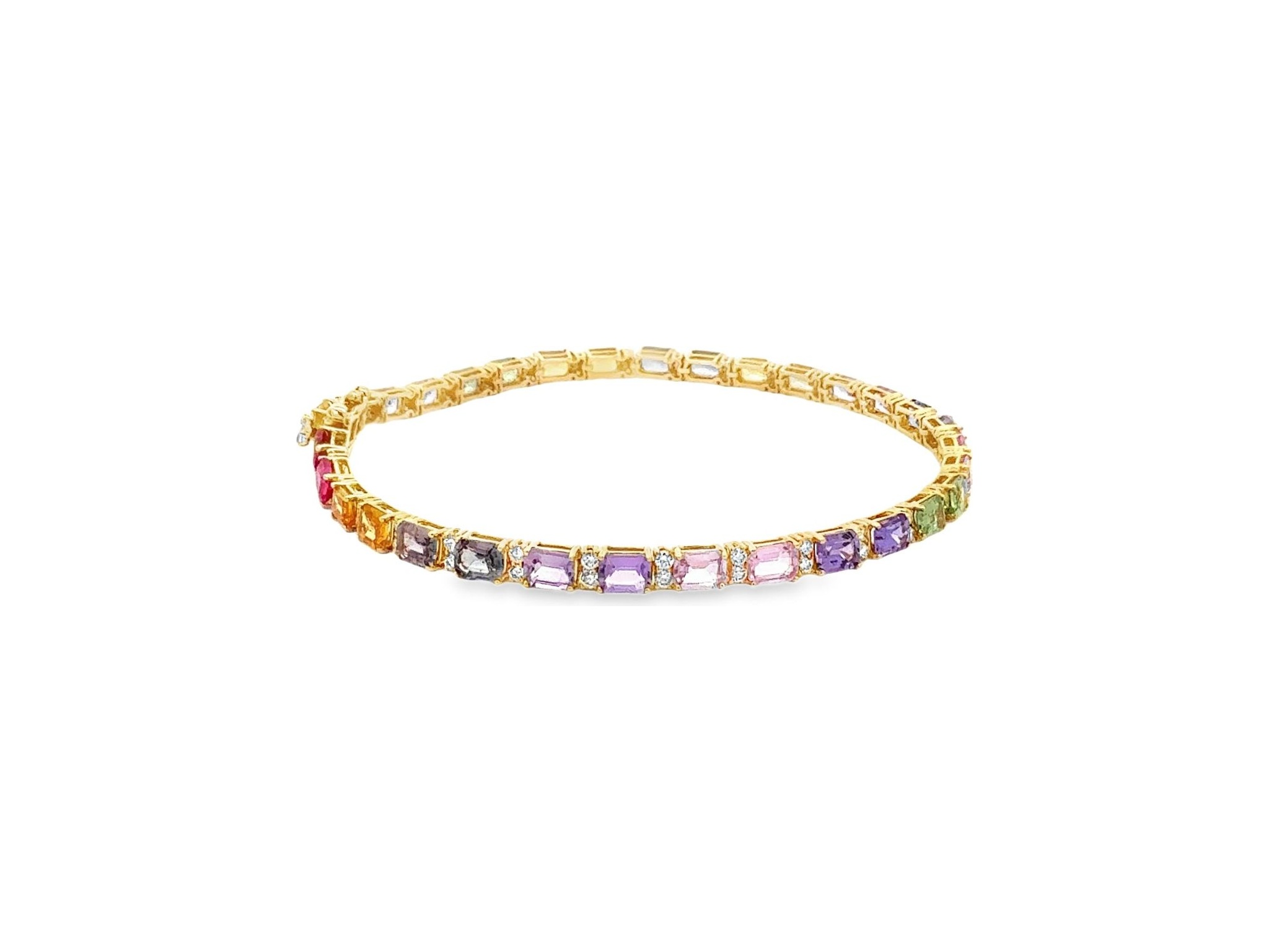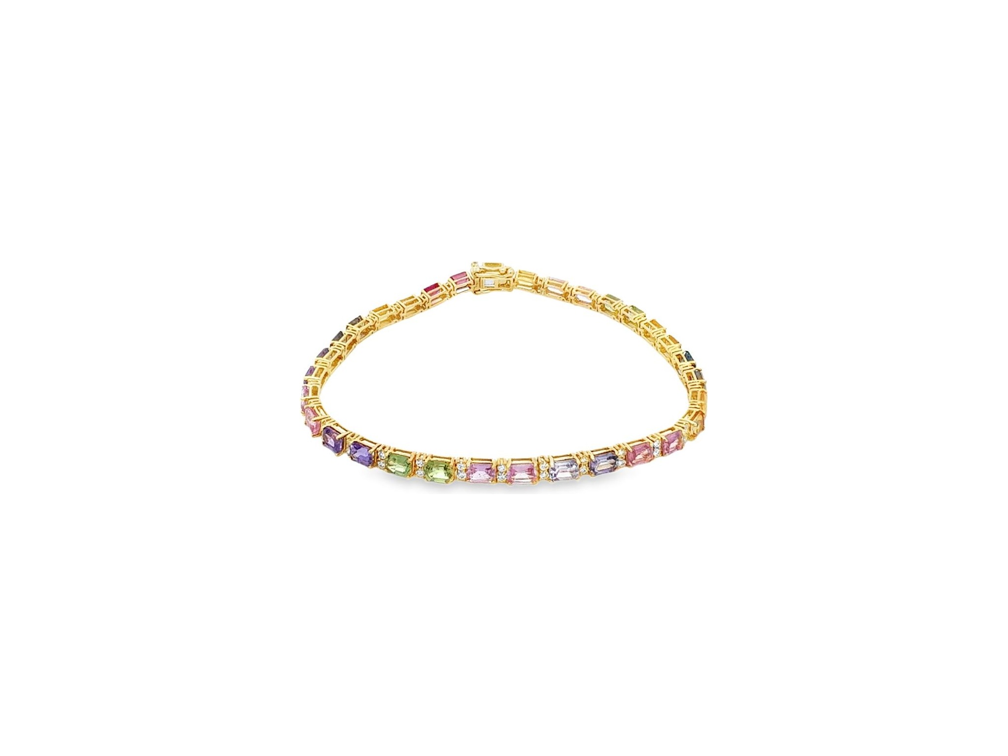 18K Yellow Gold Bracelet with Natural Multi-Colored Gemstones and Diamonds