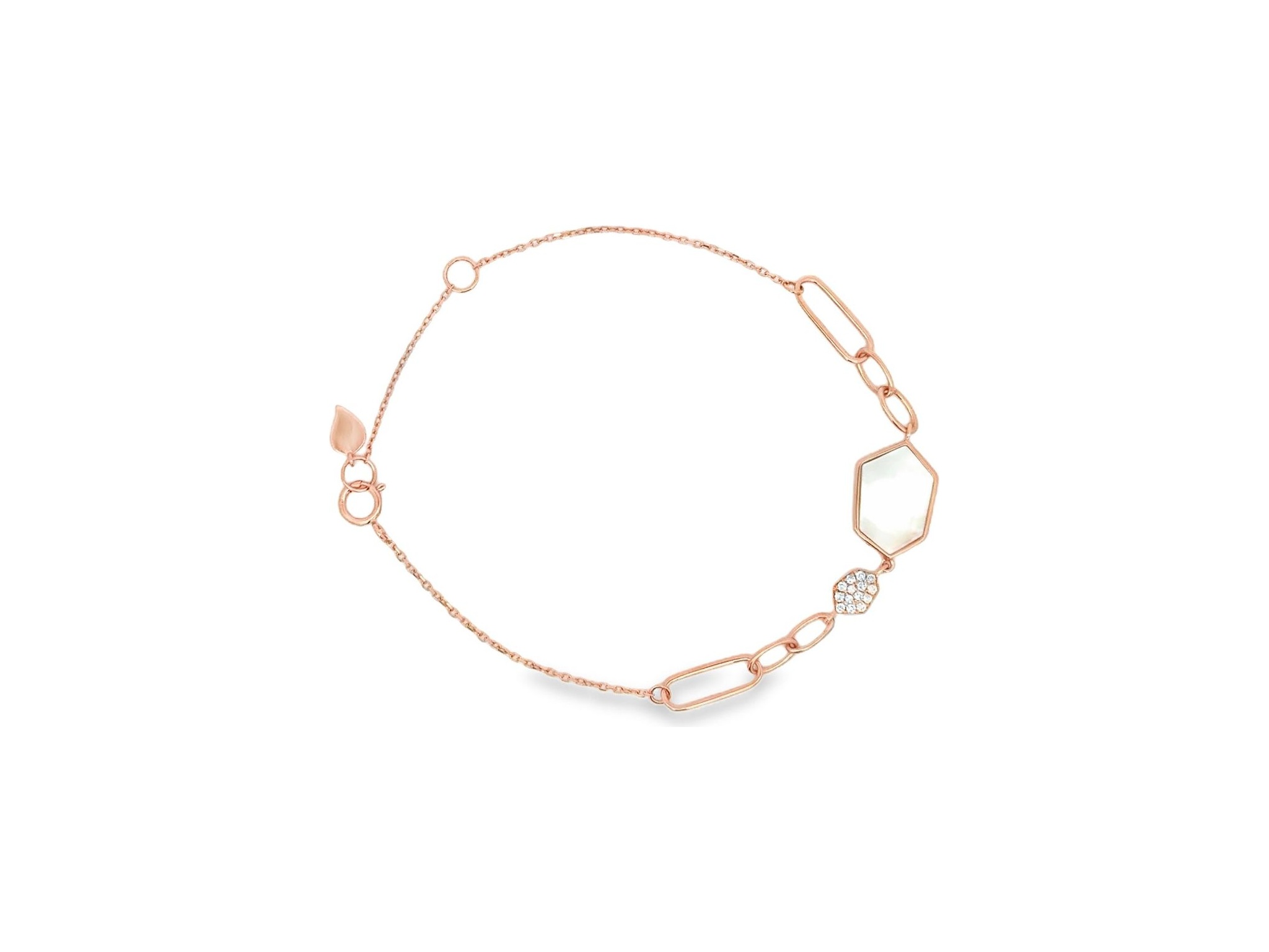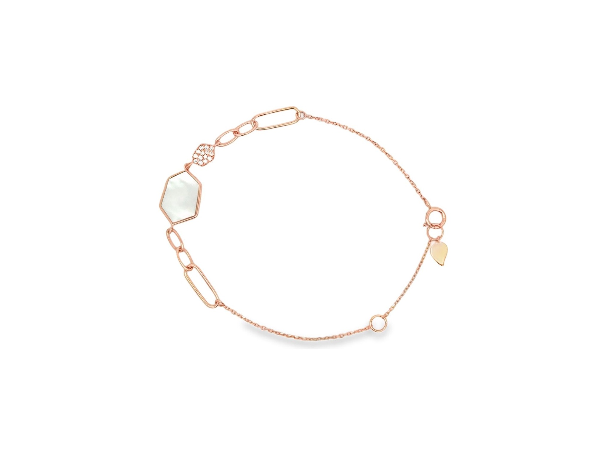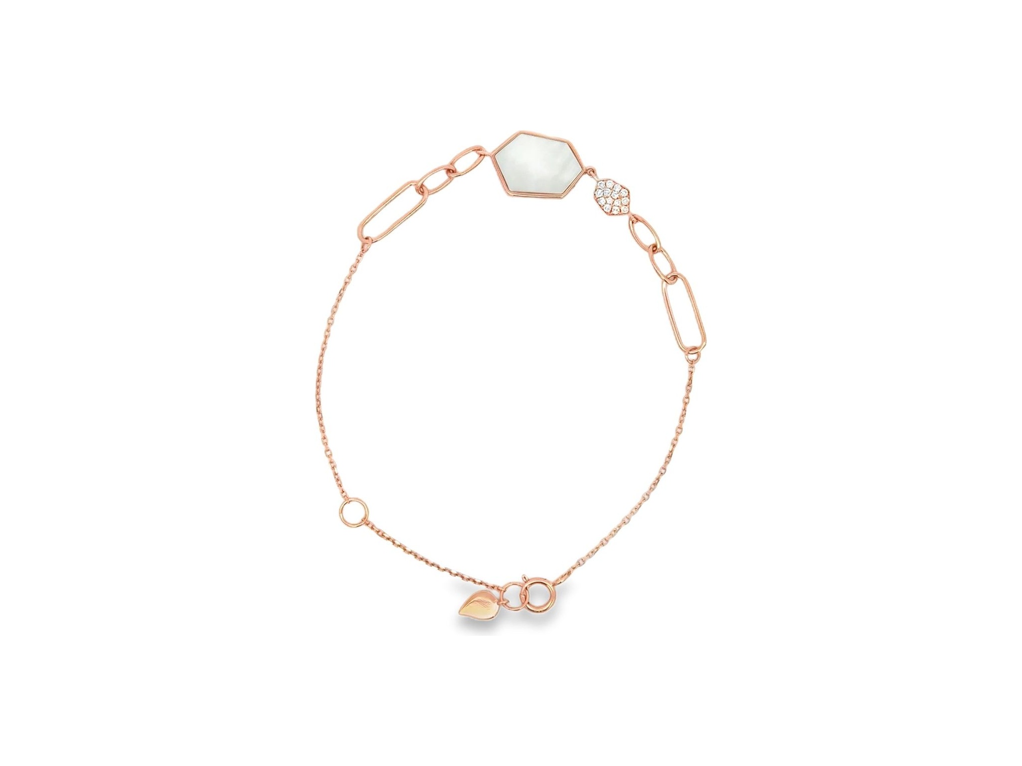 18K Rose Gold Bracelet featuring Natural Diamonds and Genuine Mother of Pearl