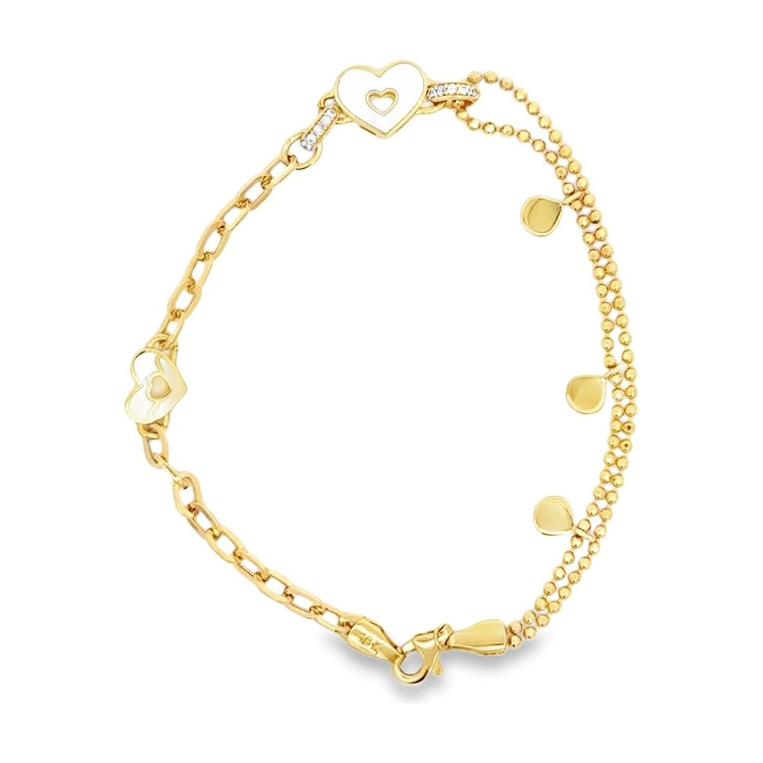 18K Yellow Gold Enamel Double-Strand Bracelet with Atomic Stone and Heart Motifs