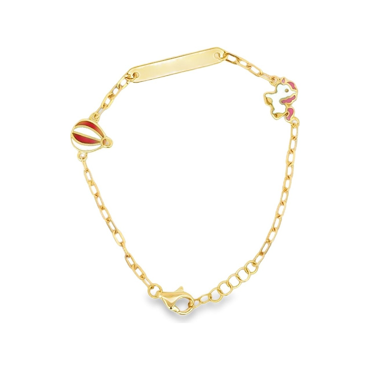 18K Yellow Gold Enamel Baby ID Bracelet with Elephant and Hot Air Balloon Motifs