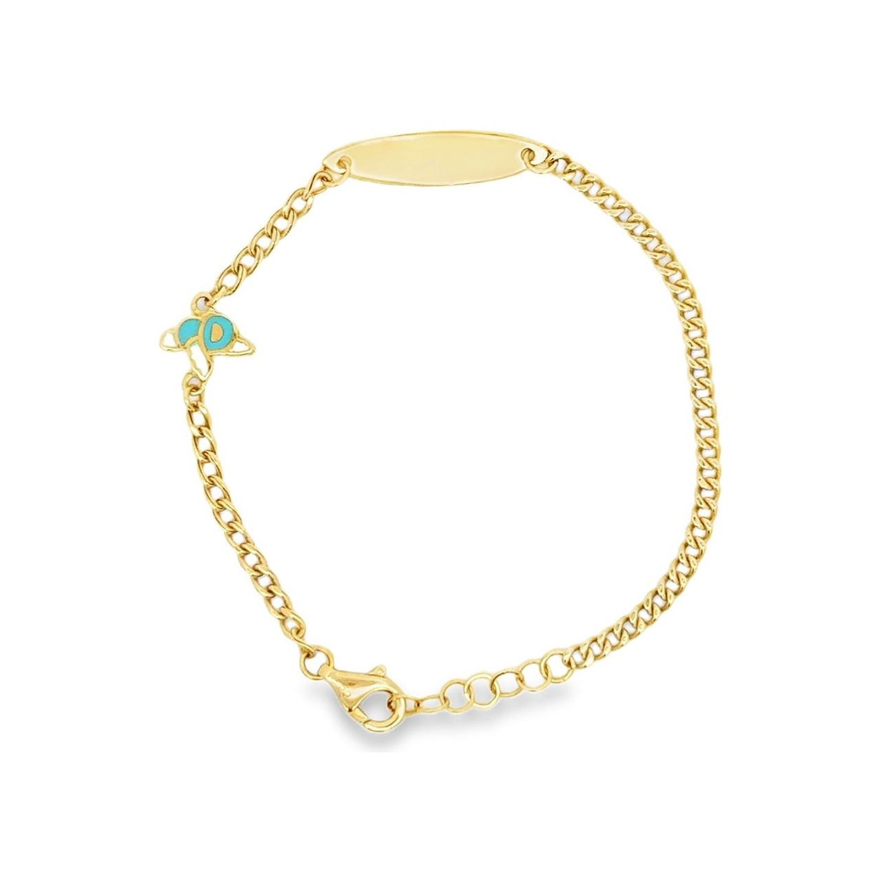 18K Yellow Gold Baby ID Bracelet with Enamel Bird Charm