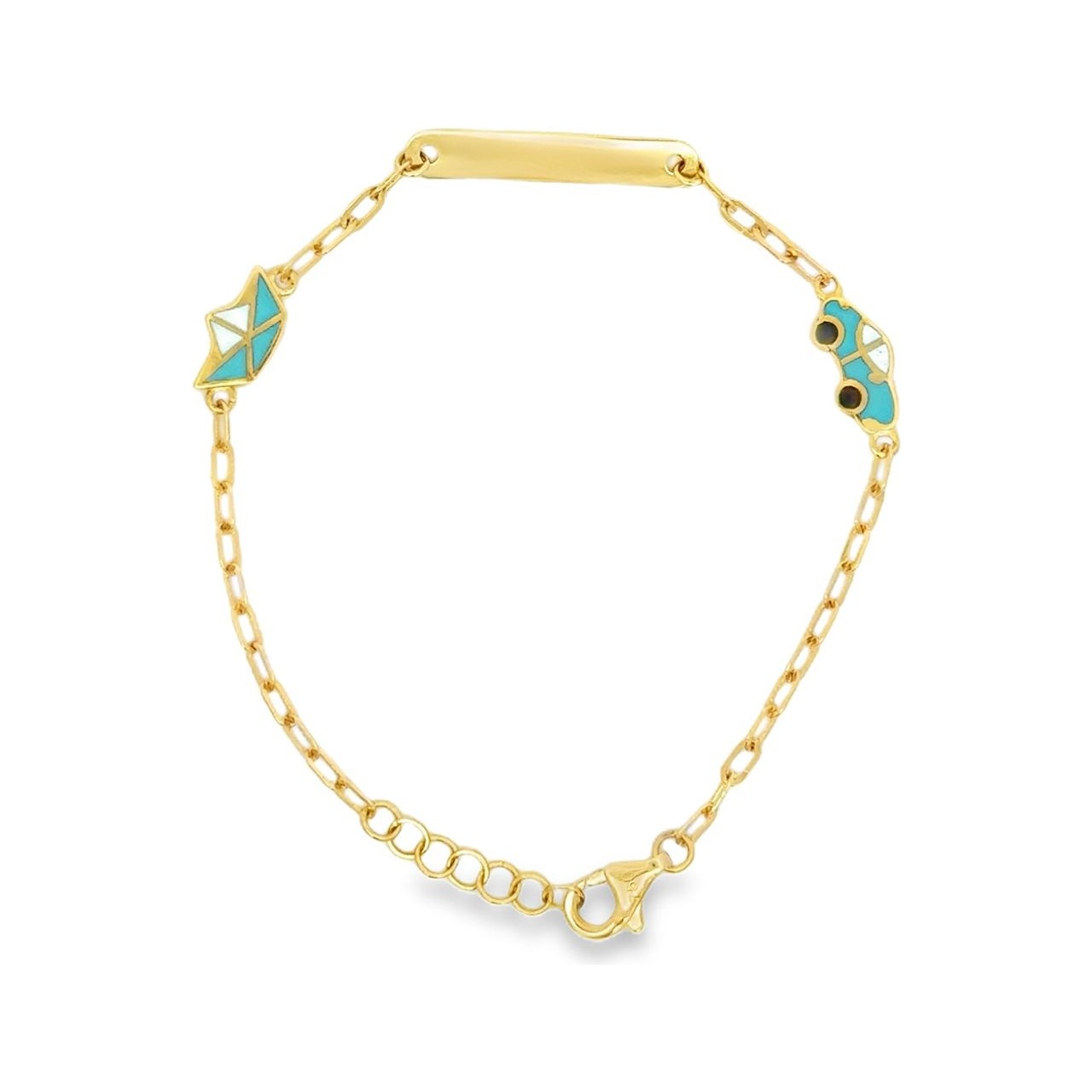 18K Yellow Gold Baby ID Bracelet with Enamel Car and Boat Charms