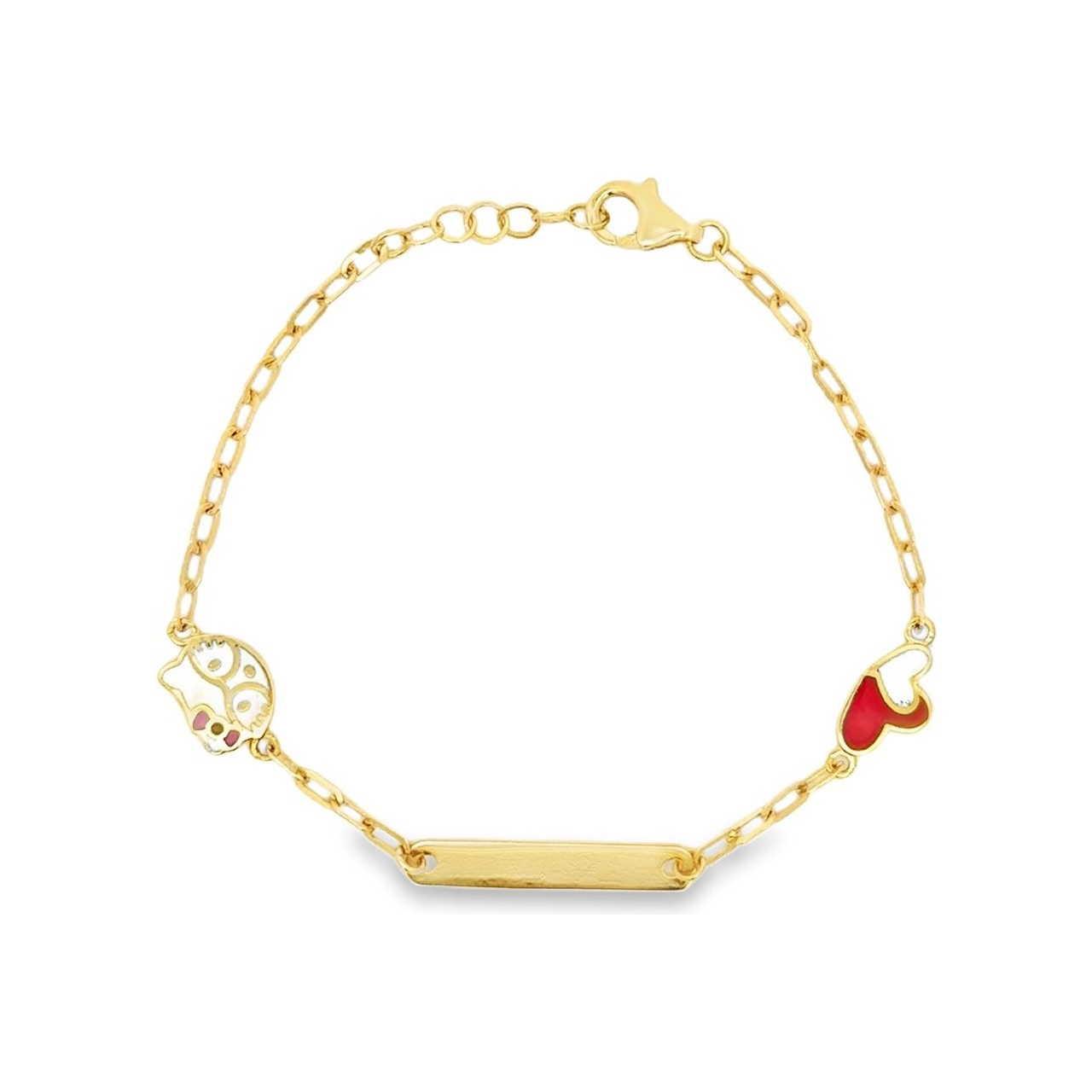 18K Yellow Gold Baby ID Bracelet with Enamel Hello Kitty and Winged Heart Charms