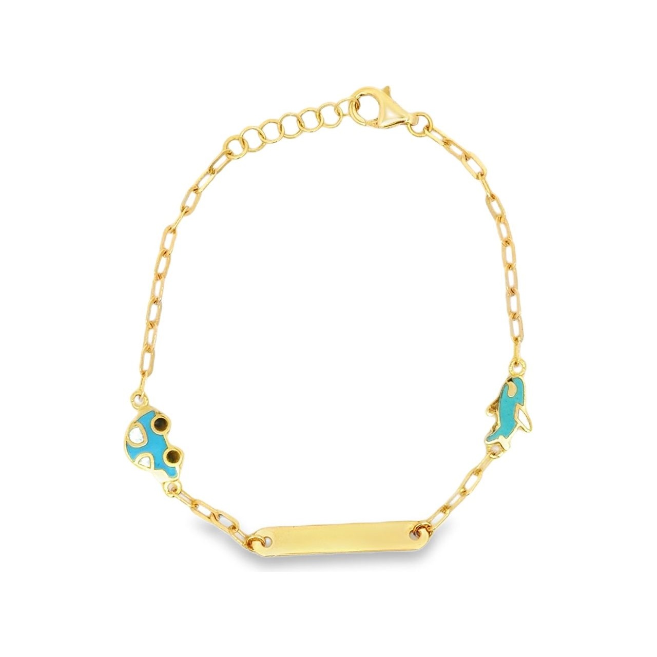 18K Yellow Gold Baby ID Bracelet with Enamel Airplane and Car Charms