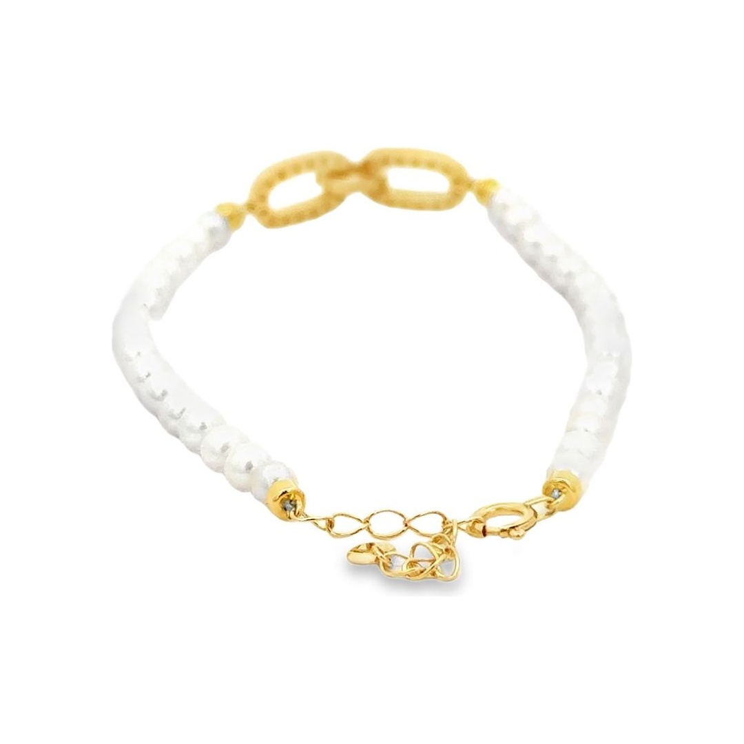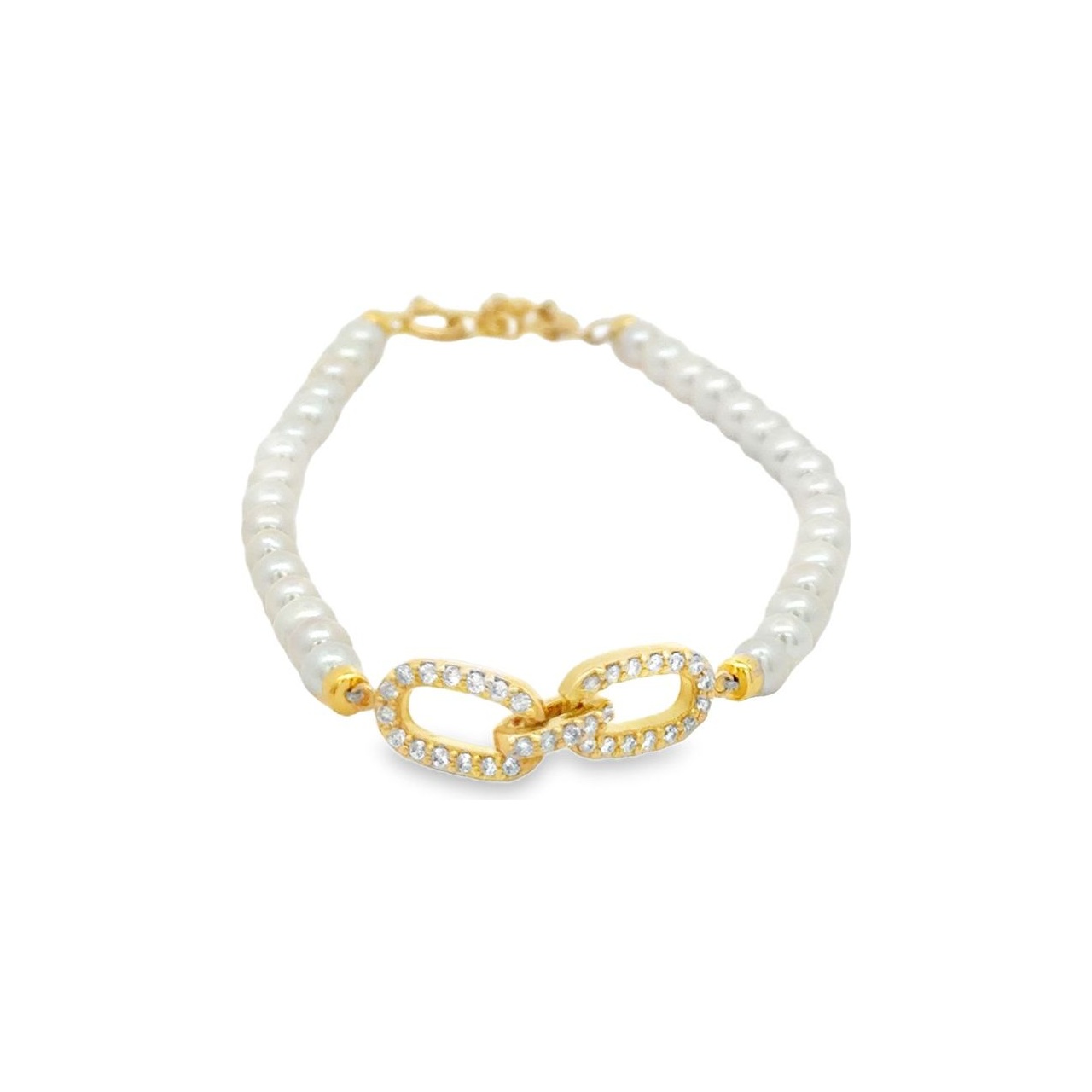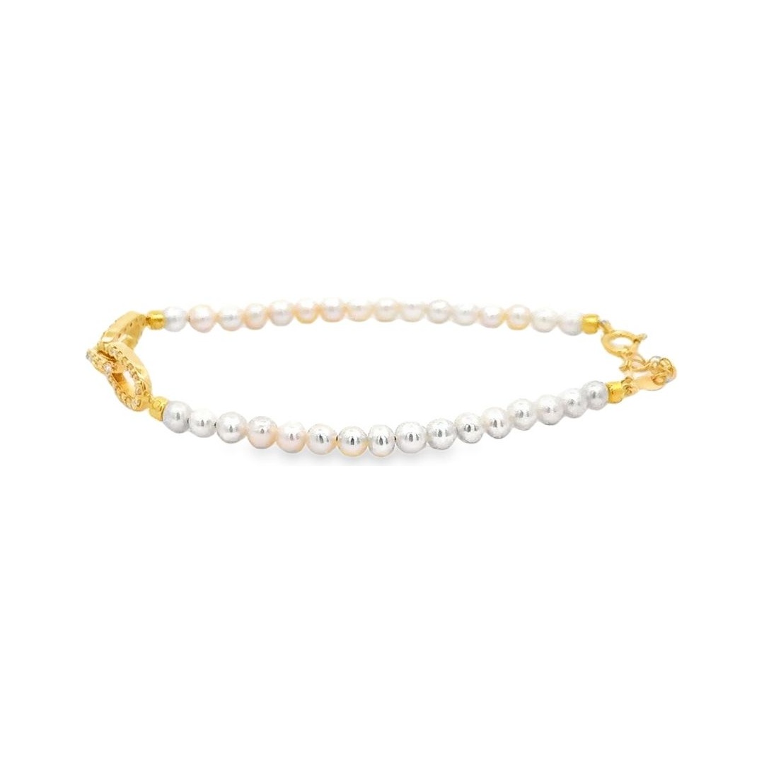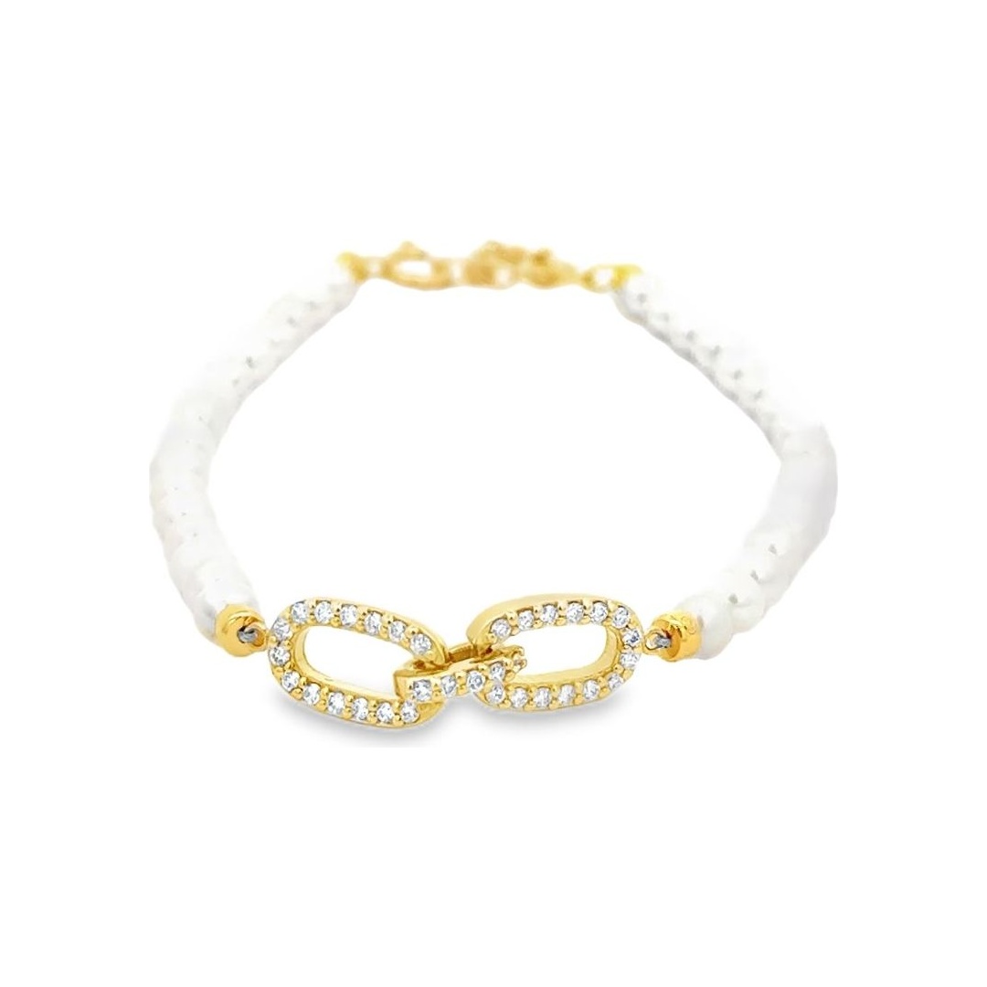Fresh Water Pearl & Natural Diamond Link Bracelet – 18K Gold