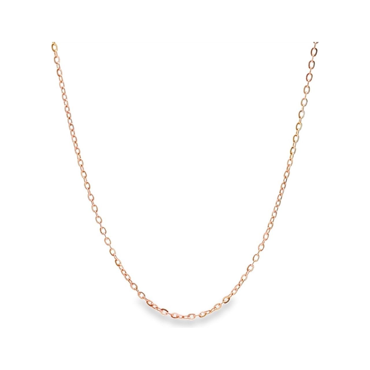 Delicate and feminine, this 18K rose gold chain features fine round links that radiate warmth and elegance. Perfect for dainty pendants or layered with other pieces for a soft romantic touch.