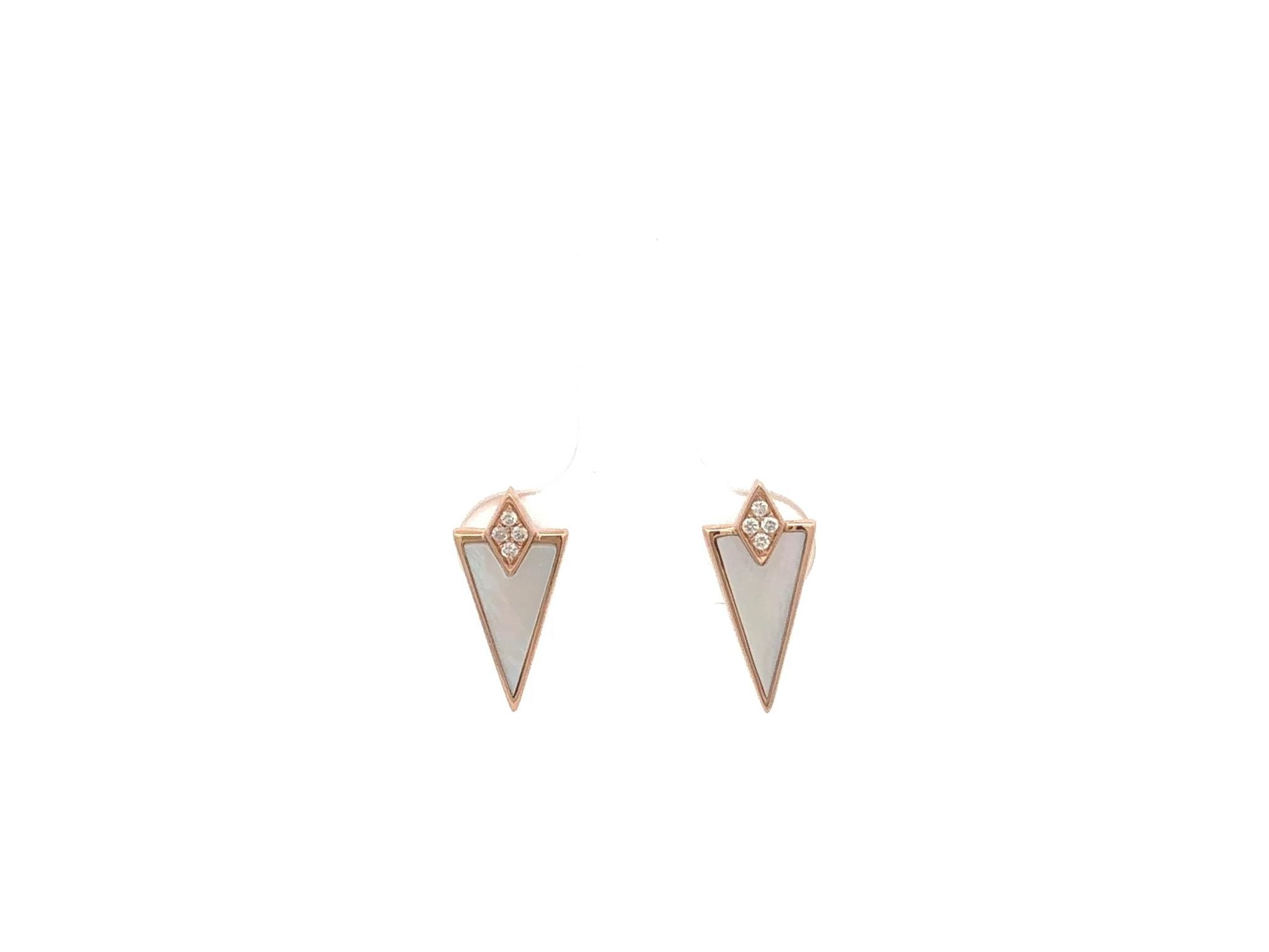 18K Rose Gold Earrings with Mother of Pearl and Natural Diamonds – Triangle Shape