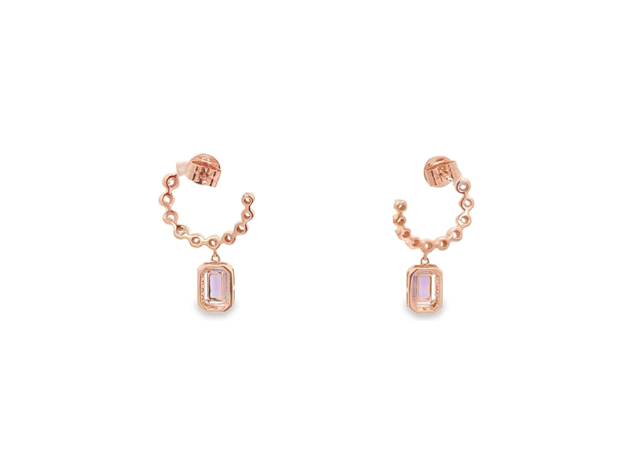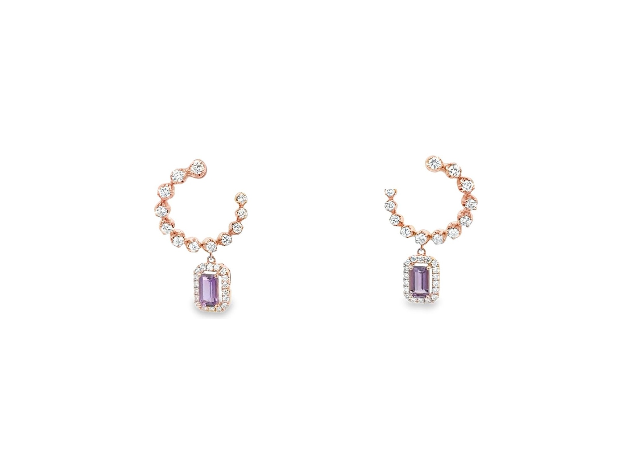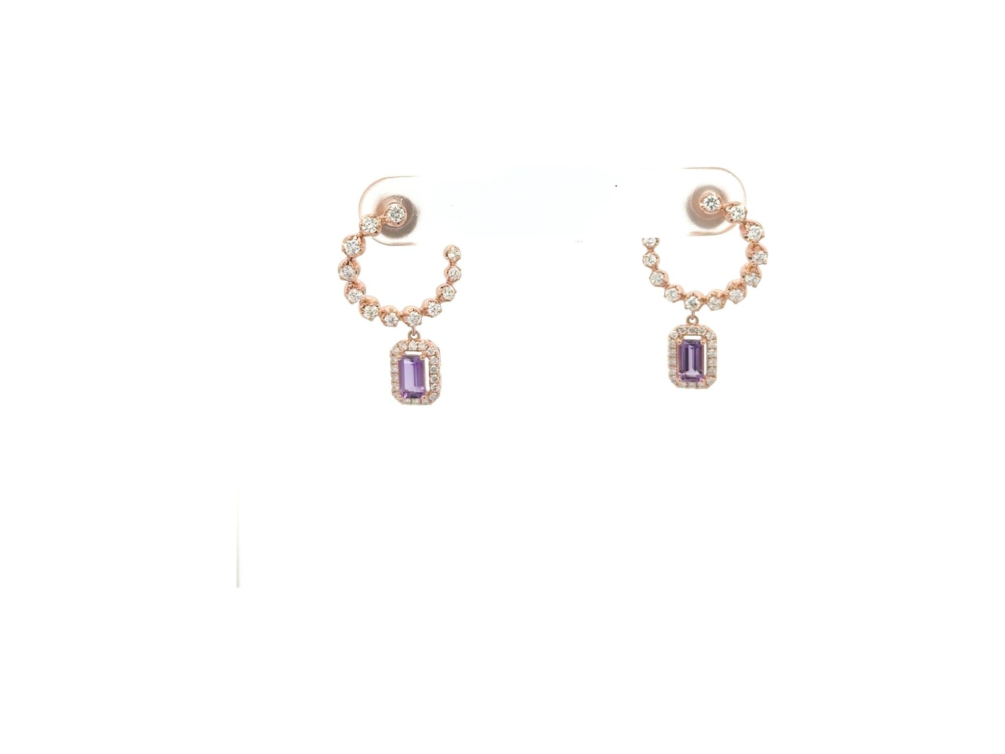 18K Rose Gold Earrings with Natural Diamonds & Amethyst – Dangling Lower Charm
