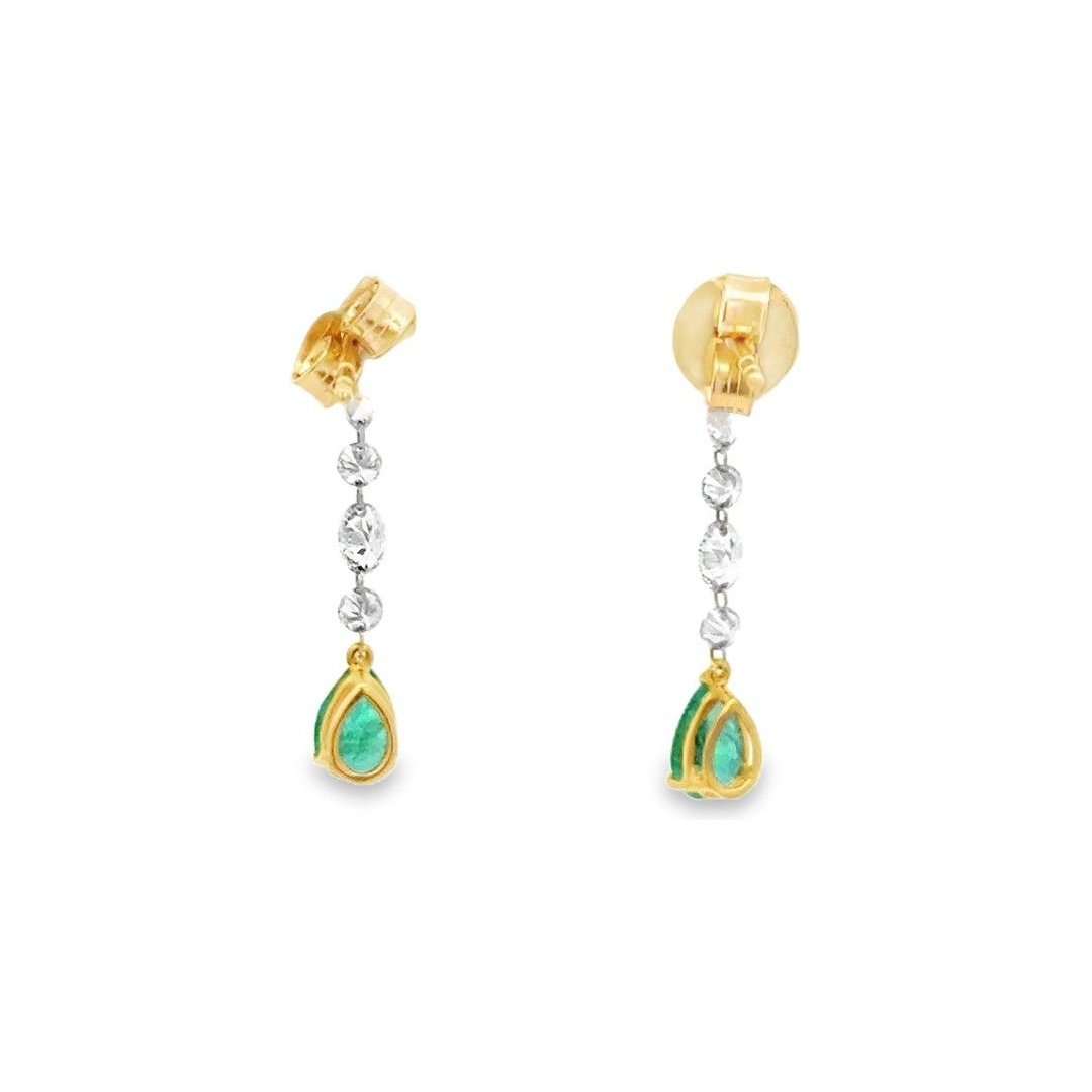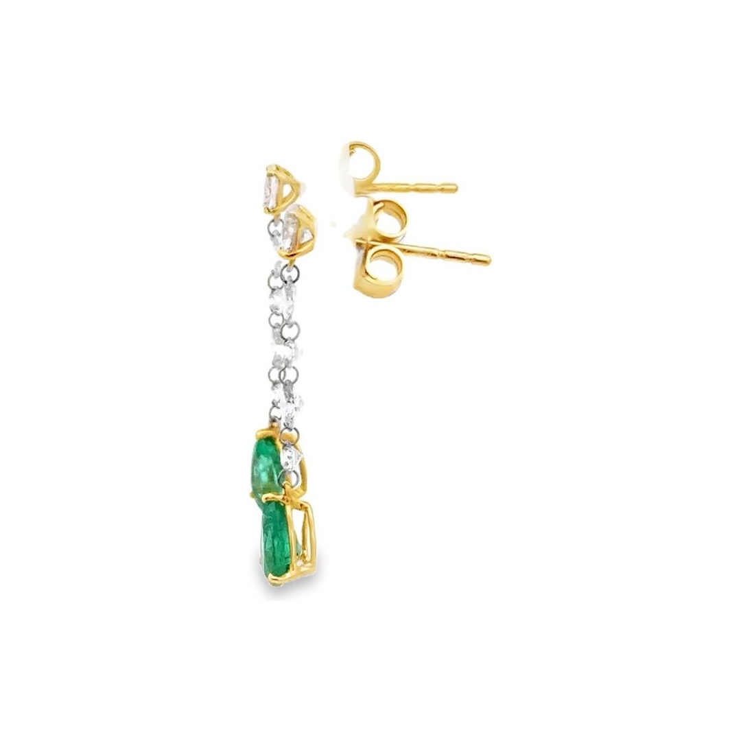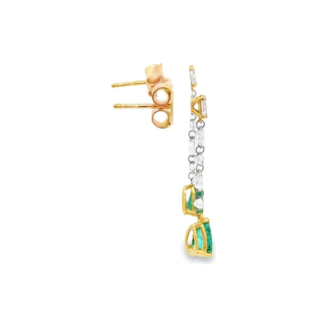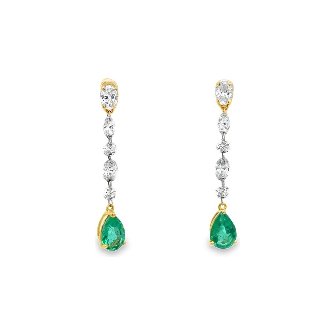 A perfect blend of color and brilliance, these Gandy Jewelry earrings feature pear-cut natural emeralds framed by shimmering natural diamonds, all crafted in 18K yellow gold. A statement of refined luxury for every elegant occasion.