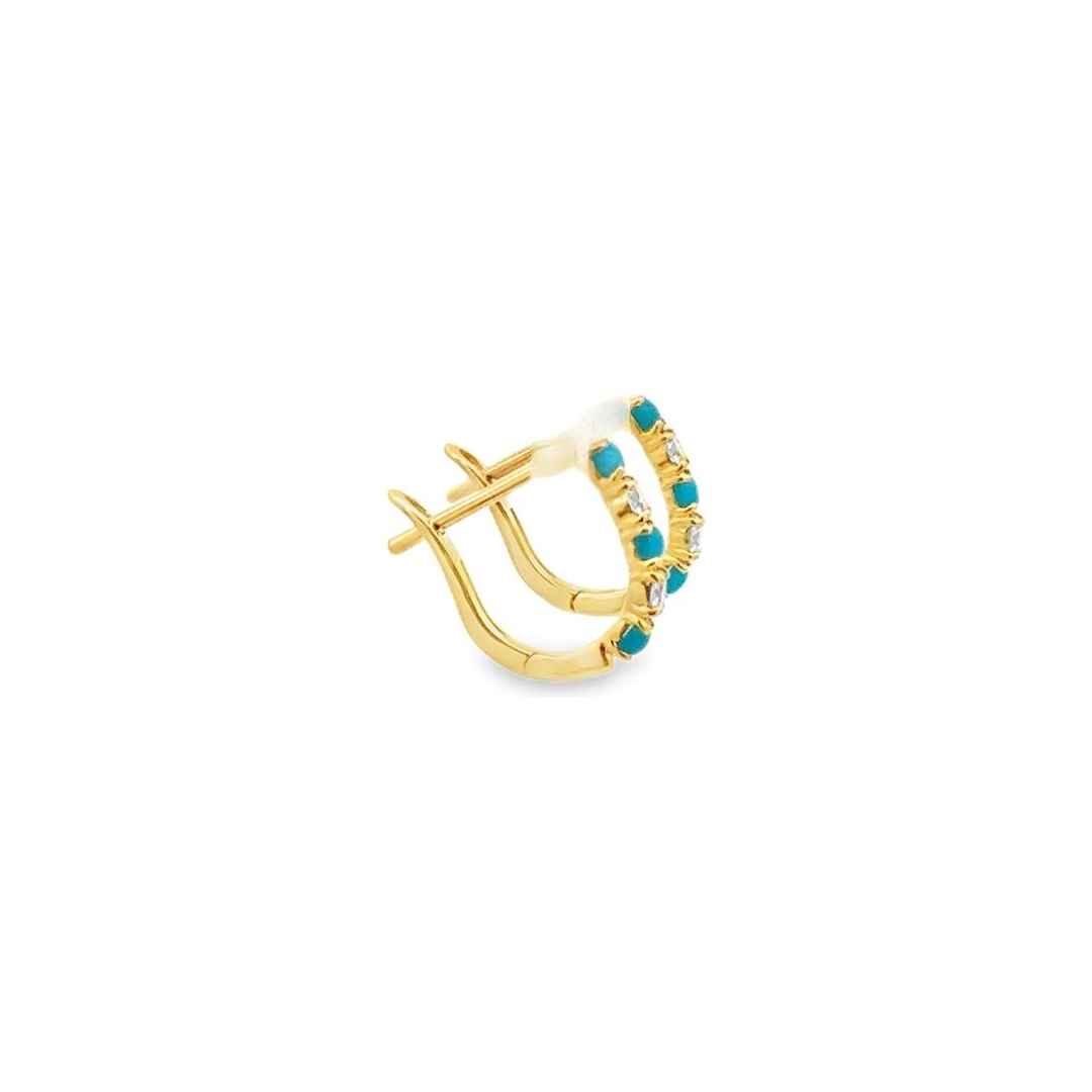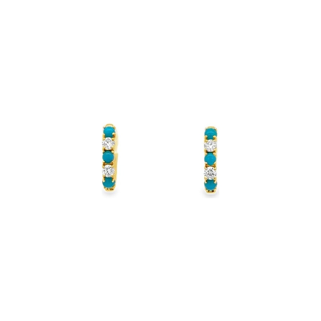 18K Yellow Gold Turquoise & Natural Diamond Hoop Earrings