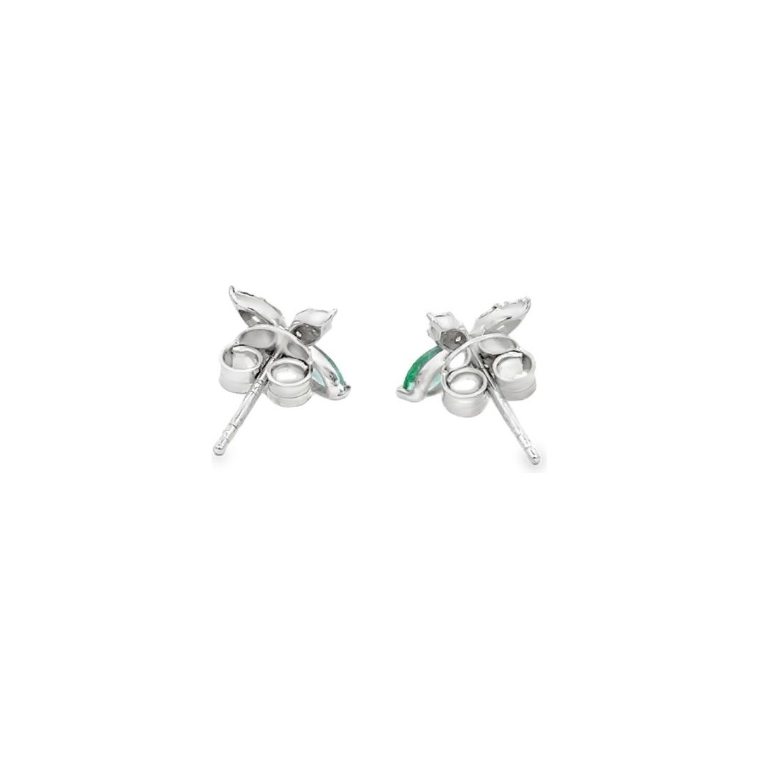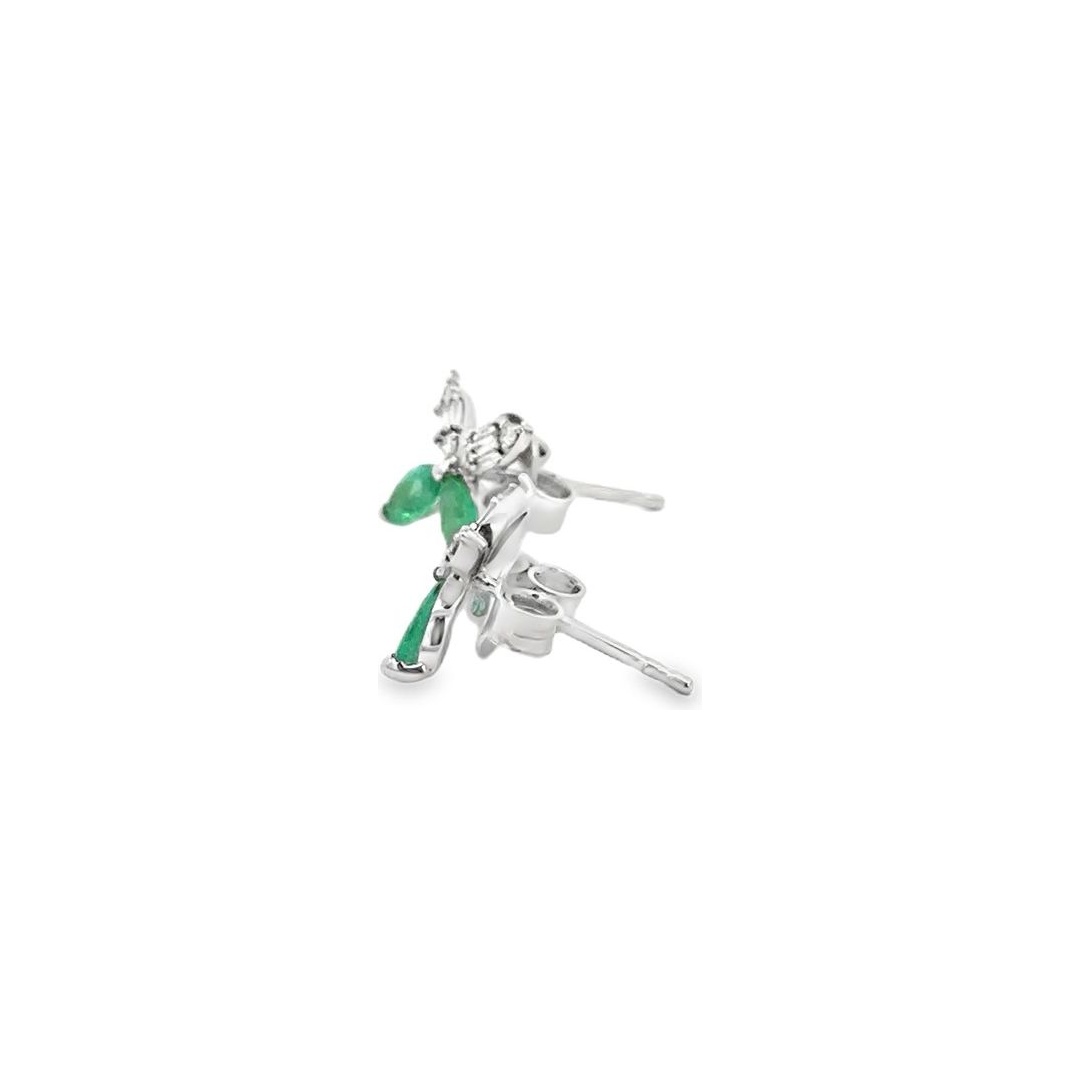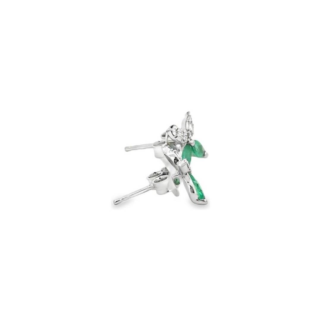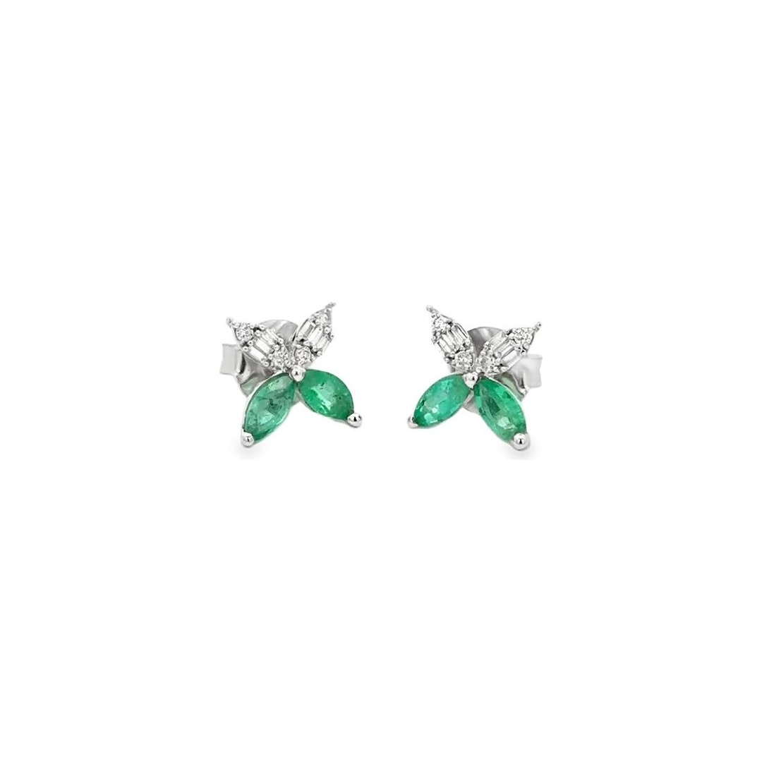 Inspired by nature, these exquisite Gandy Jewelry earrings feature marquise-cut natural emeralds paired with baguette natural diamonds, arranged in a graceful floral design and crafted in 18K white gold. A symbol of renewal and sophistication.