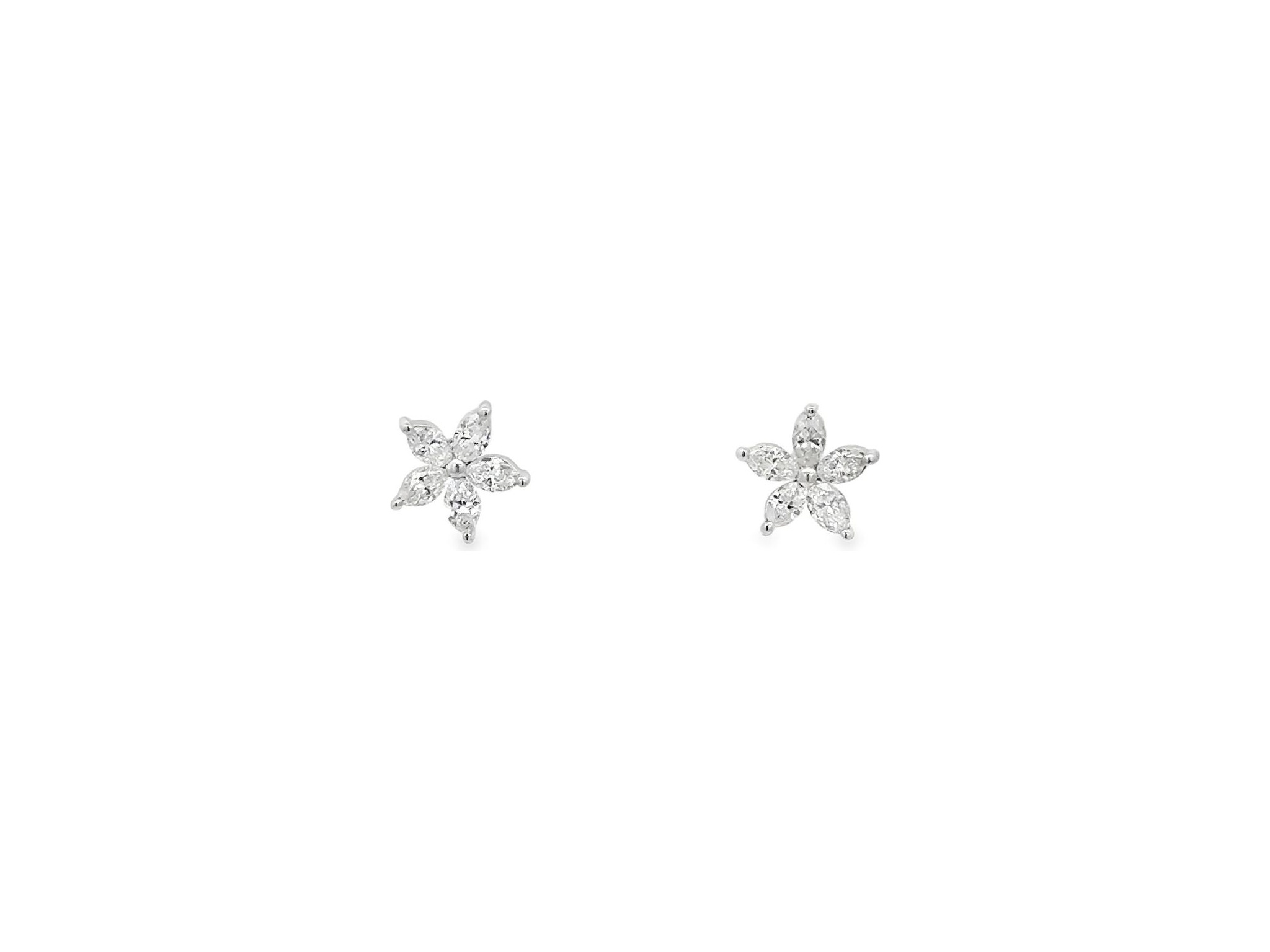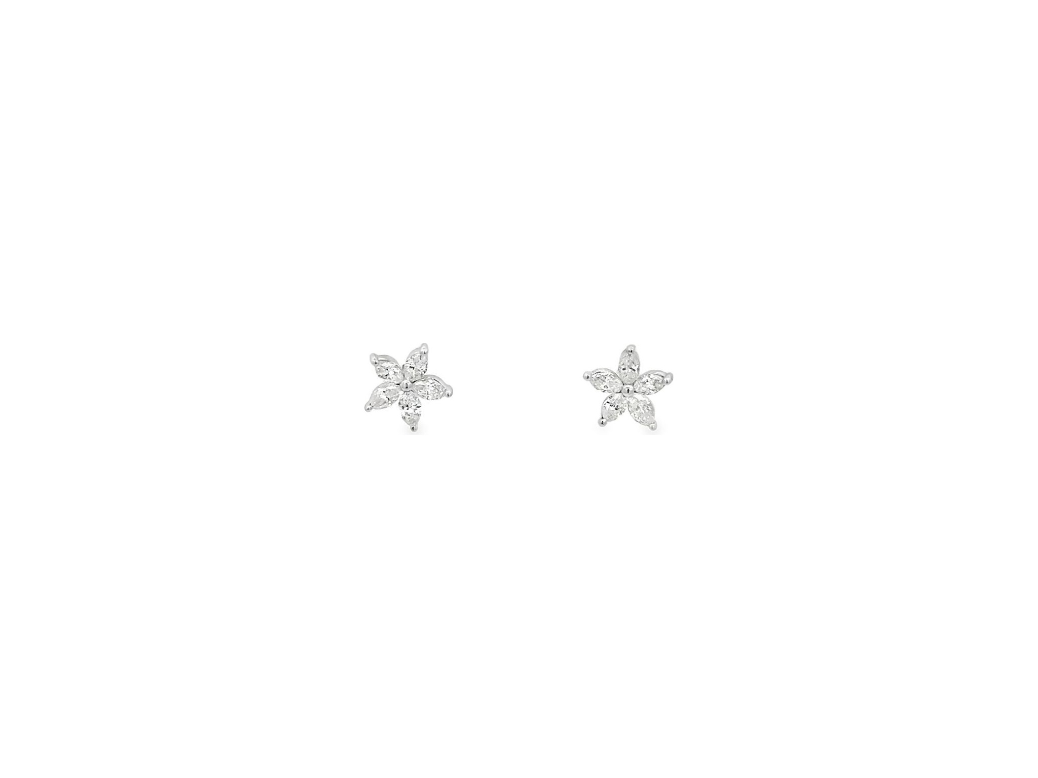 Platinum 900 Floral Stud Earrings with Natural Marquise Diamonds