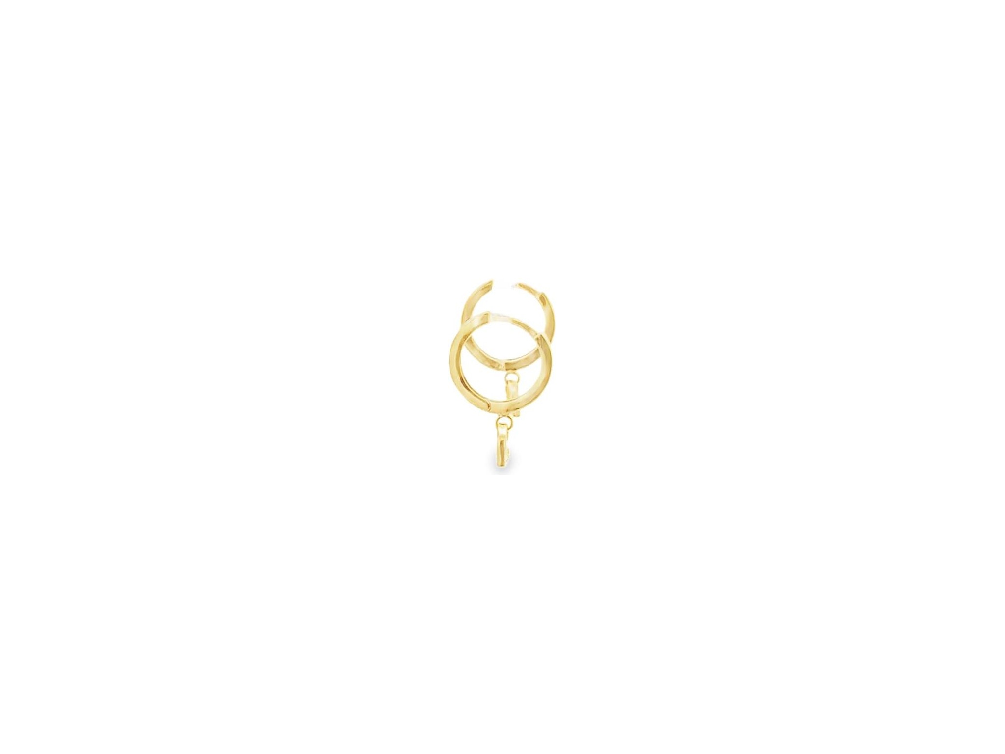 18K Yellow Gold 0.4-Inch Hoop Earrings with Heart LOVE Charms and CZ Stones