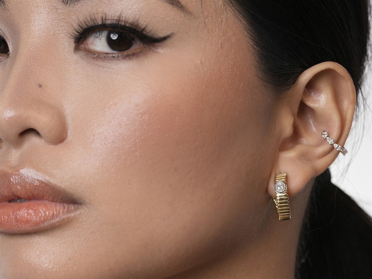 18K White Gold Hinged Hoop Earrings with Natural Pear-Shaped Diamonds