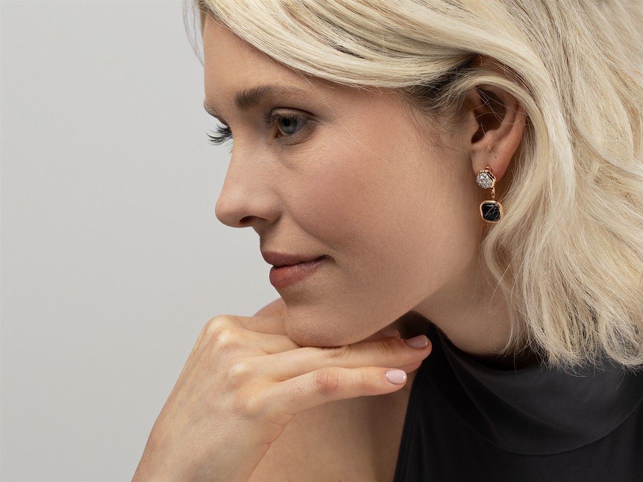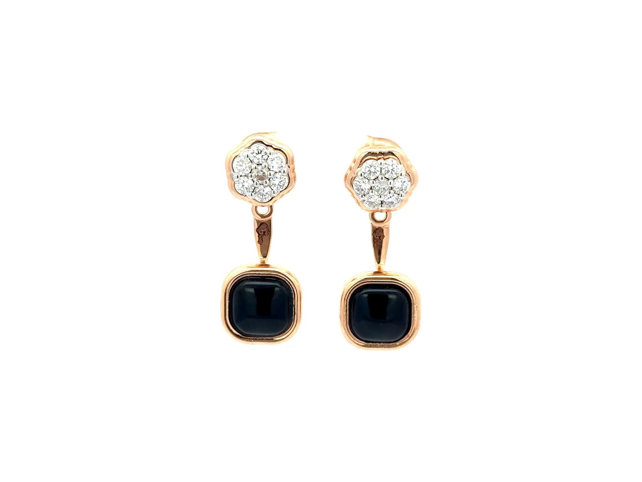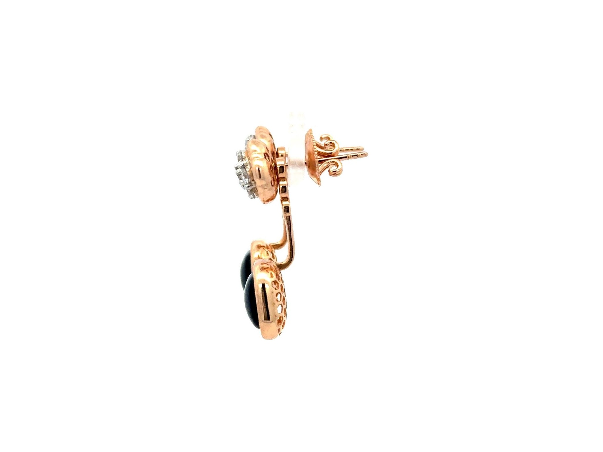 18K Rose Gold Convertible Earrings with Natural Diamonds and Black Onyx Drops