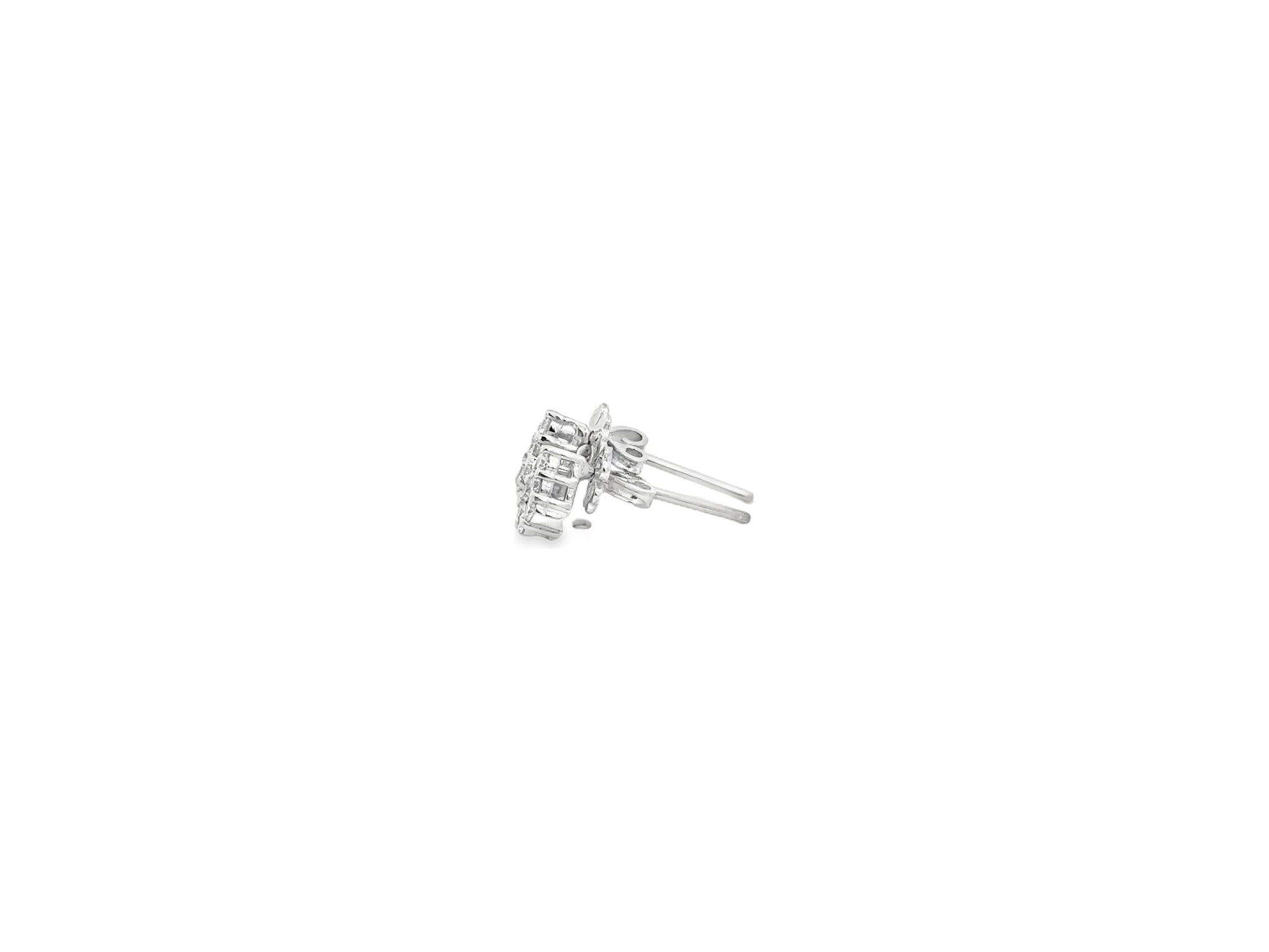 18K White Gold Pear-Shaped Cluster Stud Earrings with Natural Round Diamonds