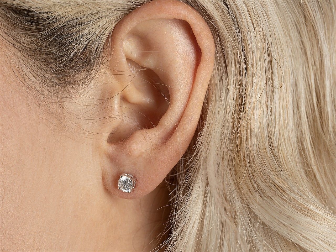 18K White Gold Stud Earrings with Natural Round Diamonds