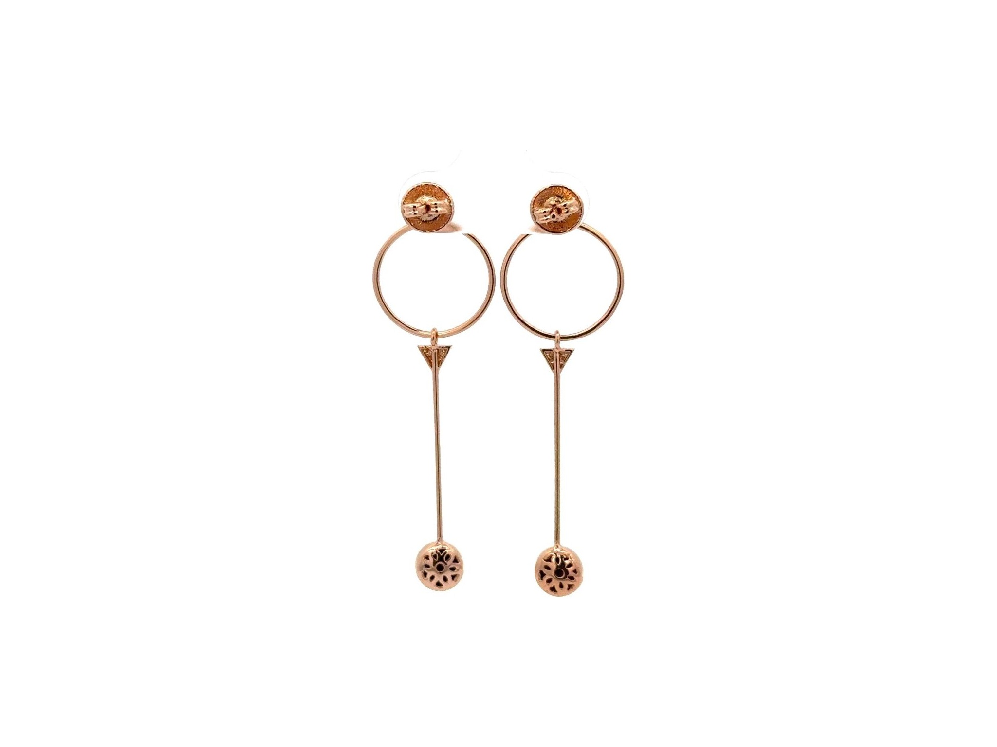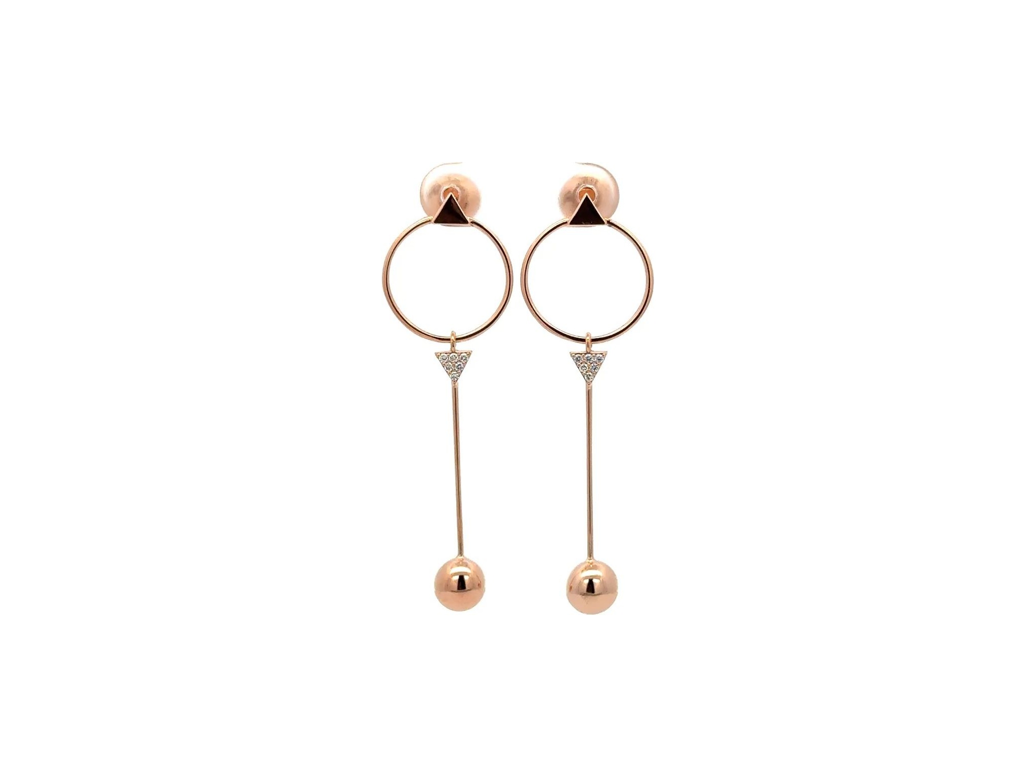 18K Rose Gold Geometric Drop Earrings with Pavé-Set Natural Diamonds and Polished Spheres