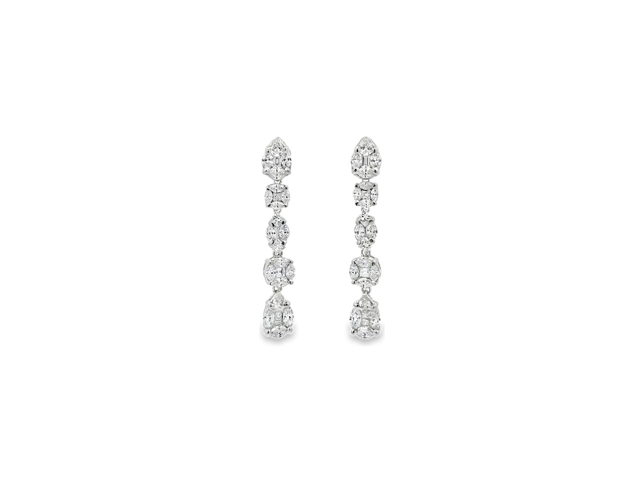 18K White Gold Drop Earrings with Natural Marquise, Pear-shaped and Princess-cut Diamonds