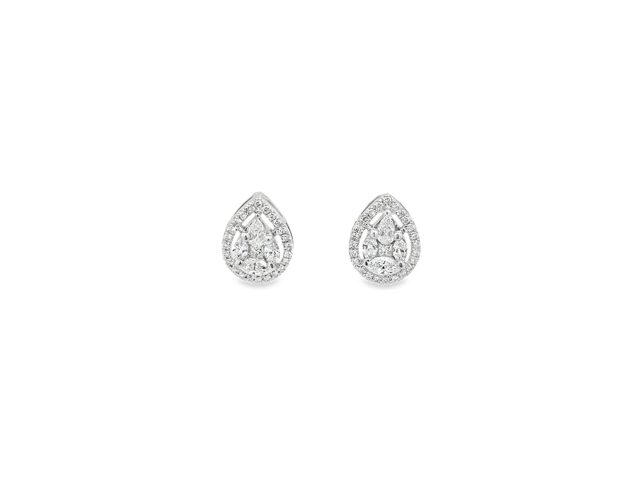 18K White Gold Teardrop Stud Earrings with Natural Marquise, Princess-cut, Pear-shaped and Round Diamonds