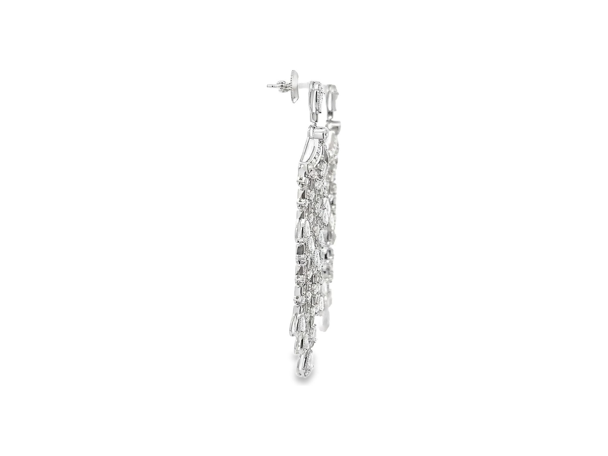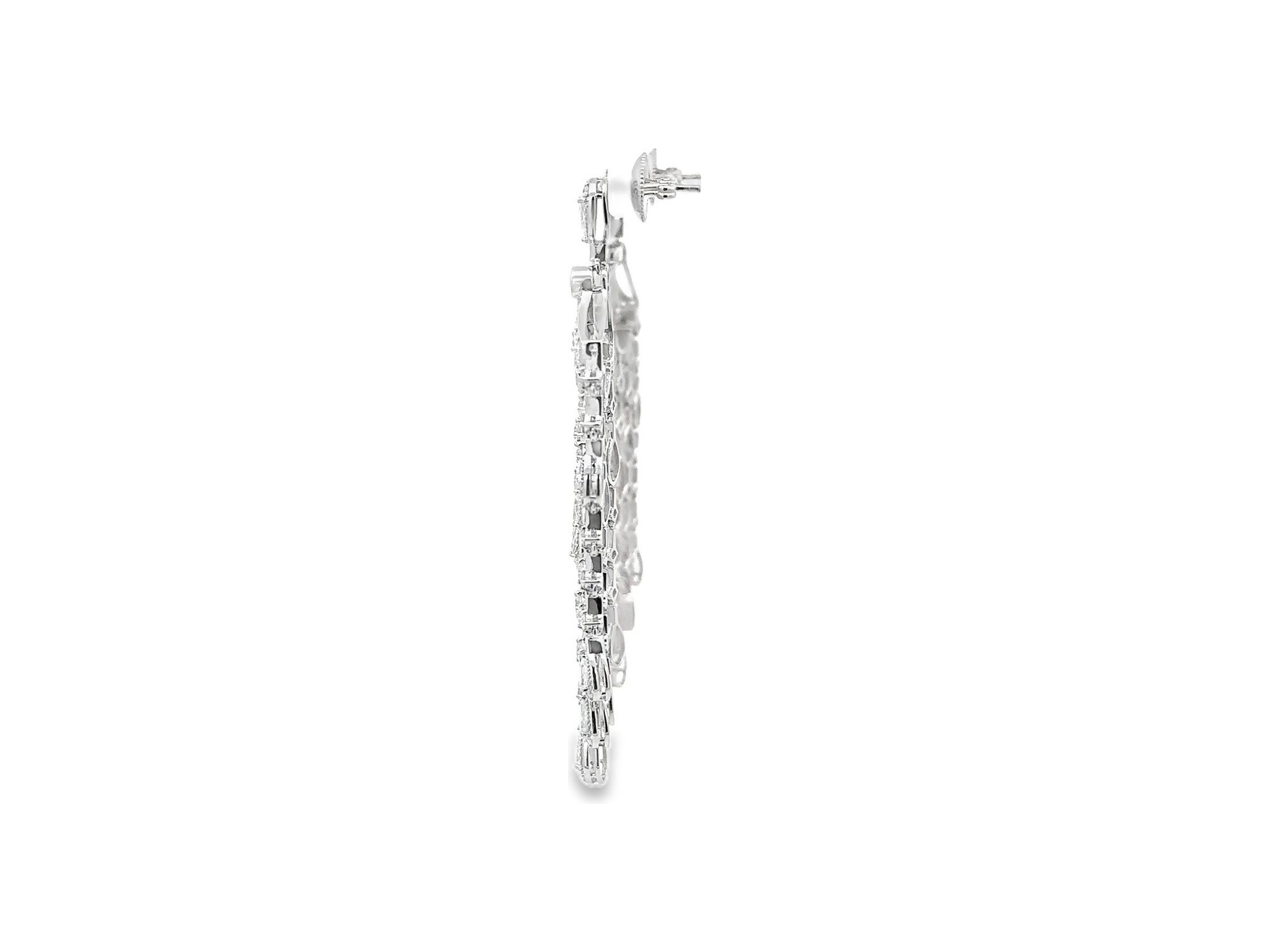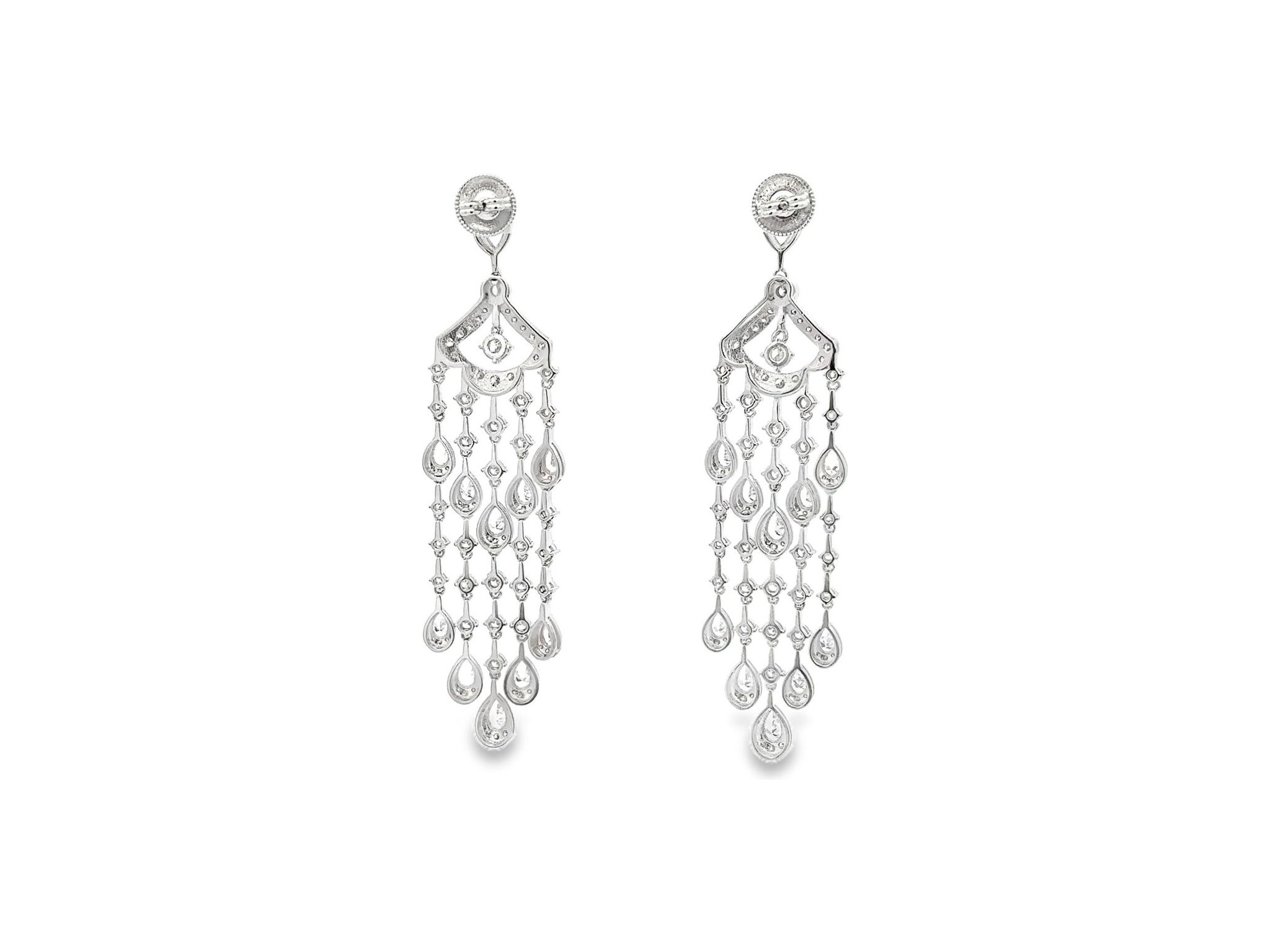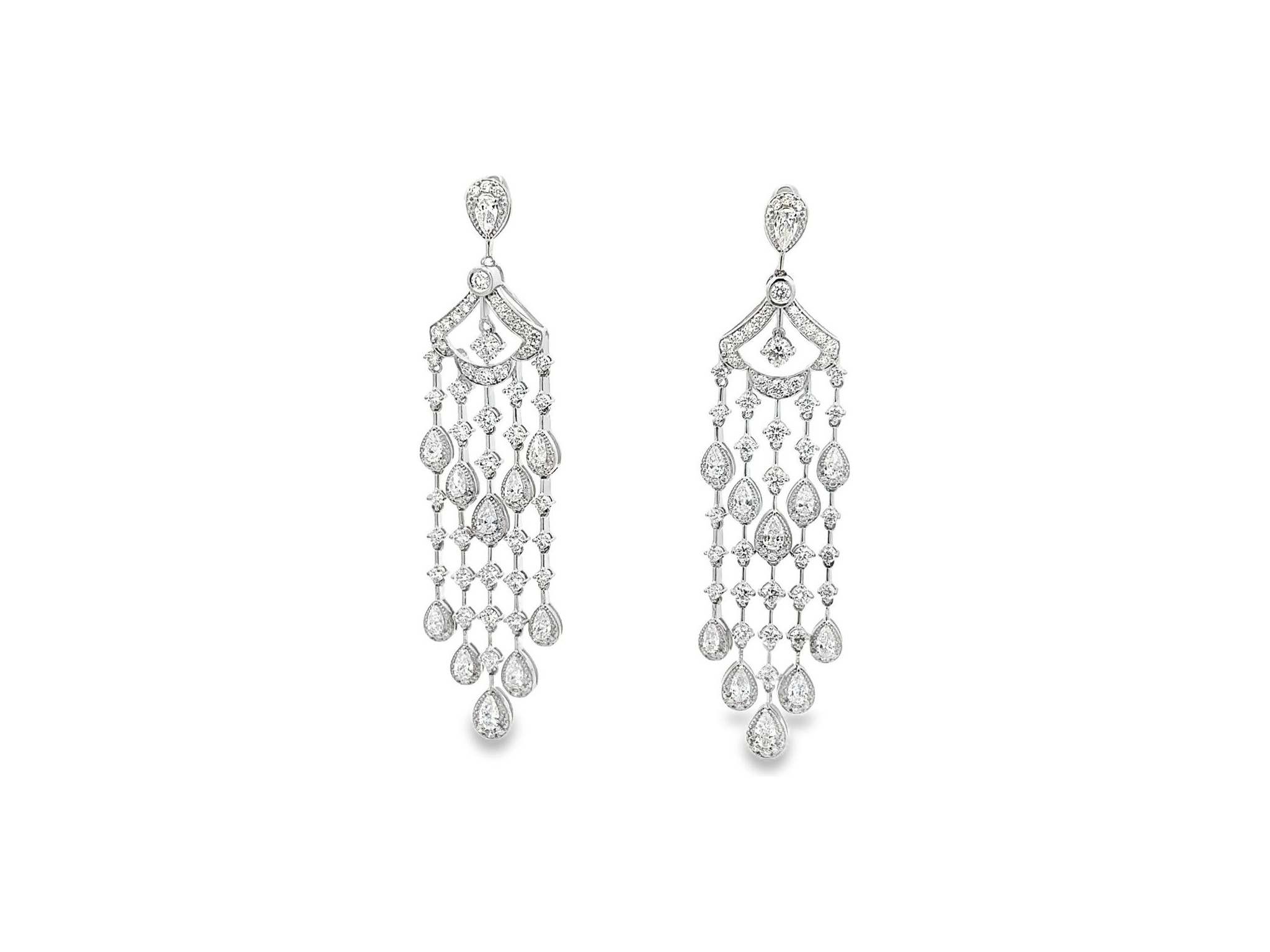 18K White Gold Natural Diamond Chandelier Earrings with Pear and Round Cuts