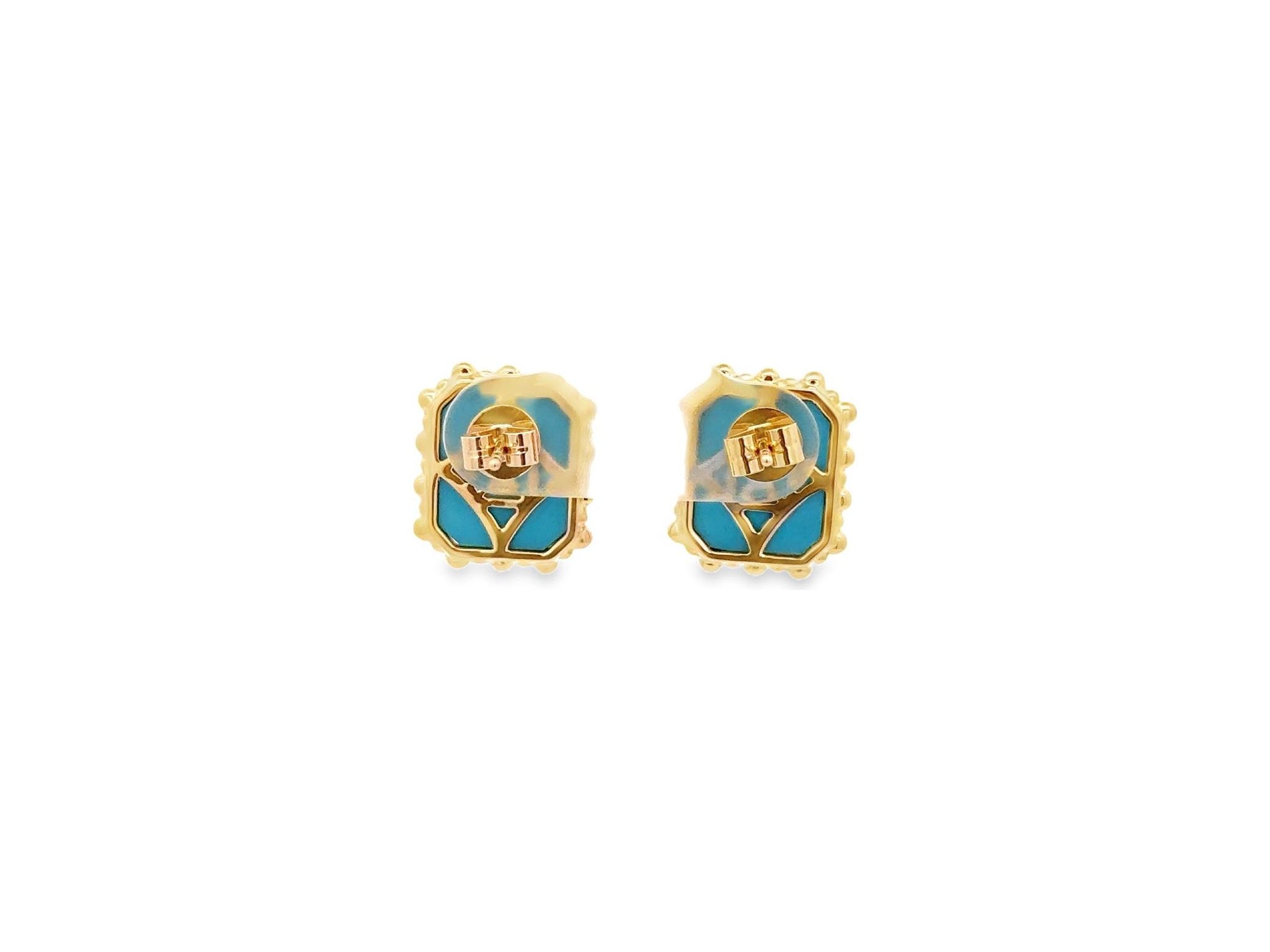 18K Yellow Gold Earrings with Synthetic Turquoise and Natural Diamonds