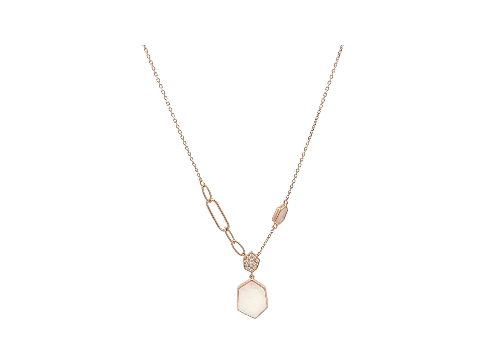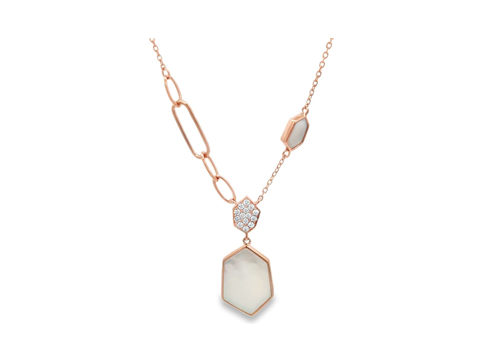 18K Rose Gold Necklace with Mother of Pearl & Natural Diamonds