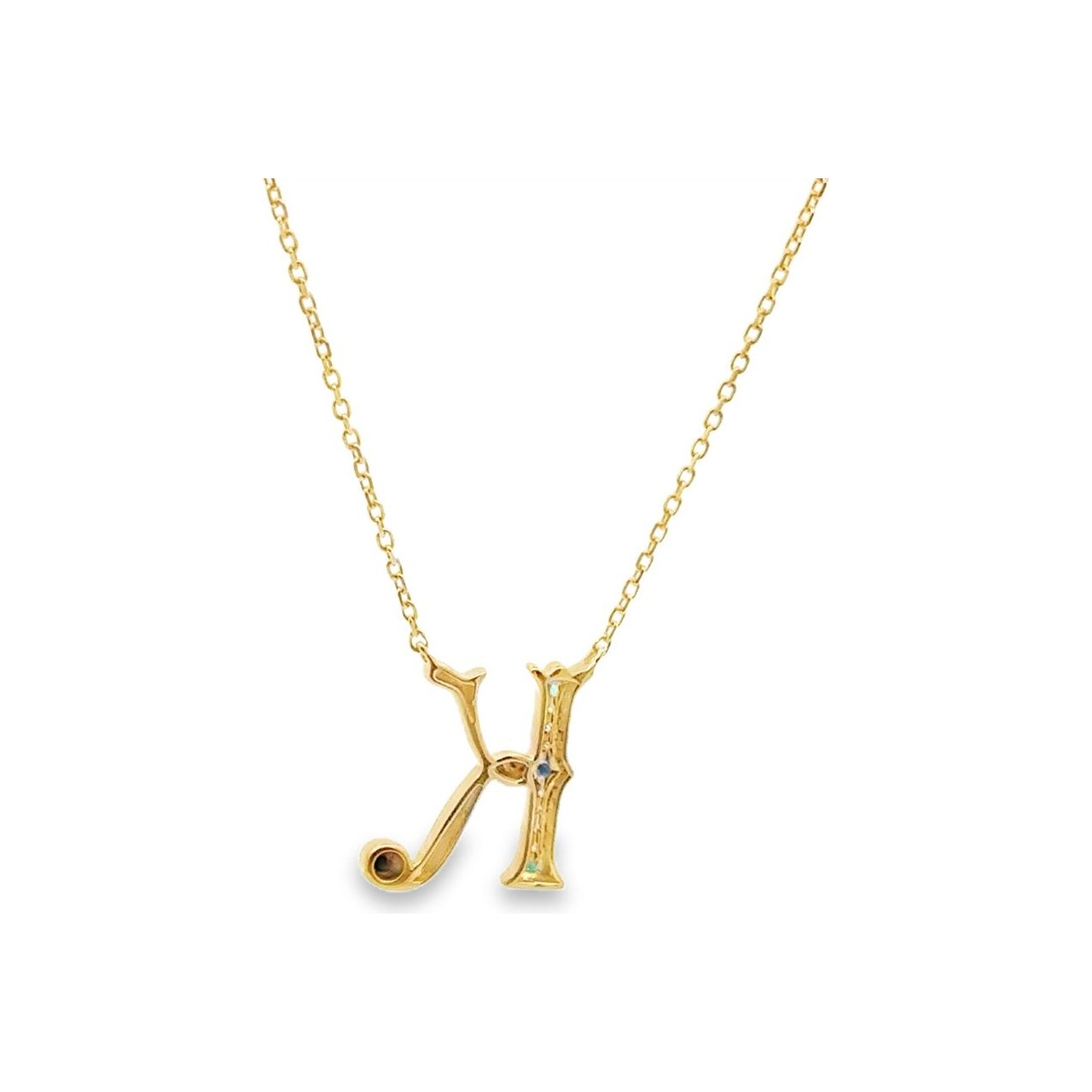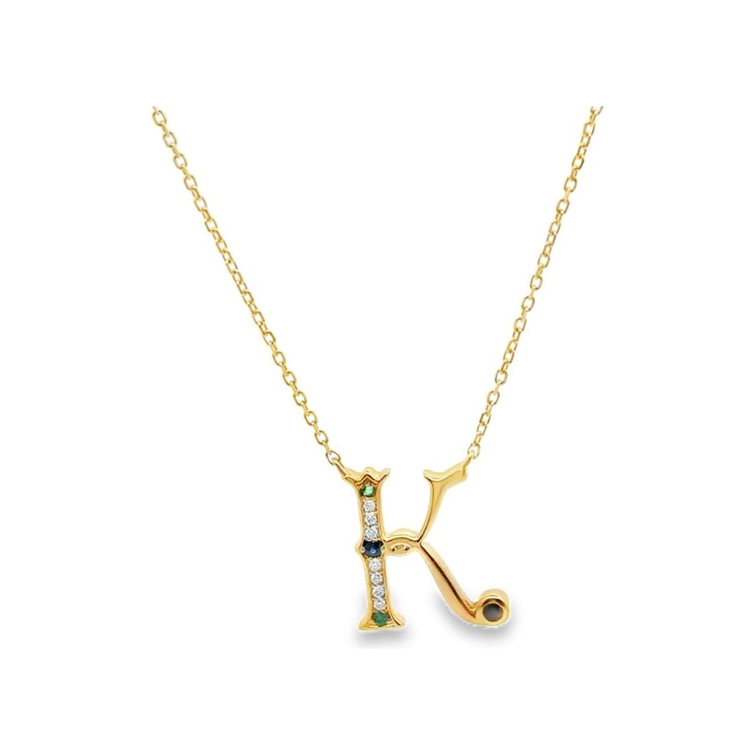 18K Yellow Gold “K” Initial Natural Diamond & Gemstone Necklace