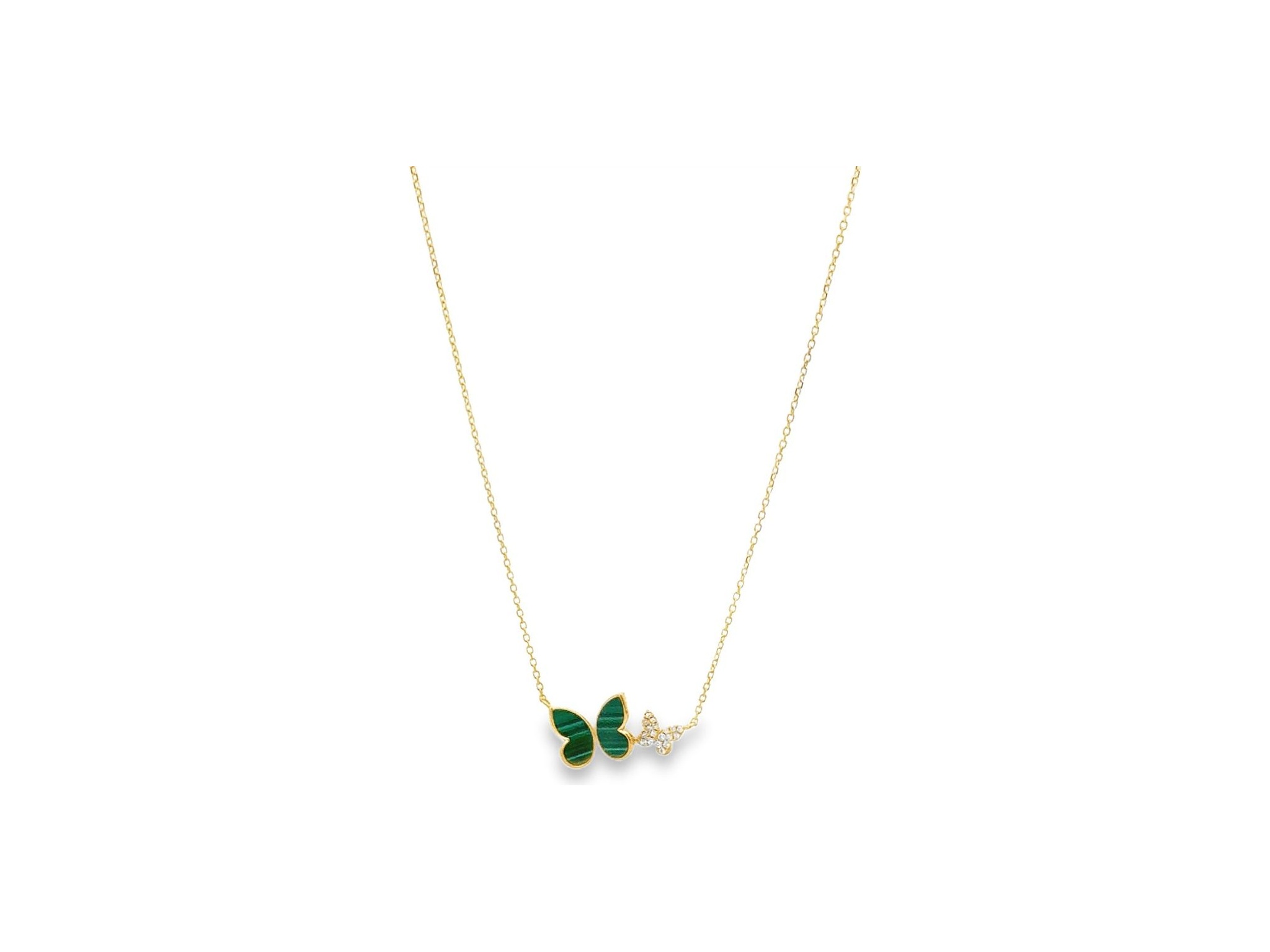 18K Yellow Gold Butterfly Necklace with Malachite and Natural Diamonds