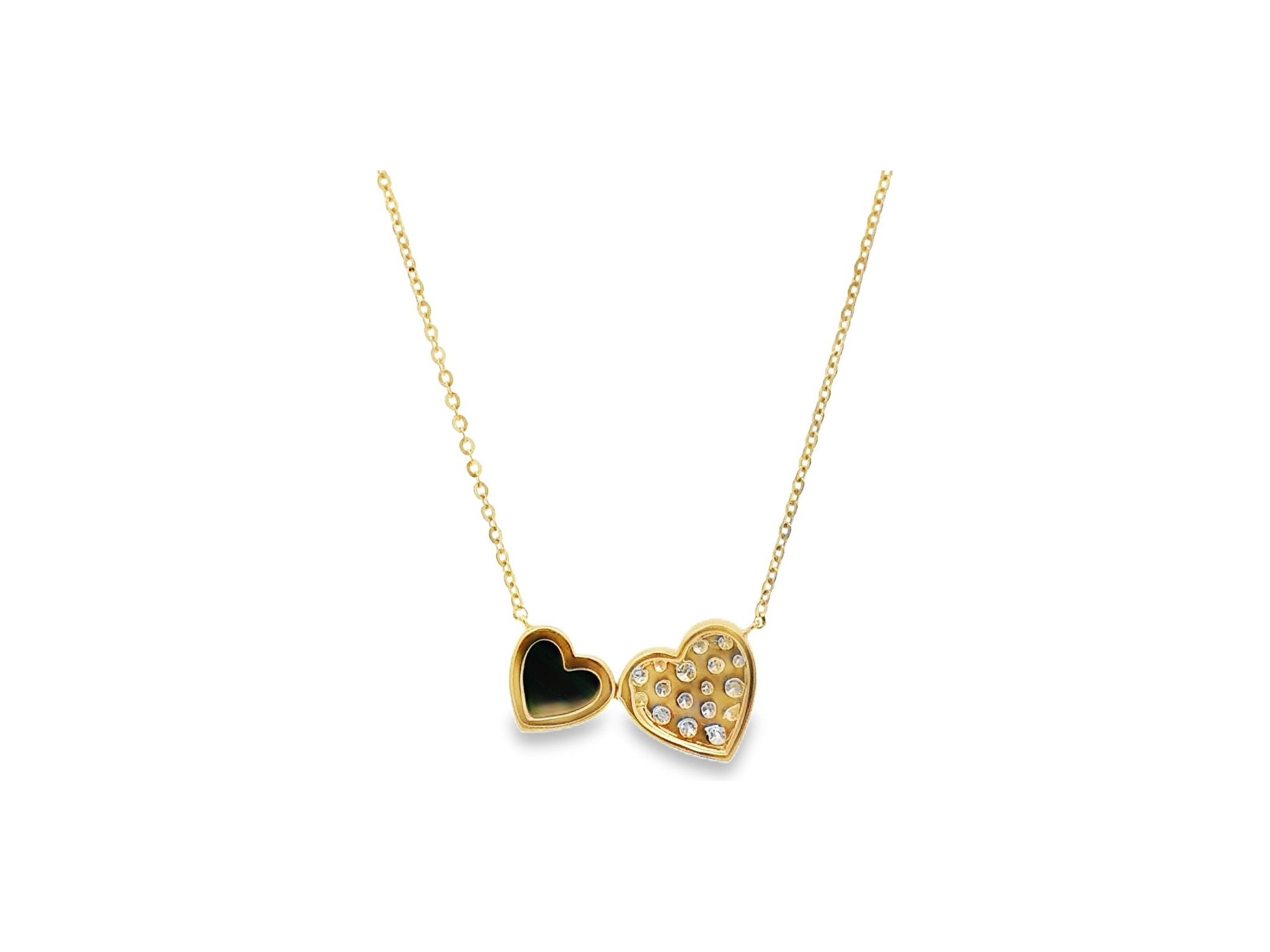18K Yellow Gold Double Heart Necklace with Malachite and Natural Diamonds