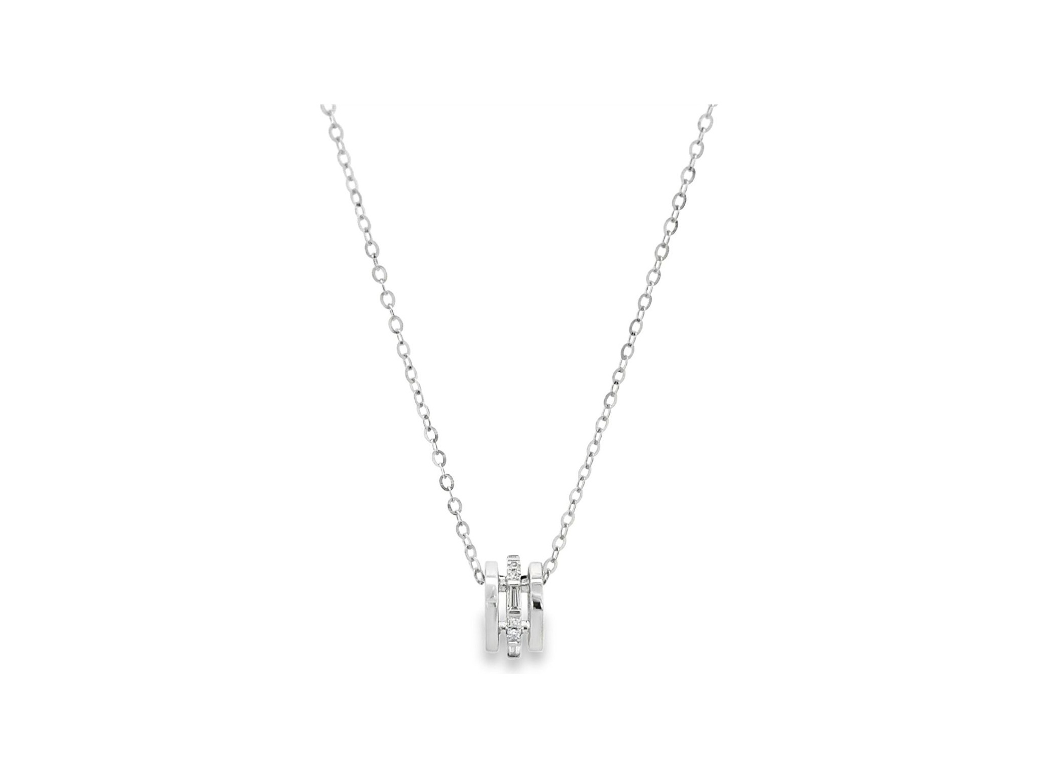 18K White Gold Necklace with Natural Diamonds and Baguette Combination Barrel Pendant