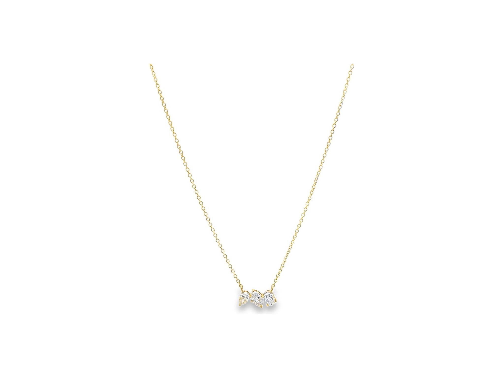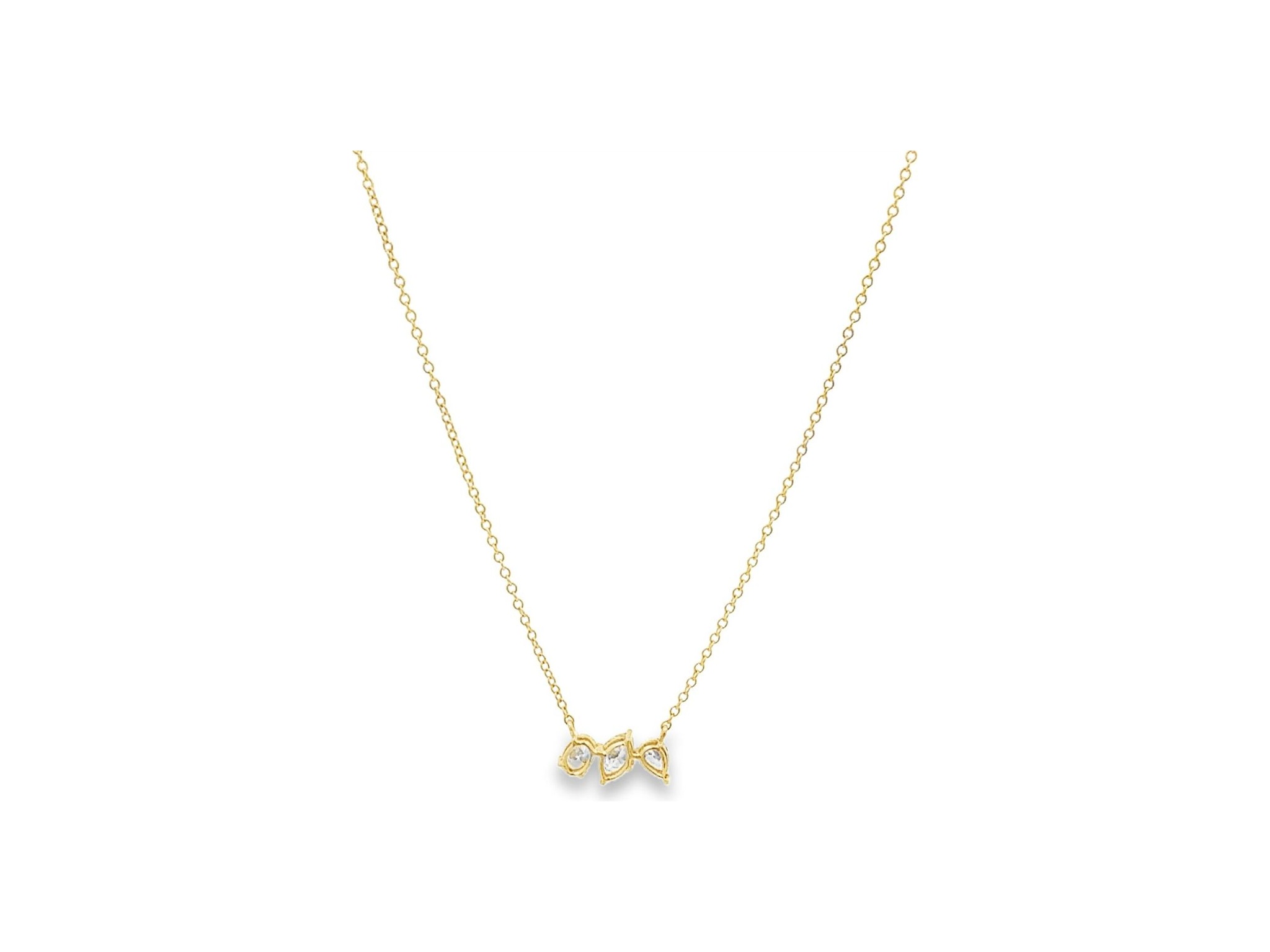 18K Yellow Gold Pendant Necklace with Natural Trio of Pear, Marquise, and Oval-Cut Diamonds