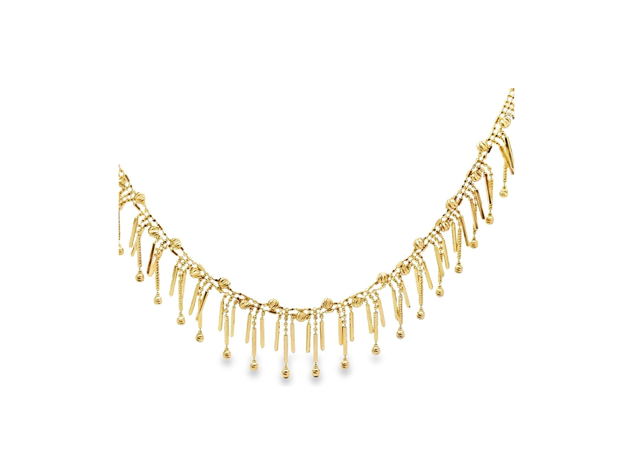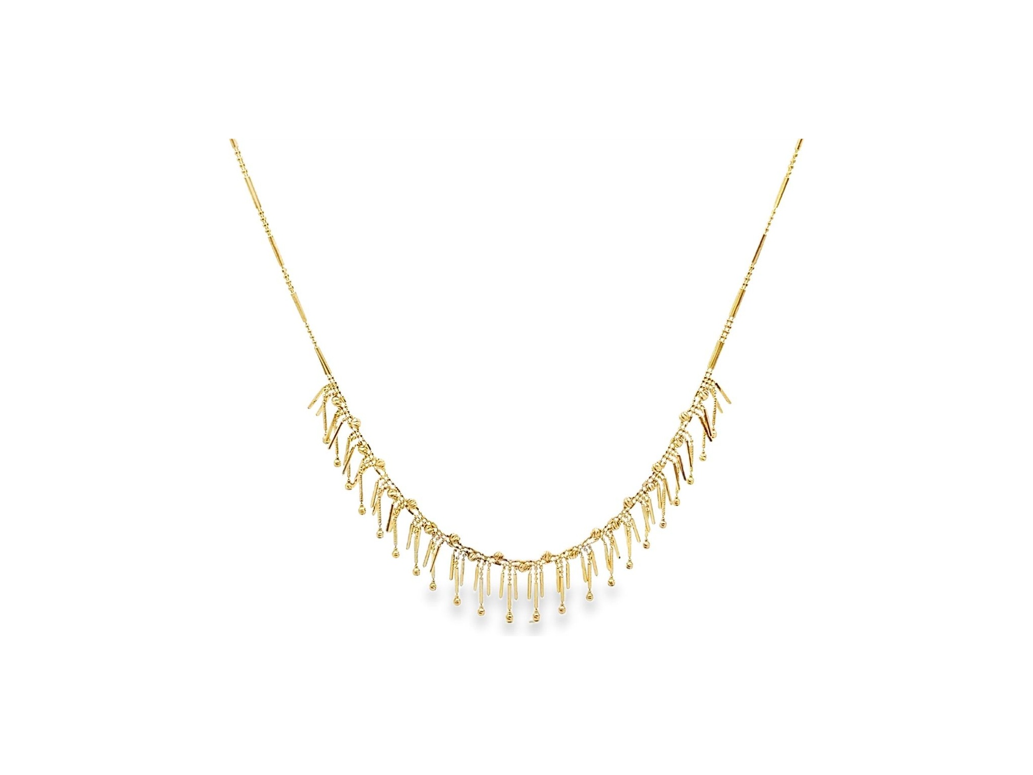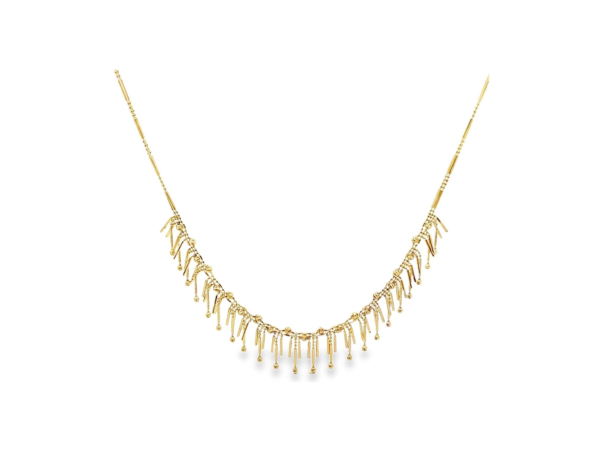 18K Yellow Gold Necklace with Long Textured Fringe and Tube Beads