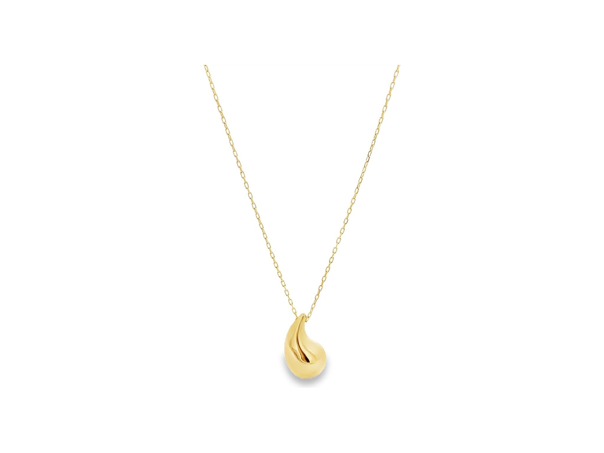 18K Yellow Gold Flame-Shaped Pendant Necklace – Adjustable Chain