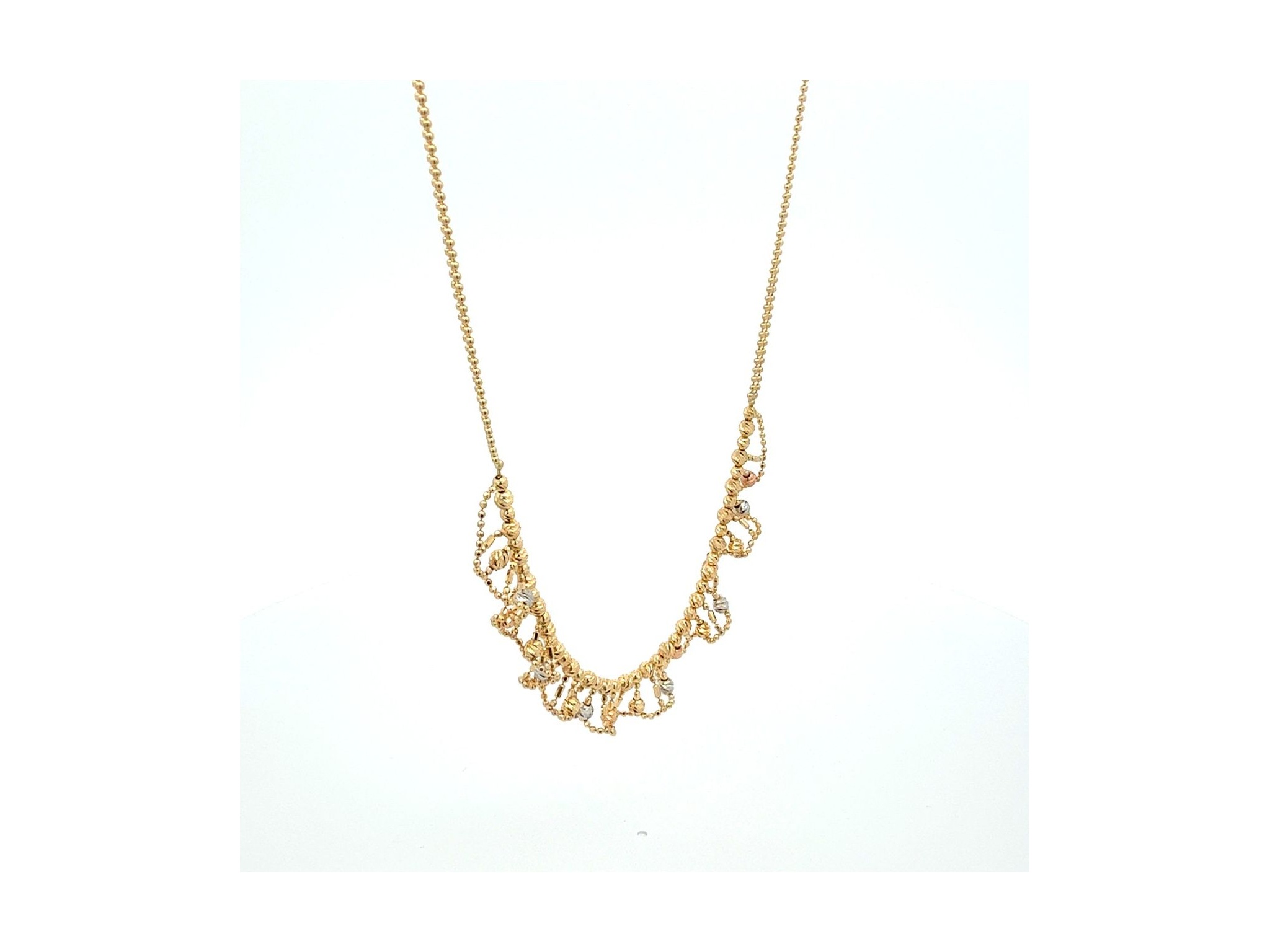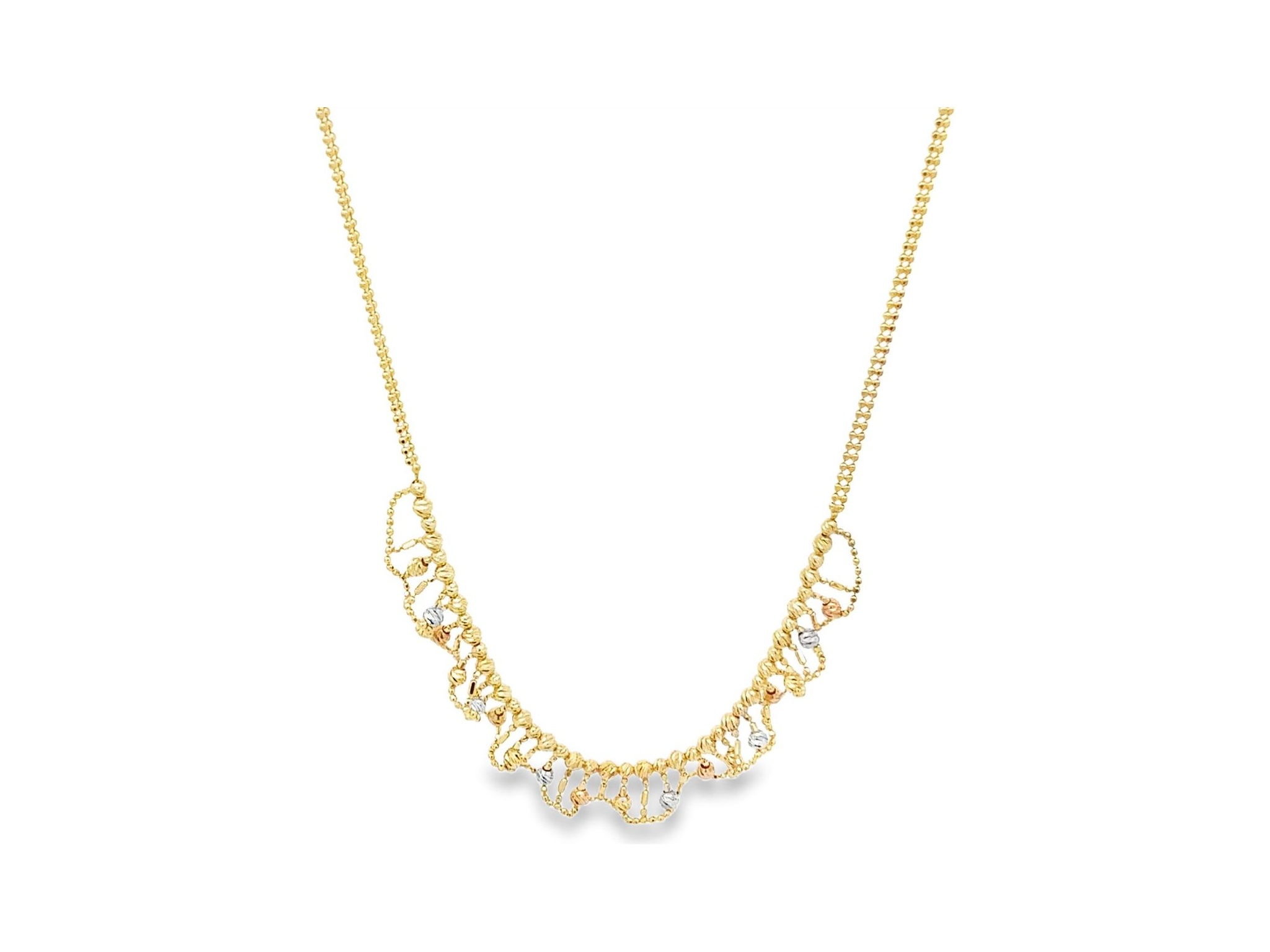 18K Yellow Gold Bib Necklace with Intricate Loop Fringe Design