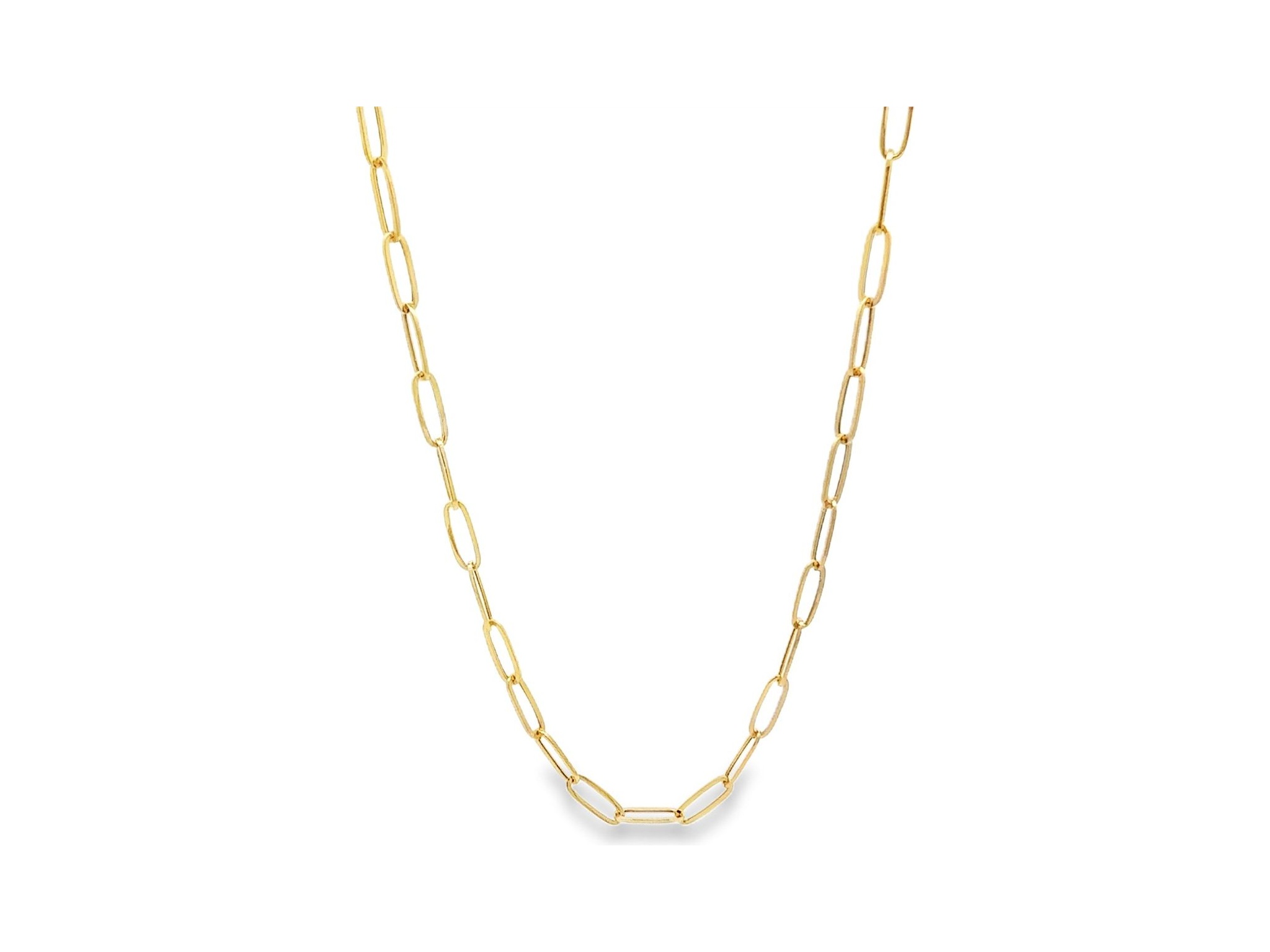 18K Yellow Gold 17.7-Inch Elongated Paperclip Chain Necklace