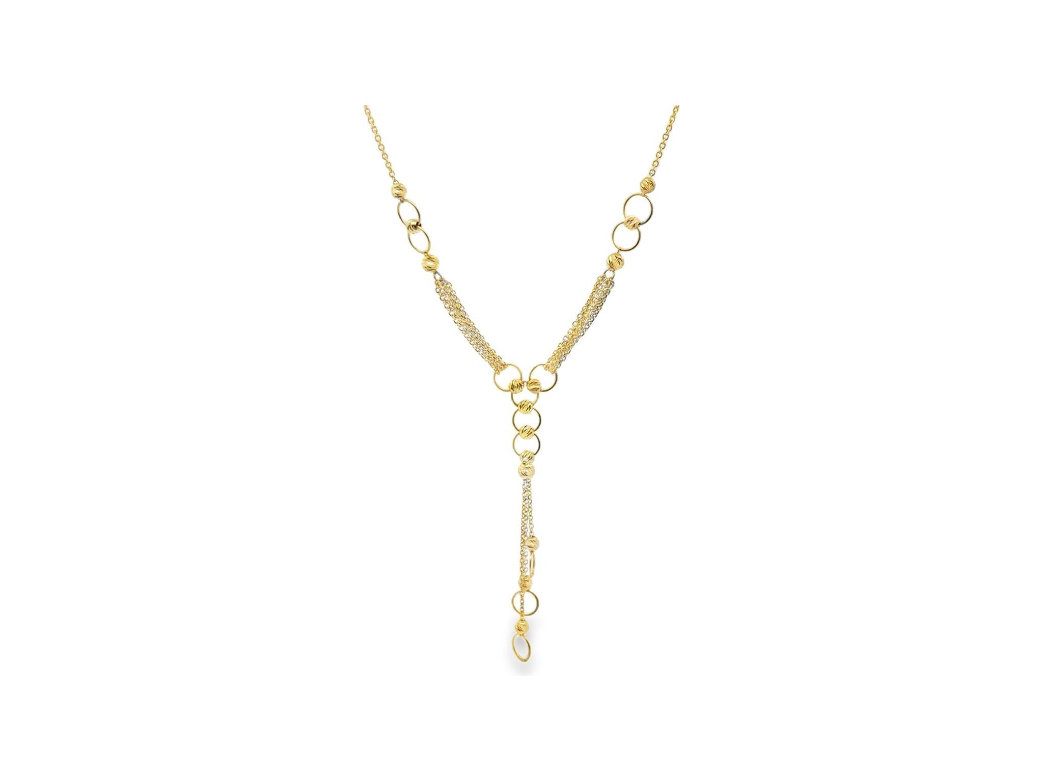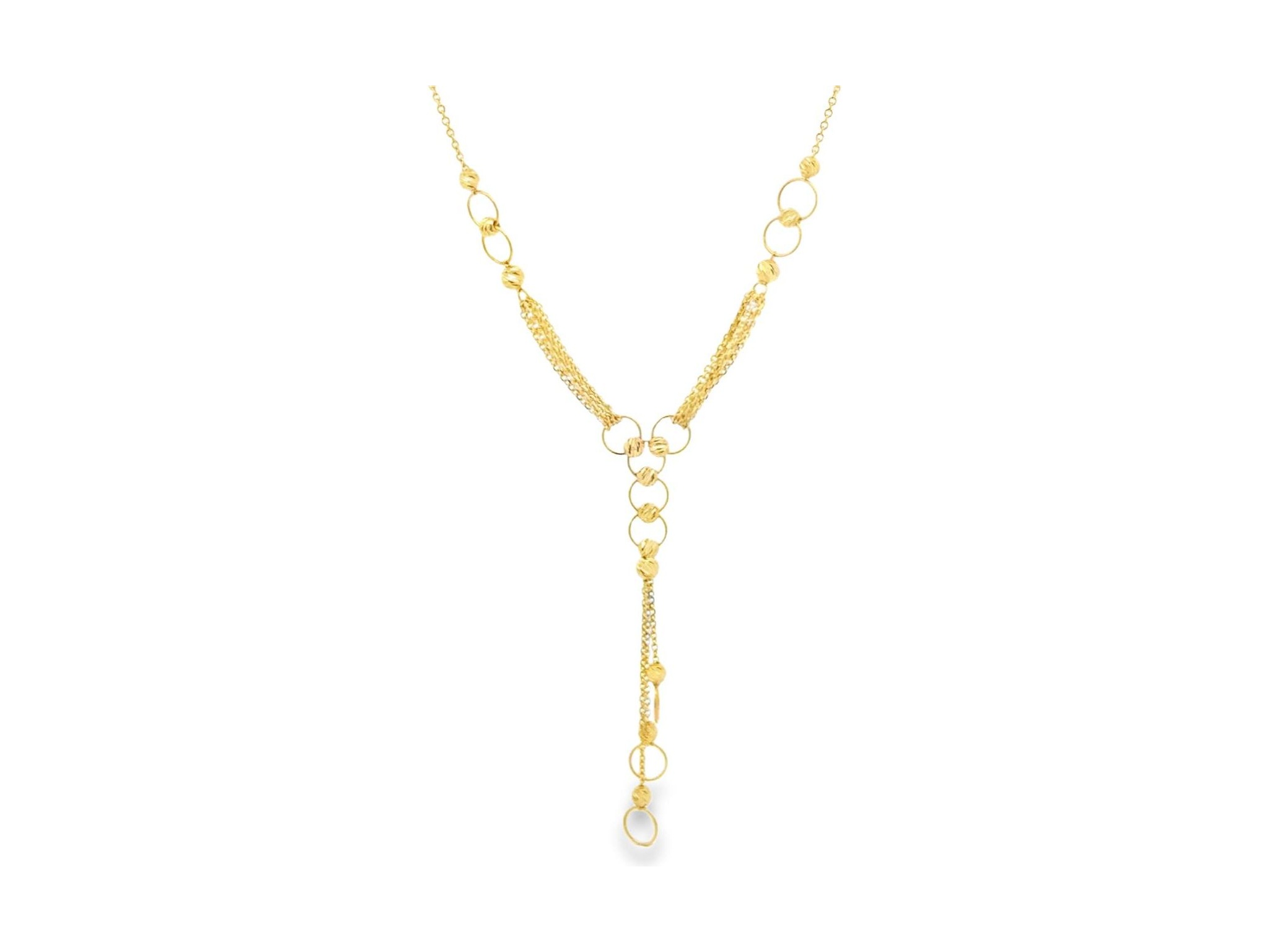 18K Yellow Gold Layered Y Necklace with Open Circle Charms